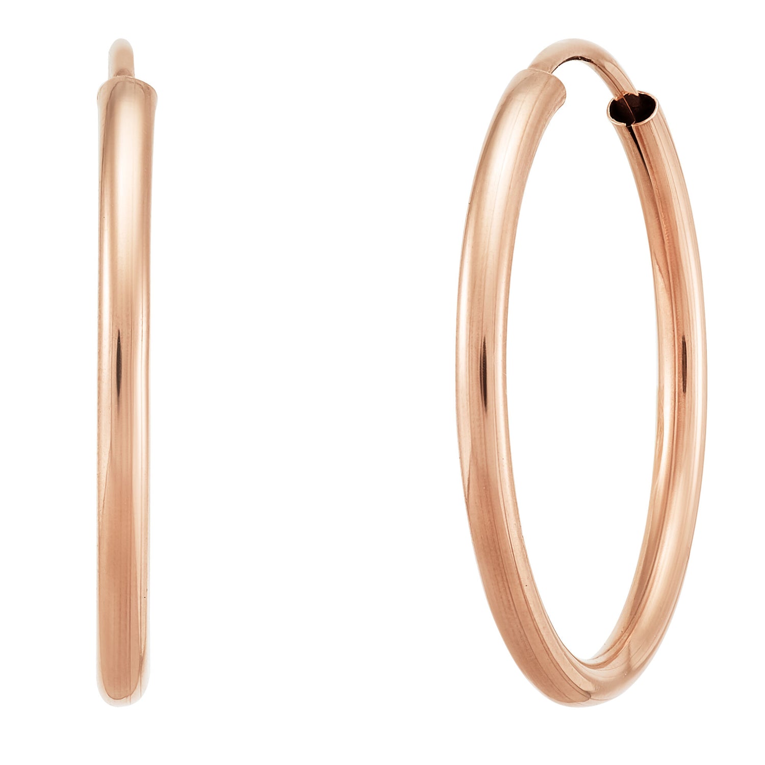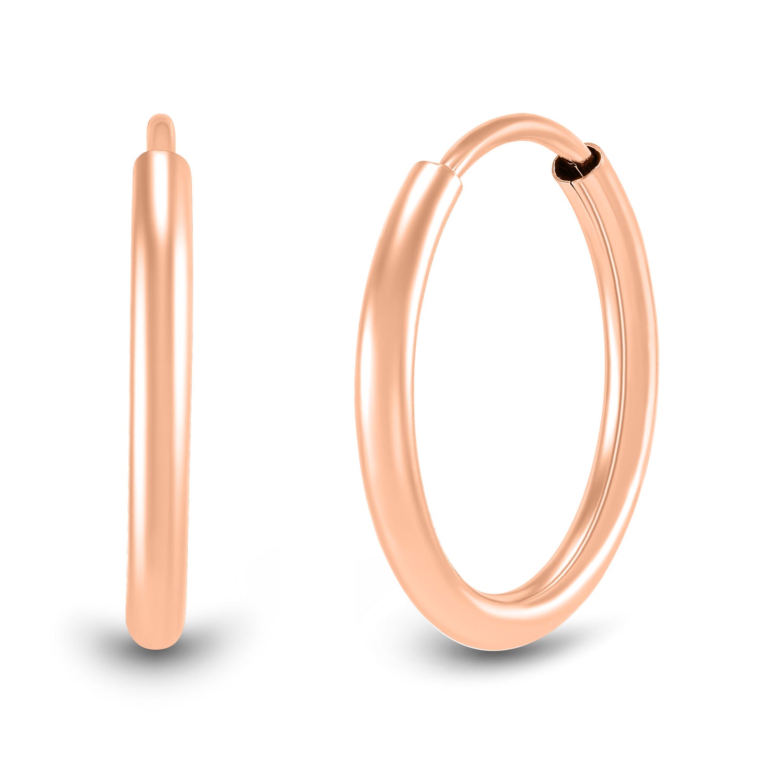 These Hoop Earrings by Helzberg combine classic form with modern flair. Crafted in 14K rose gold with a polished finish, the 12mm hoops are versatile and stylish, perfect for adding warm luster to any outfit.