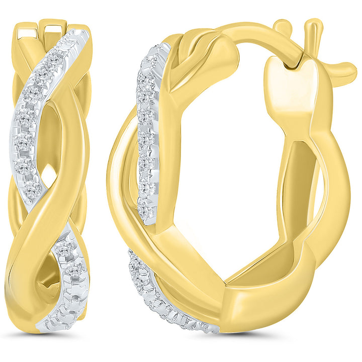 Twisted Hoop Earrings with Diamond Accents in 10K Yellow Gold