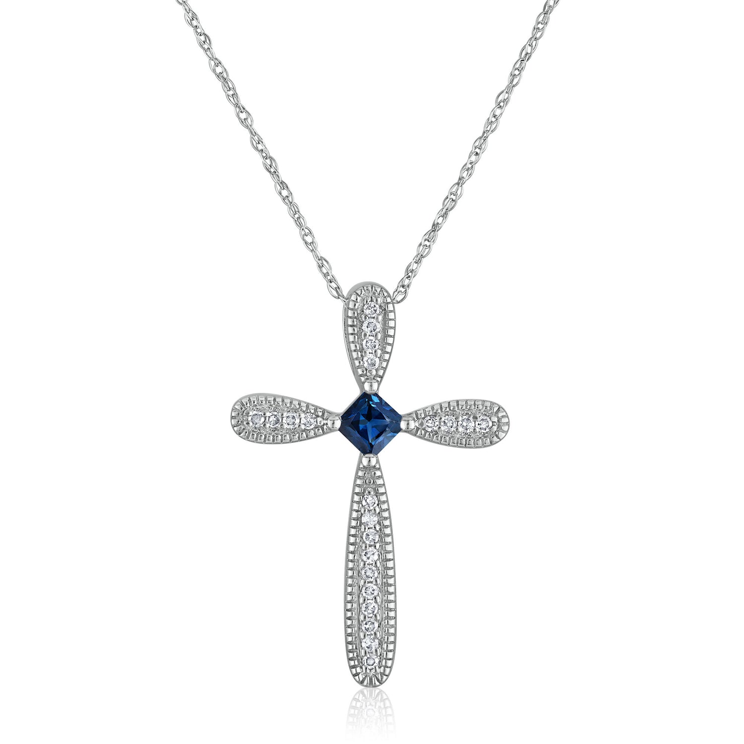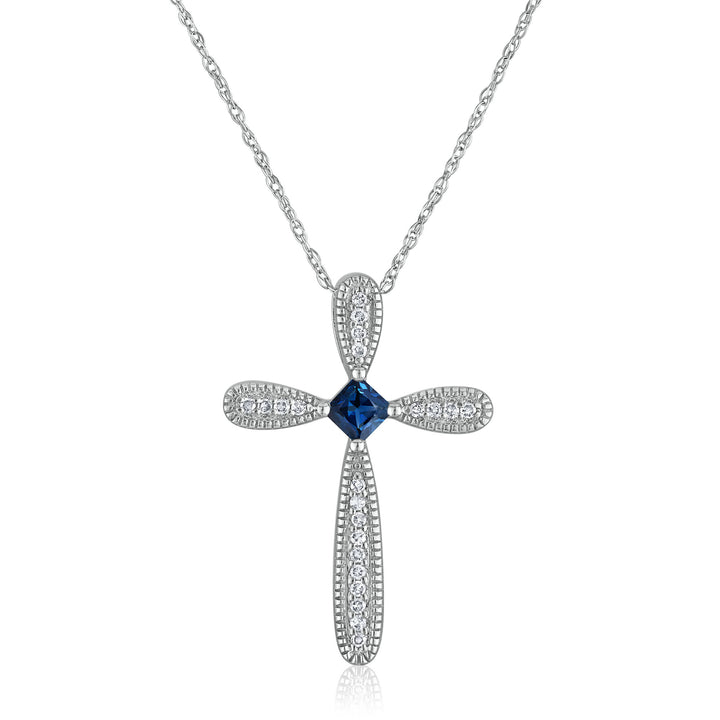 Blue Sapphire Cross Pendant in 14K White Gold (1/10 ct. tw.)