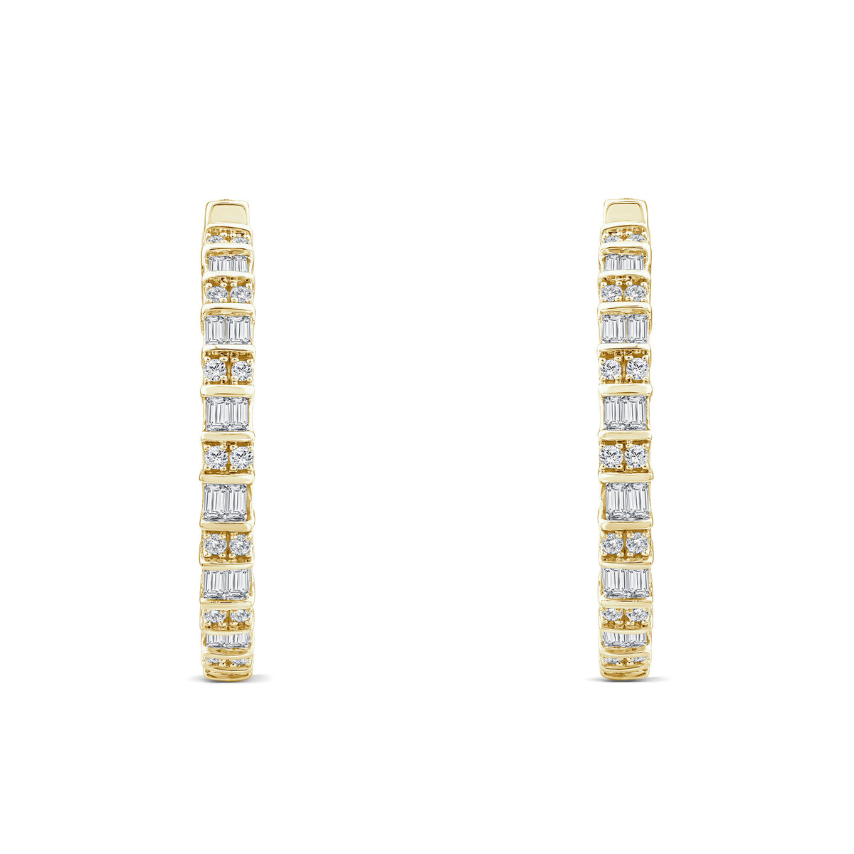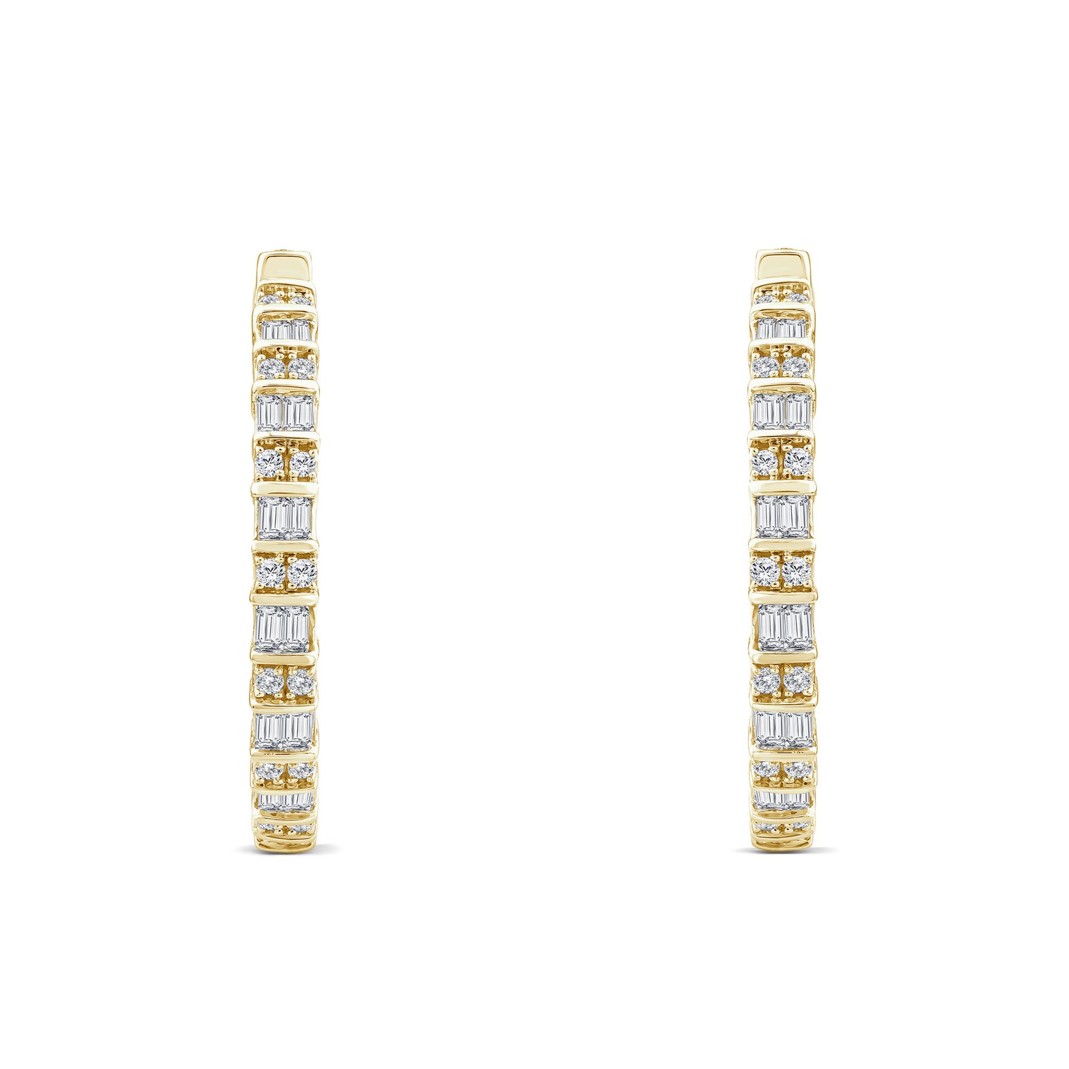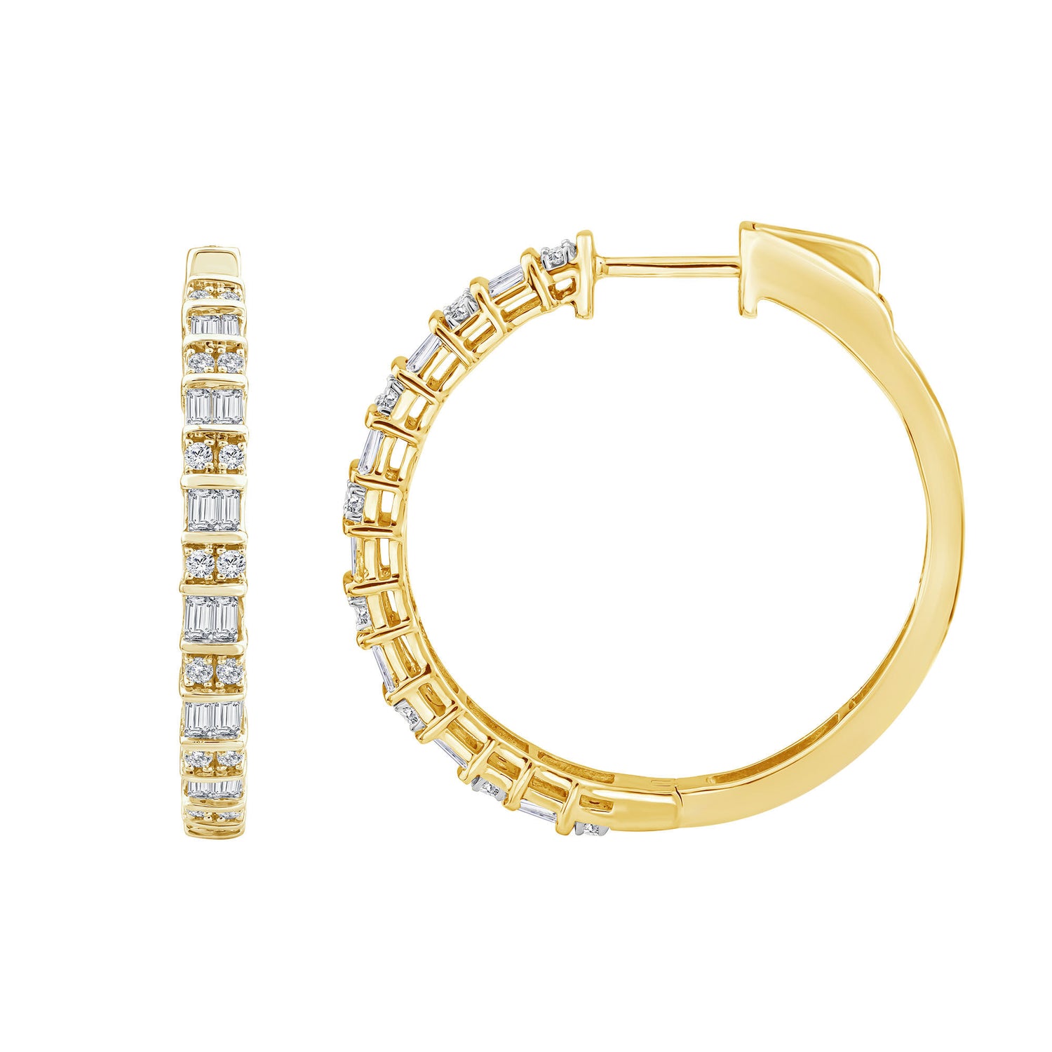 Round and Baguette Diamond Hoop Earrings in 14K Yellow Gold (1 ct. tw.)