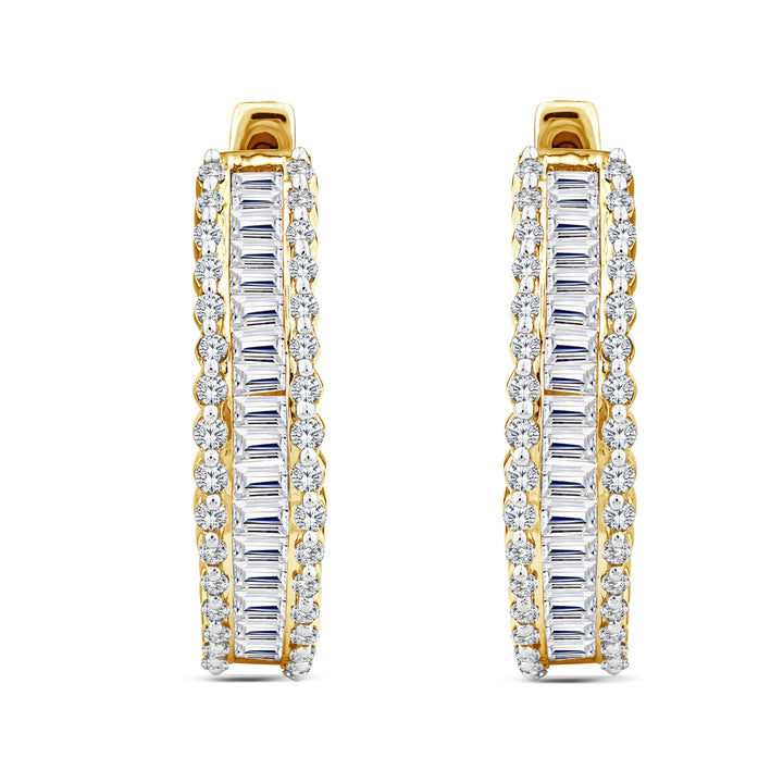 Baguette and Round Diamond Hoop Earrings in 14K Yellow Gold (1 1/2 ct. tw.)