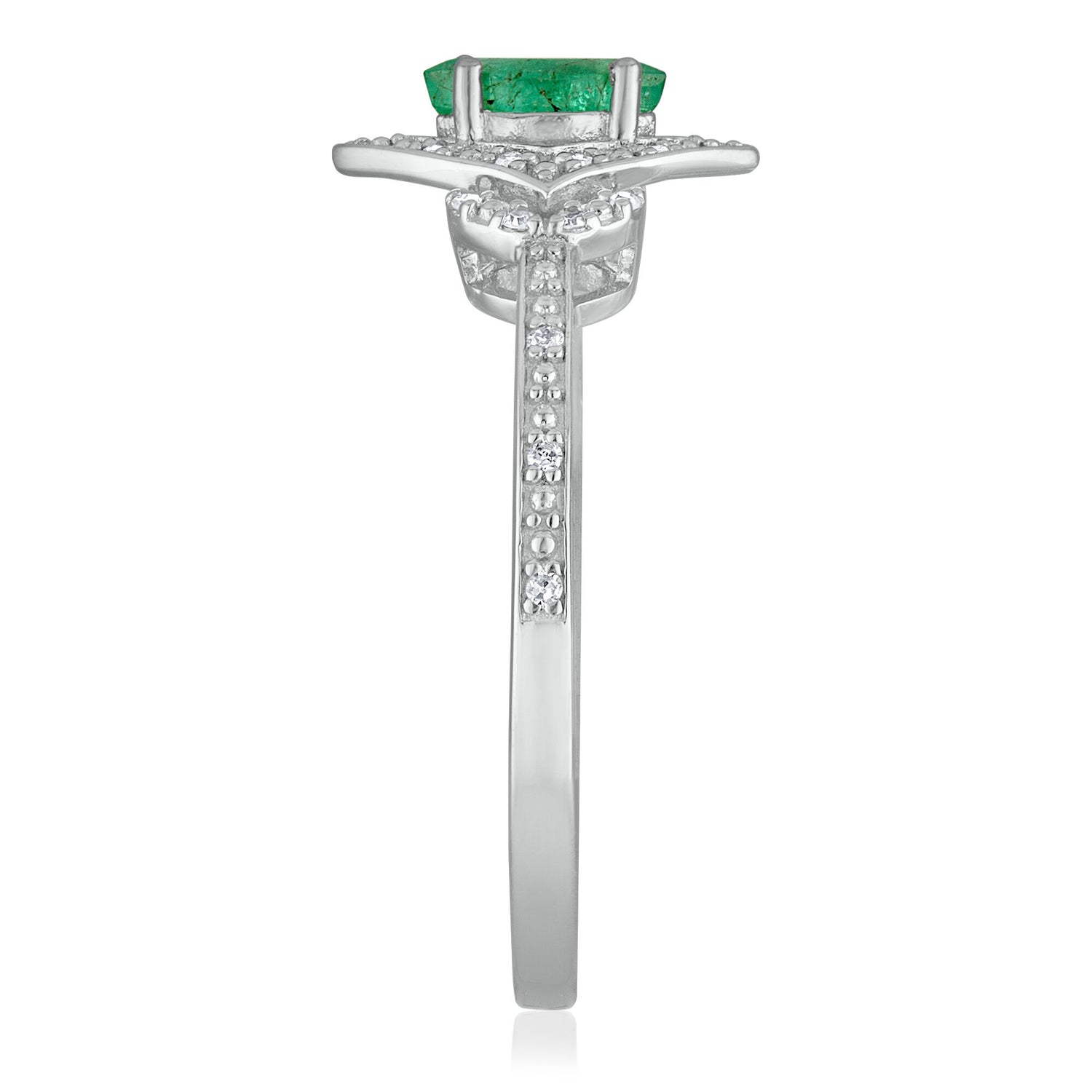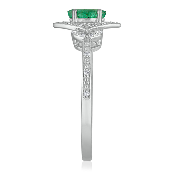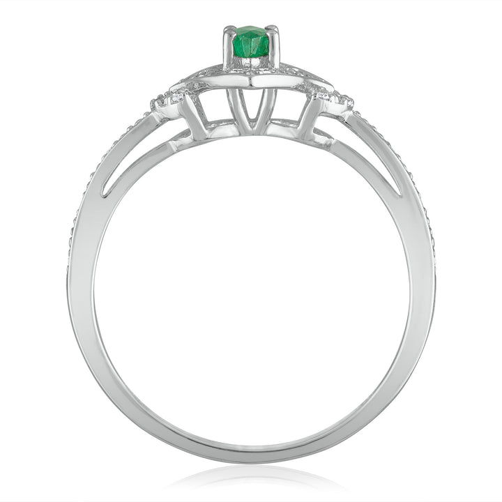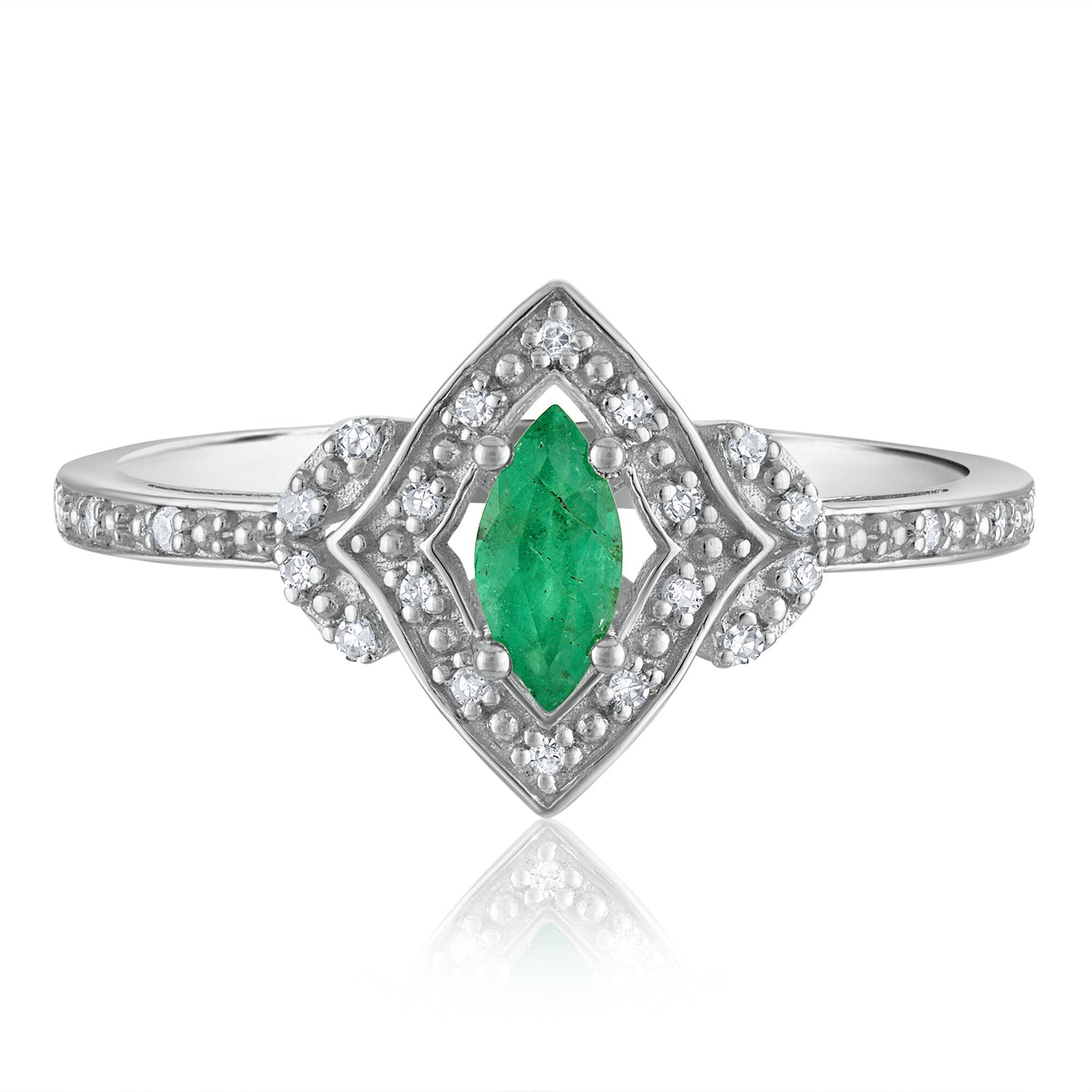 Marquise Emerald & Diamond Ring in 14K White Gold