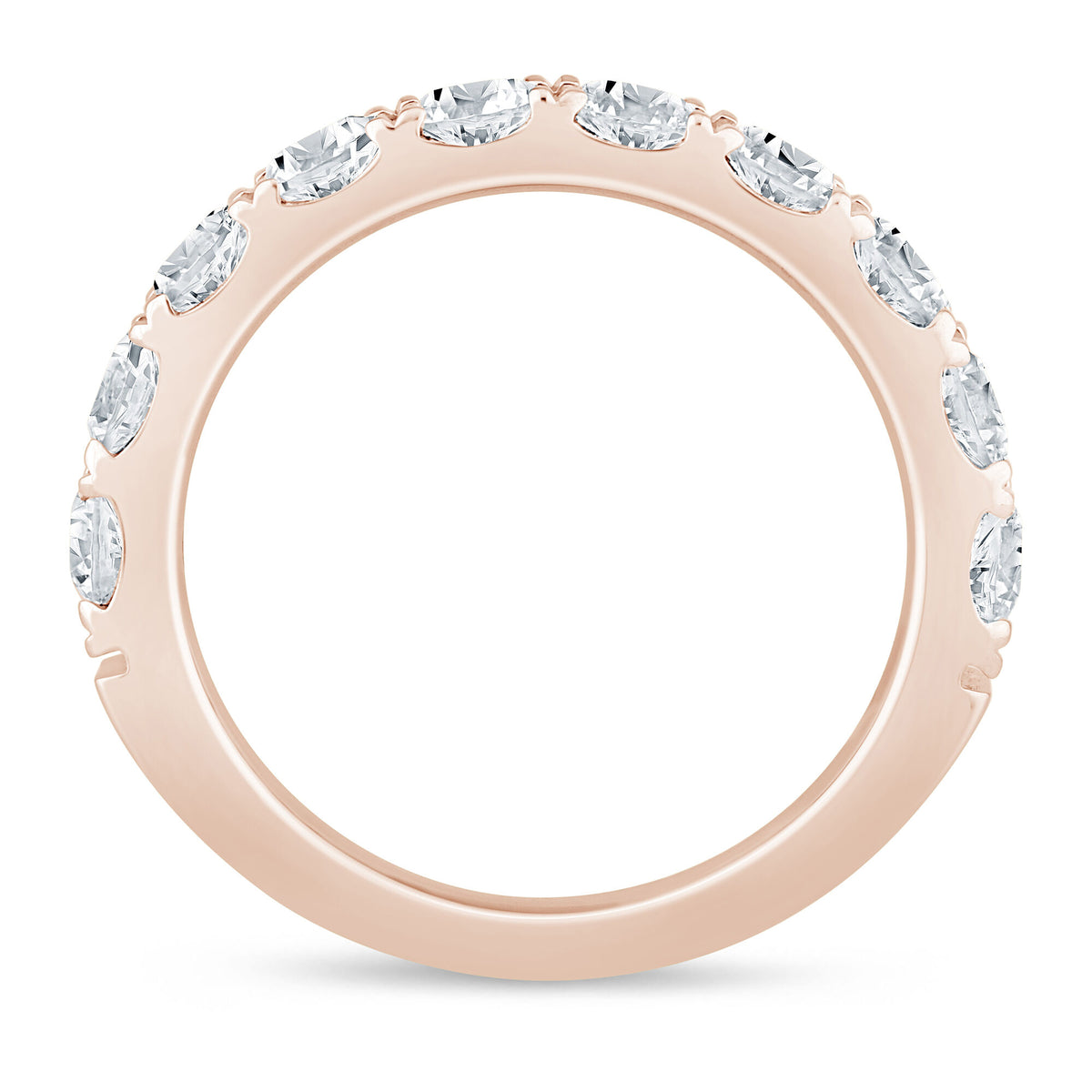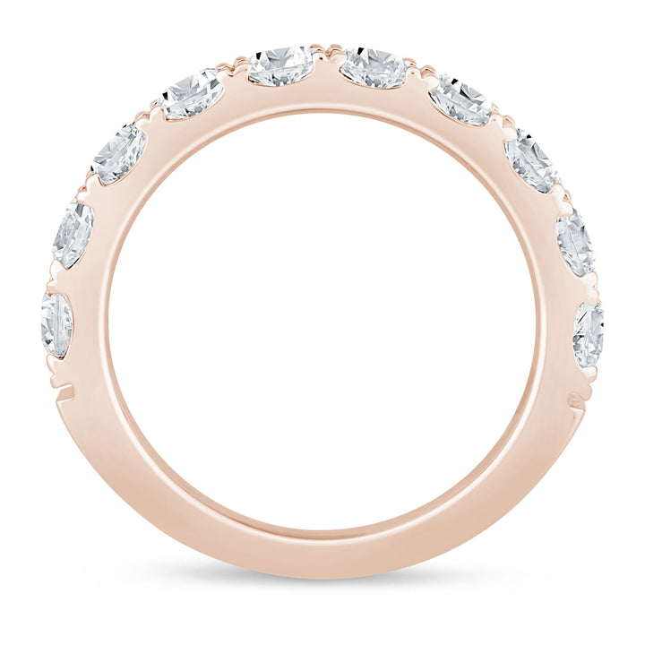 14K rose gold band featuring ten brilliant cut round diamonds totaling 2 ct. tw. Standard band width and sizing.