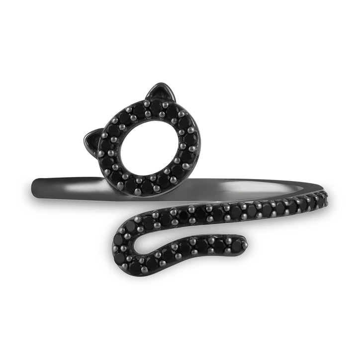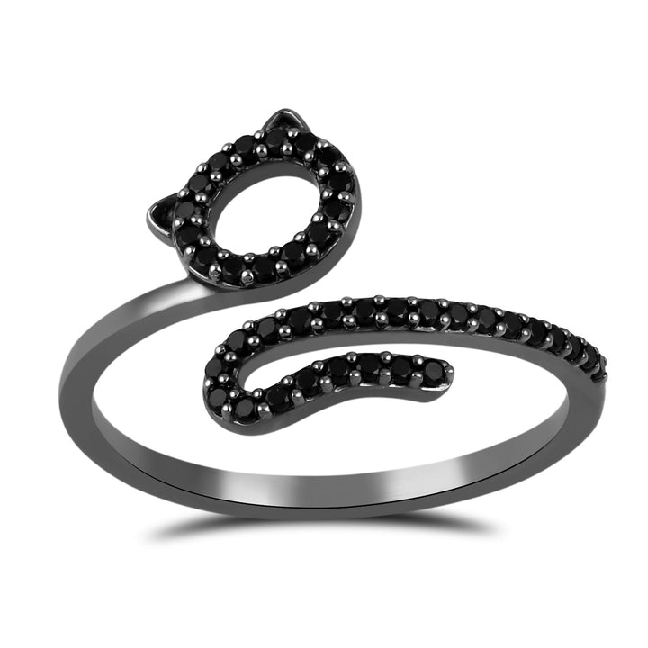 Black Diamond Cat Bypass Ring in Sterling Silver (1/5 ct. tw.)