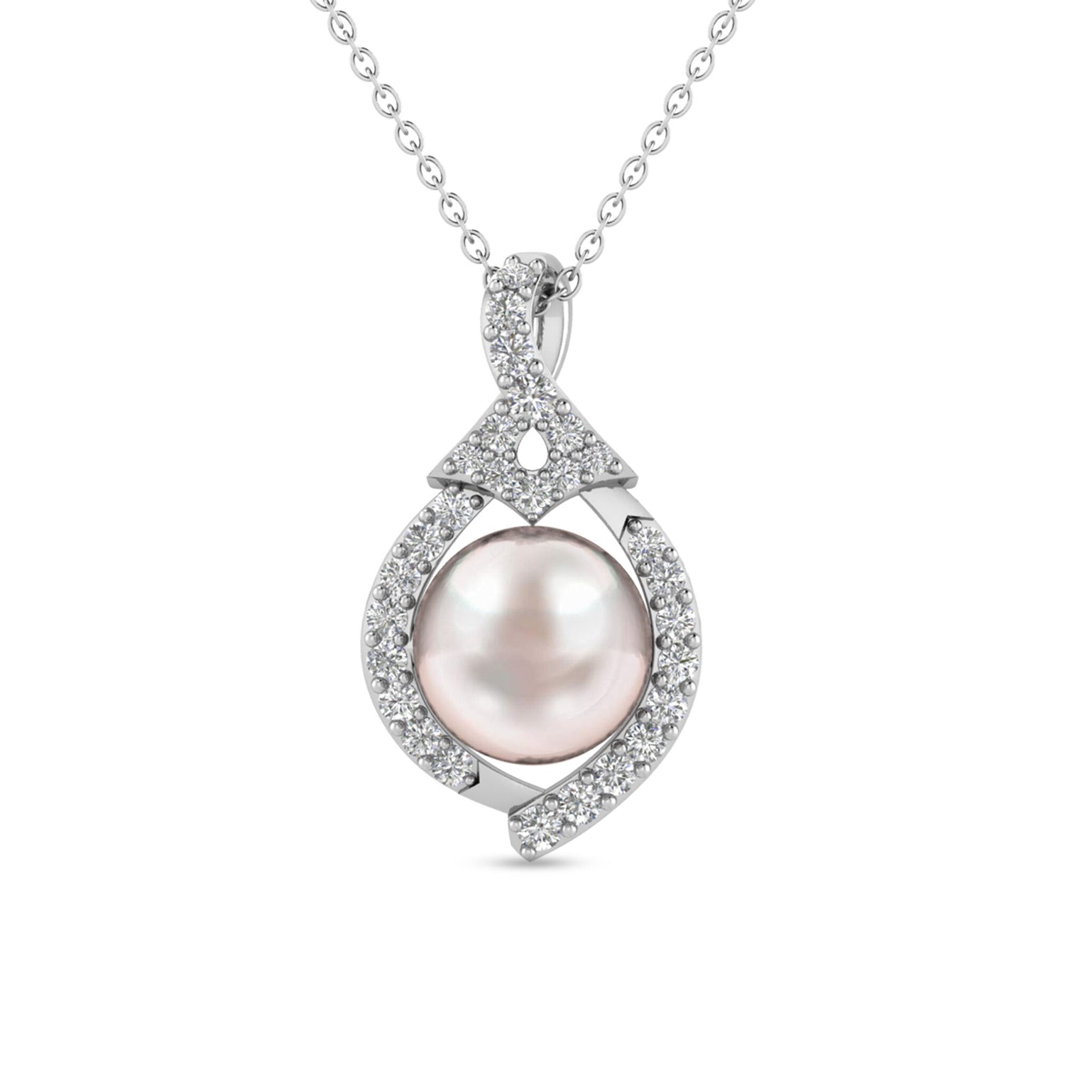 Pearl Center Diamond Necklace in 10K White Gold (1/7 ct. tw.)