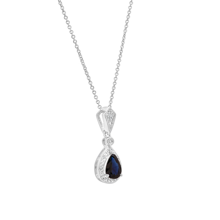 Blue Sapphire and Diamond Accent Drop Pendant in Sterling Silver