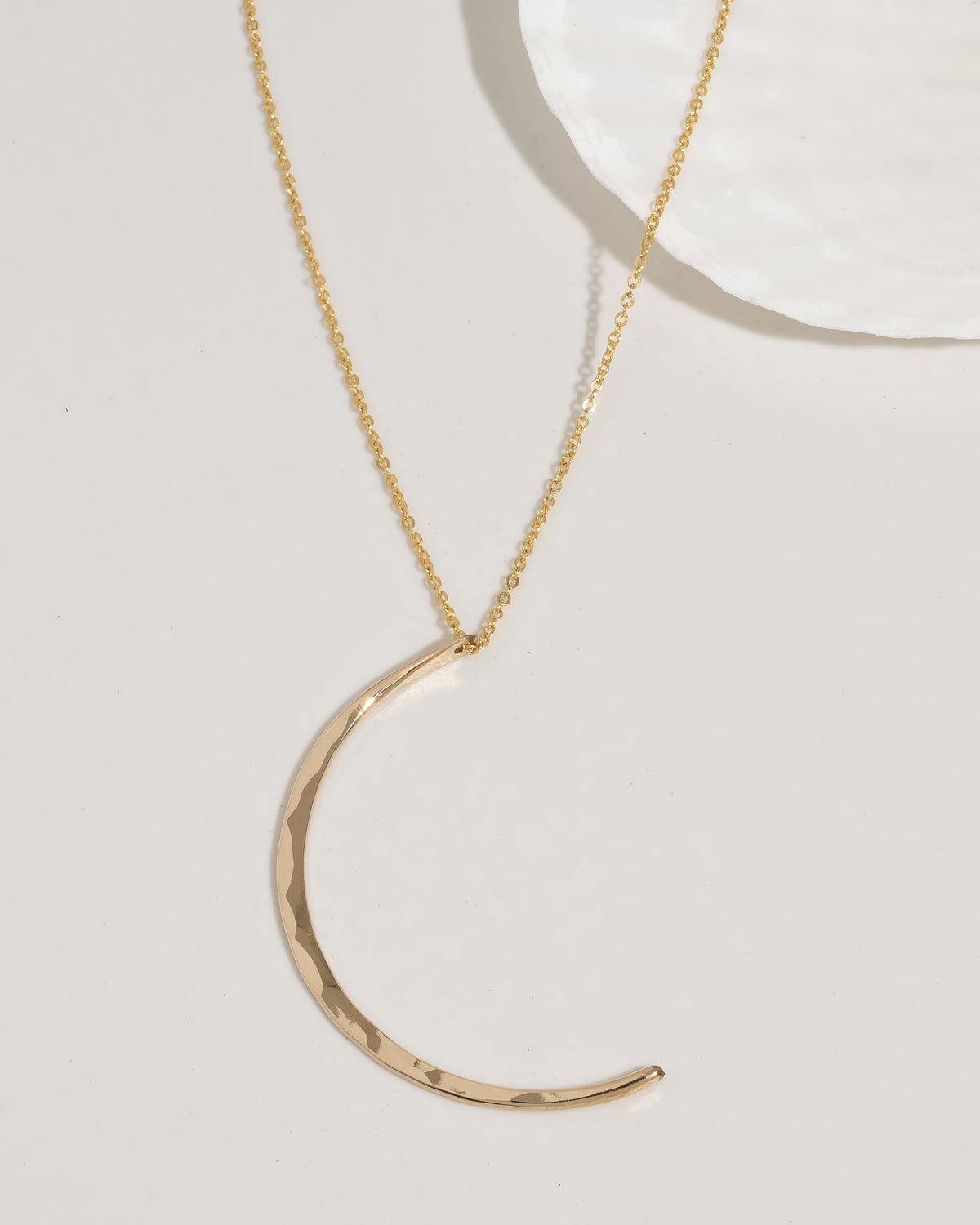 Shine bright with the James Michelle Luna Moon Necklace! Featuring a stunning 1 3/4' pendant, this chic piece is crafted from waterproof brass with a durable 10k gold PVD coating. Hypoallergenic and easy to care for, it’s the perfect trendy accessory to elevate your everyday fashion!