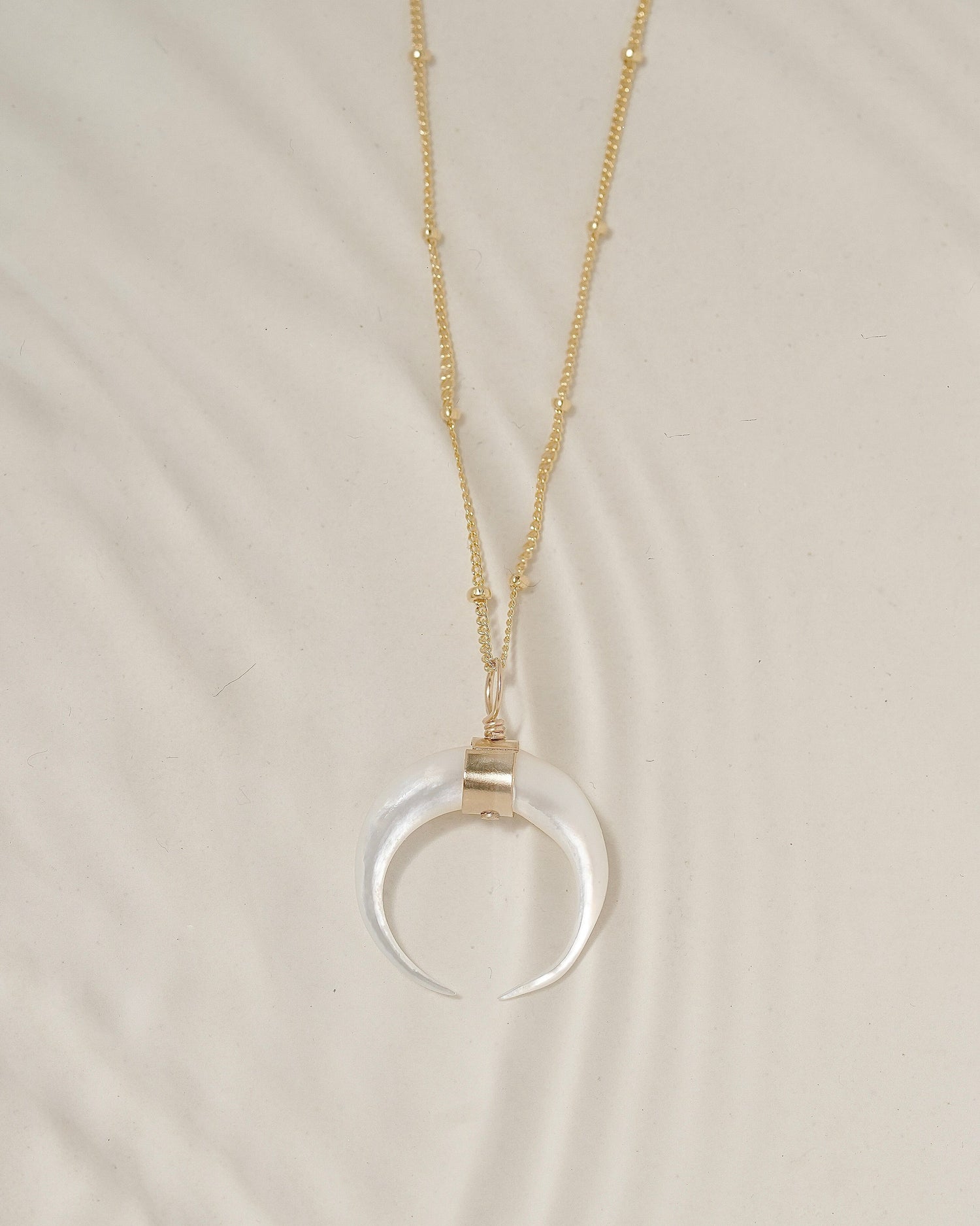 Embrace your chic side with the James Michelle Pearl Crescent Necklace! Featuring a stunning mother of pearl crescent pendant (15mm-20mm), this trendy piece is crafted from 14k gold fill or sterling silver. Each pendant is unique, making it a perfect addition to your fashion-forward collection!