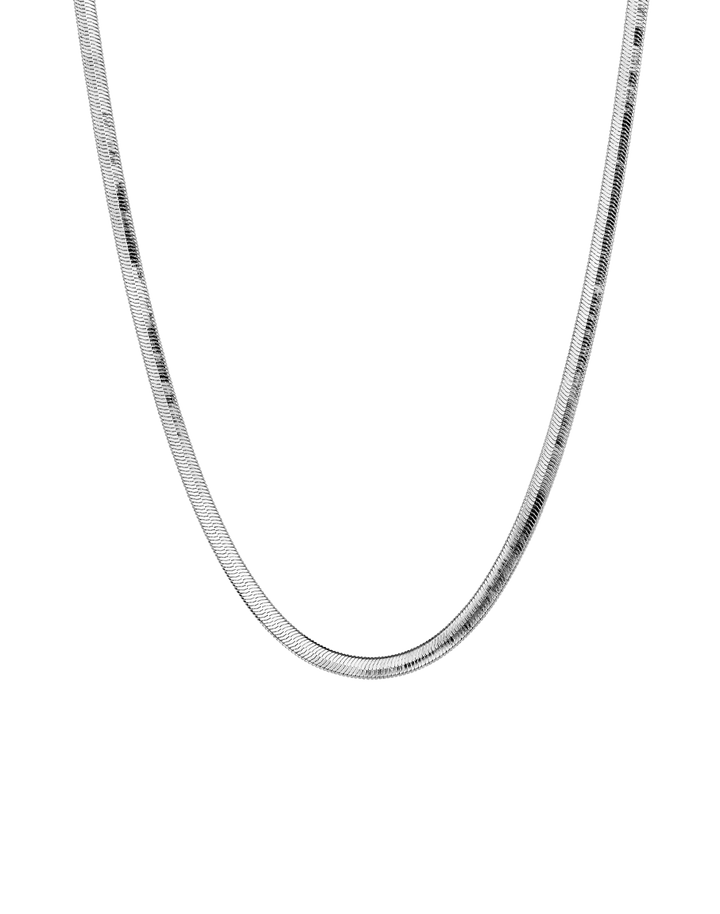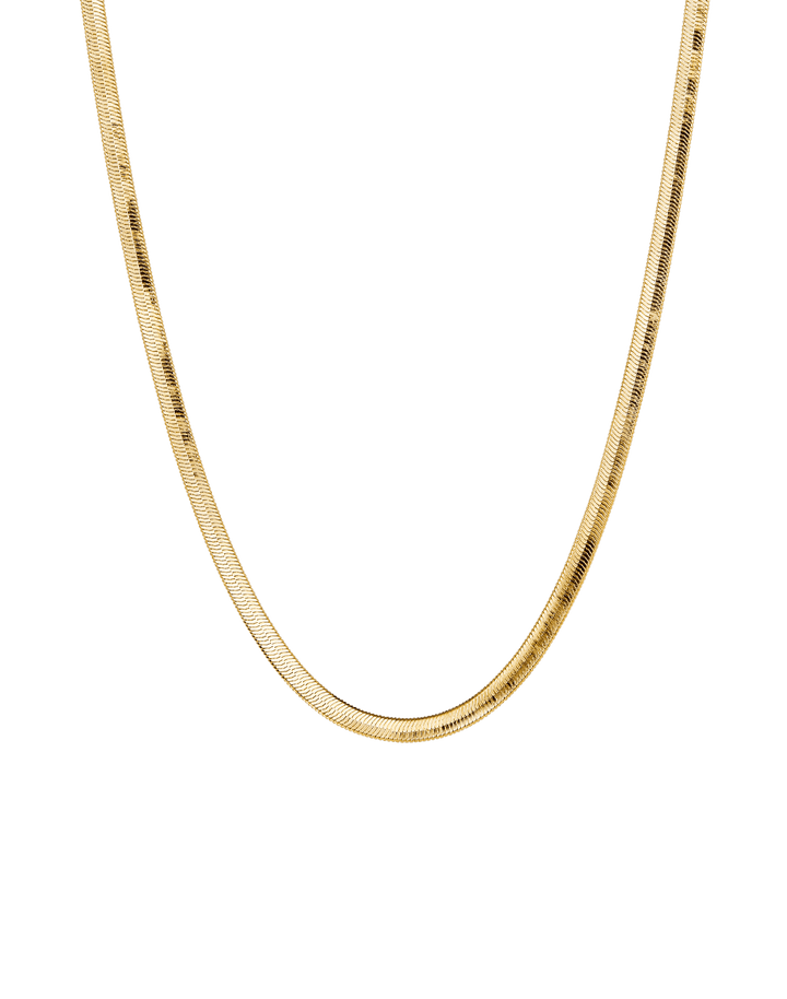 Enhance your jewelry collection with the James Michelle Snake Chain! Crafted from 10k gold plated brass or silver plated brass, this stylish 4mm width chain adds a sleek touch to your layered looks. A trendy staple for every fashionista!