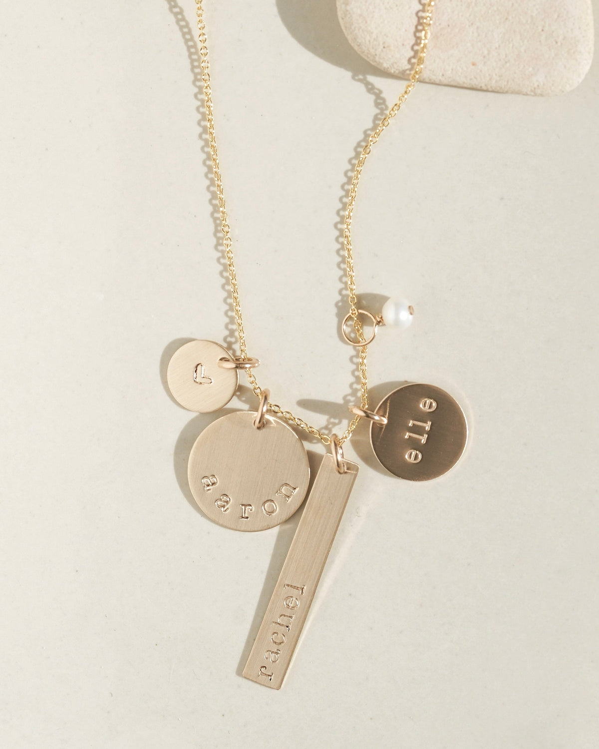 Personalize your style with the James Michelle All In One Necklace! Made from 14k gold fill or sterling silver, this trendy piece features multiple personalized pendants and a 1.1mm cable chain, perfect for showcasing your individuality!