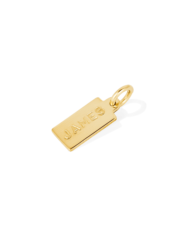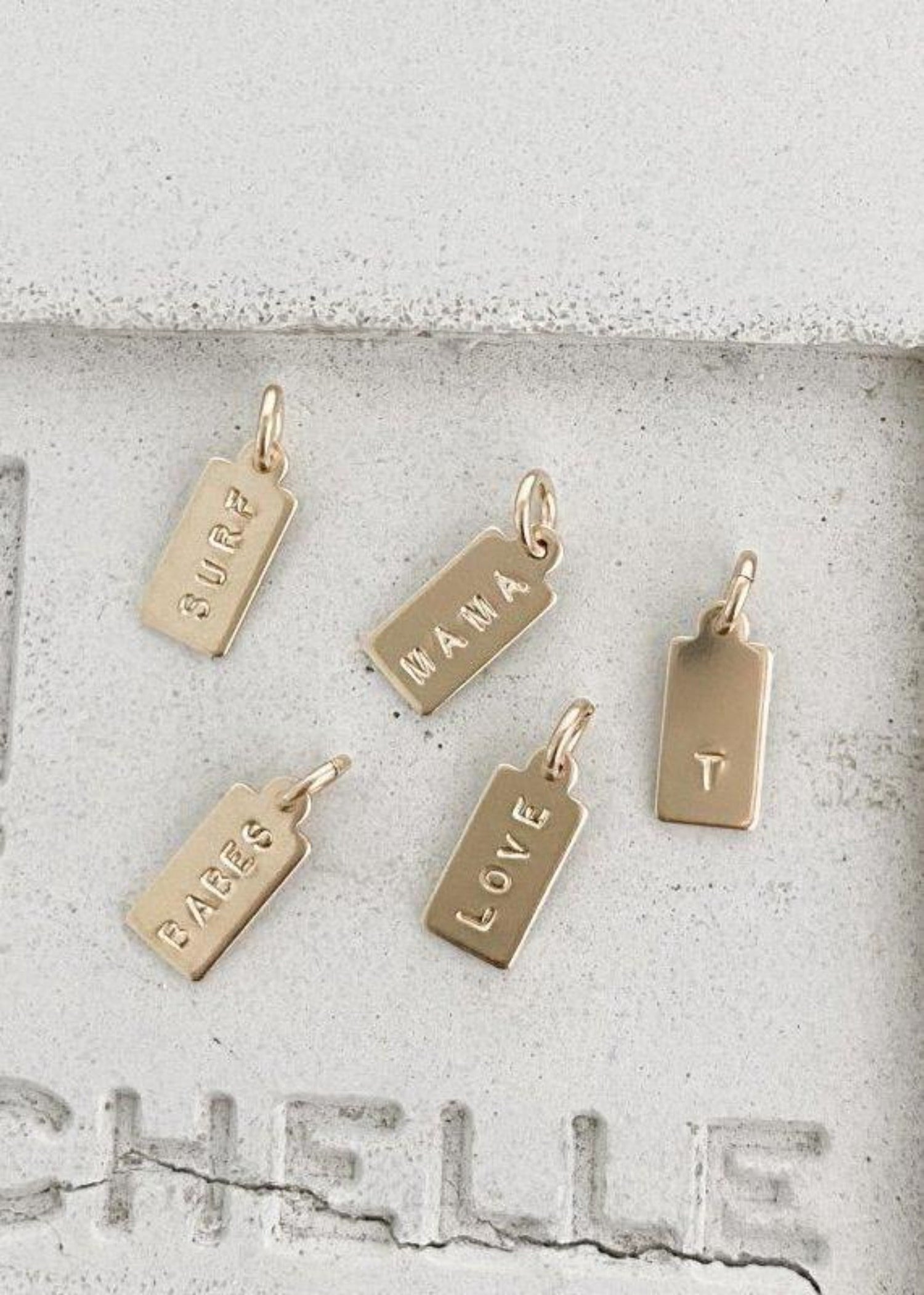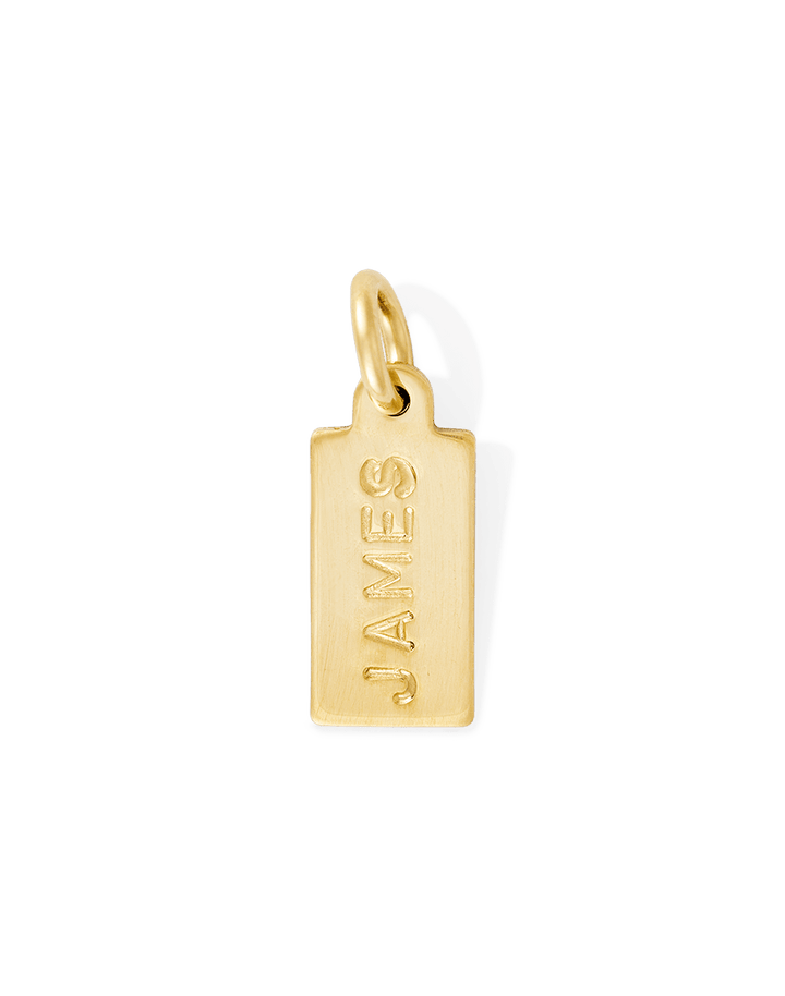 Personalize your accessories with the James Michelle Mini Charm! Made from 14k gold fill or sterling silver, this cute tag measures 11.7mm x 4.9mm and can be customized to showcase your unique style!