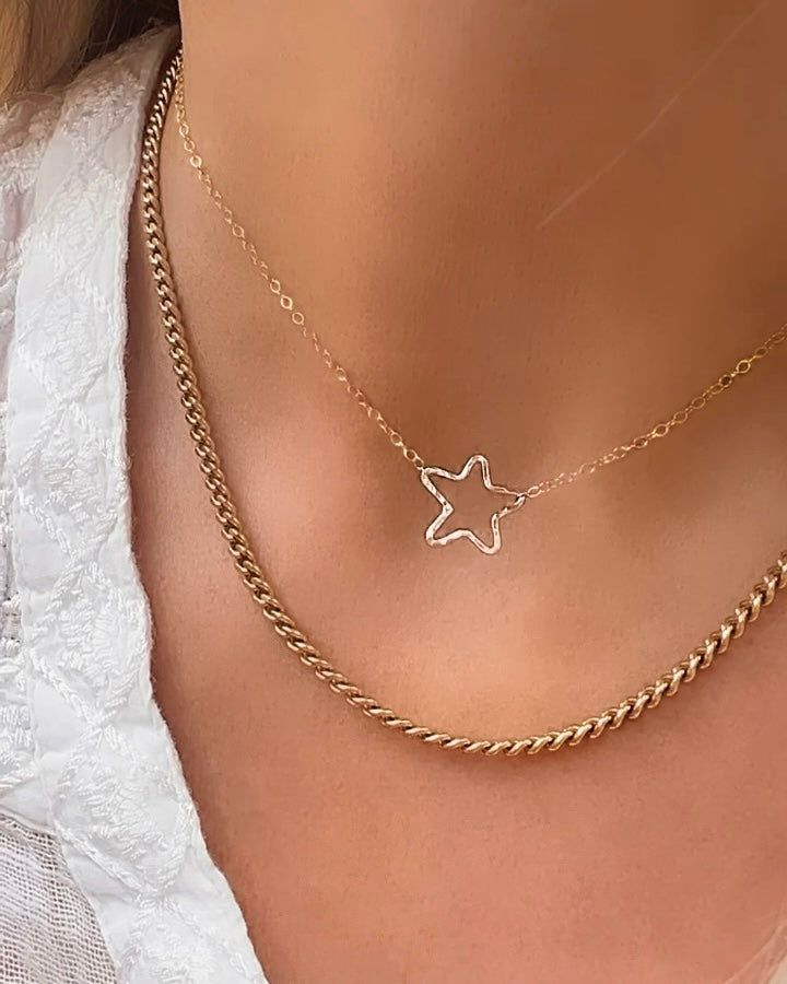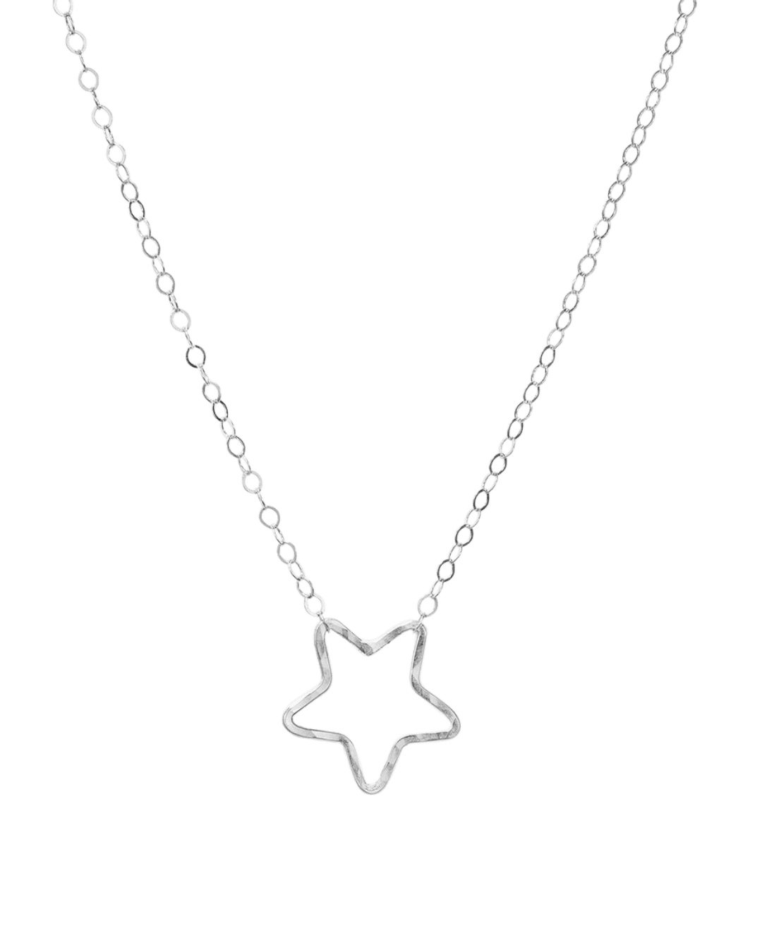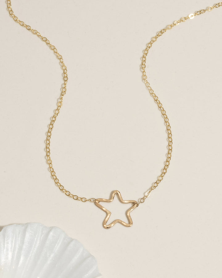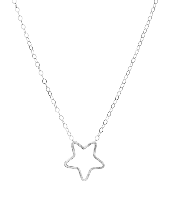 Shine bright with the James Michelle Itty Bitty Star Necklace! Crafted from 14k gold fill or sterling silver, this adorable pendant measures approximately .5' wide and hangs from an adjustable 1.5mm cable chain for a trendy look!