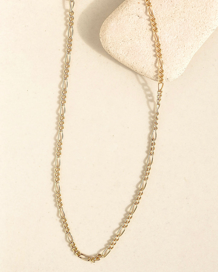 Elevate your accessory game with the James Michelle Figaro Chain! Crafted from 14k gold fill or sterling silver, this stylish 1.3mm chain is perfect for layering or wearing solo, adding a touch of elegance to any outfit!