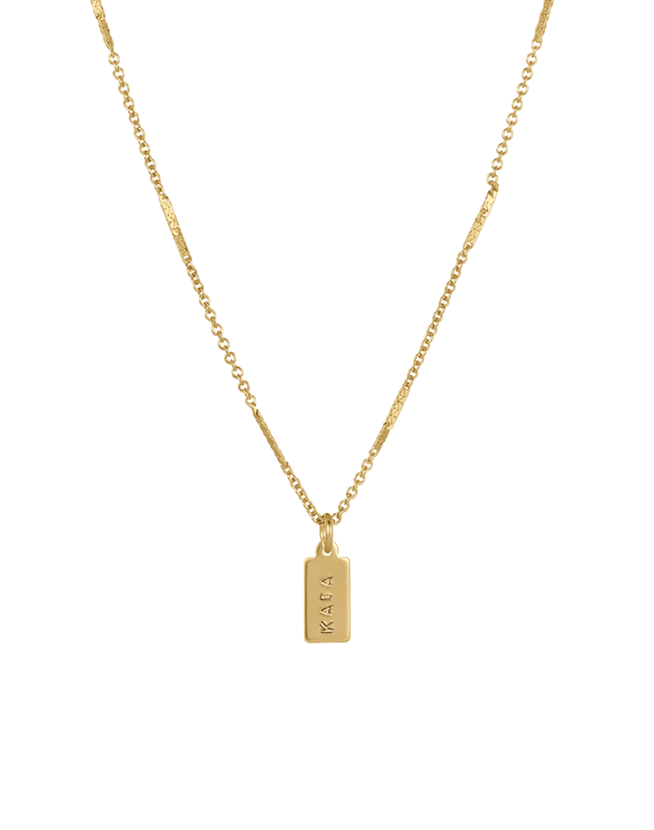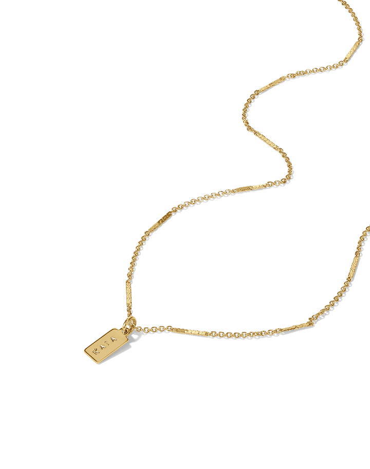 Personalize your look with the James Michelle Mini Charm Necklace! Crafted from 14k gold fill or sterling silver, this adorable pendant measures 1.7mm x 4.9mm and hangs on a cable and bar chain for a trendy style!