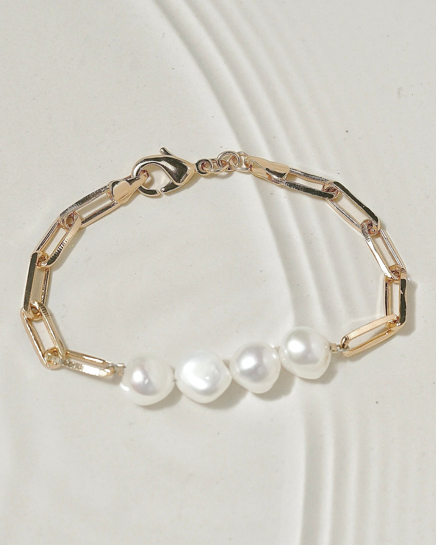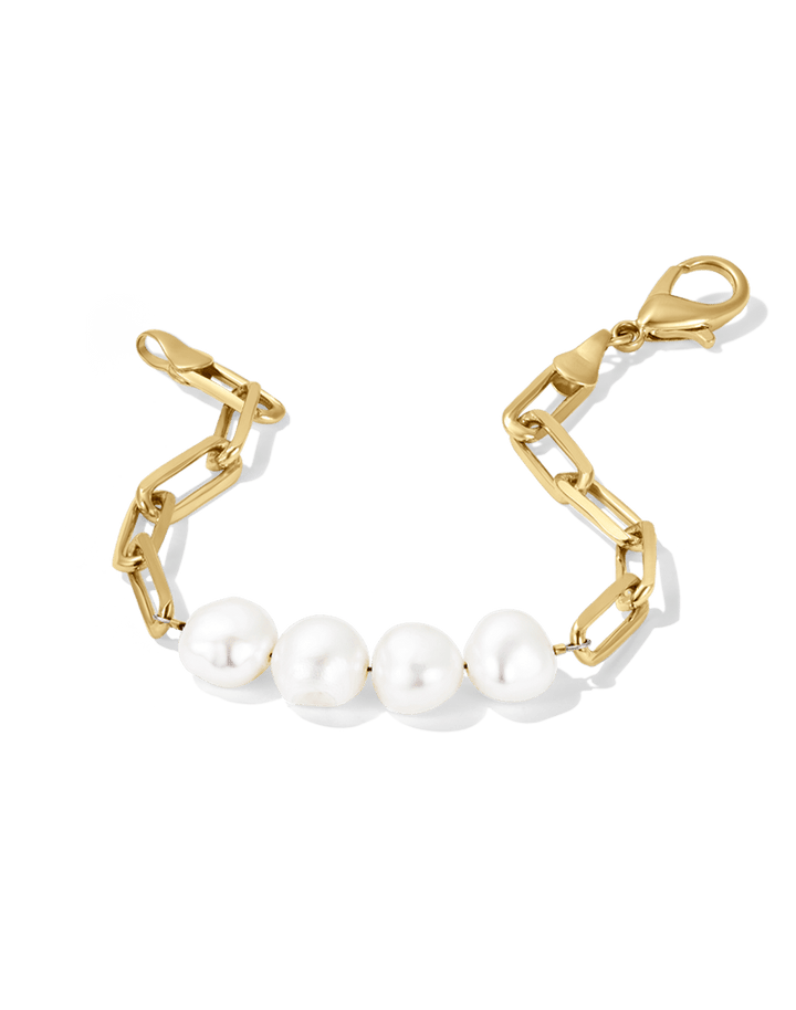 Embrace elegance with the James Michelle Chunky Pearl Bracelet! Made from 10k gold plated over brass, this stylish bracelet measures 7'' in length and adds a chic touch to any outfit!