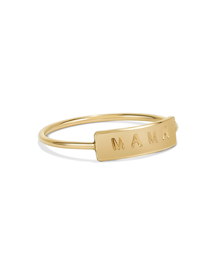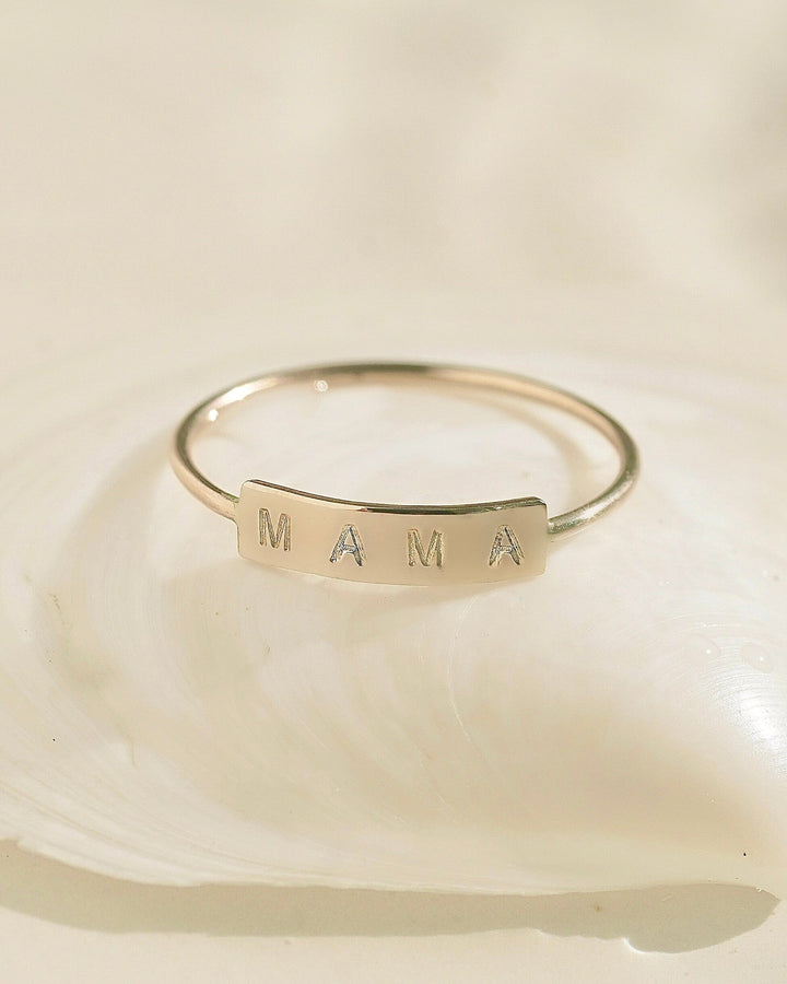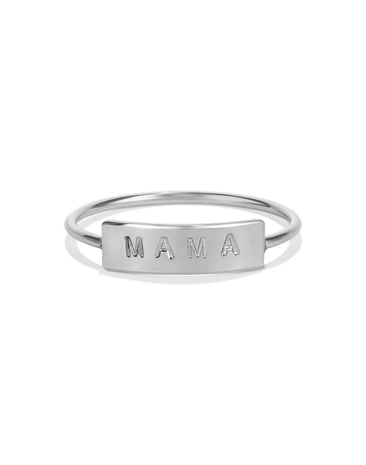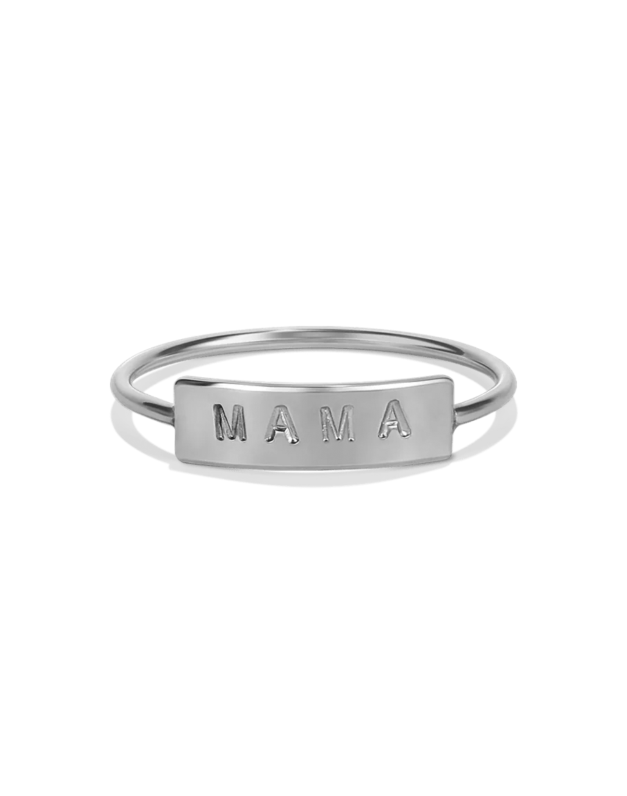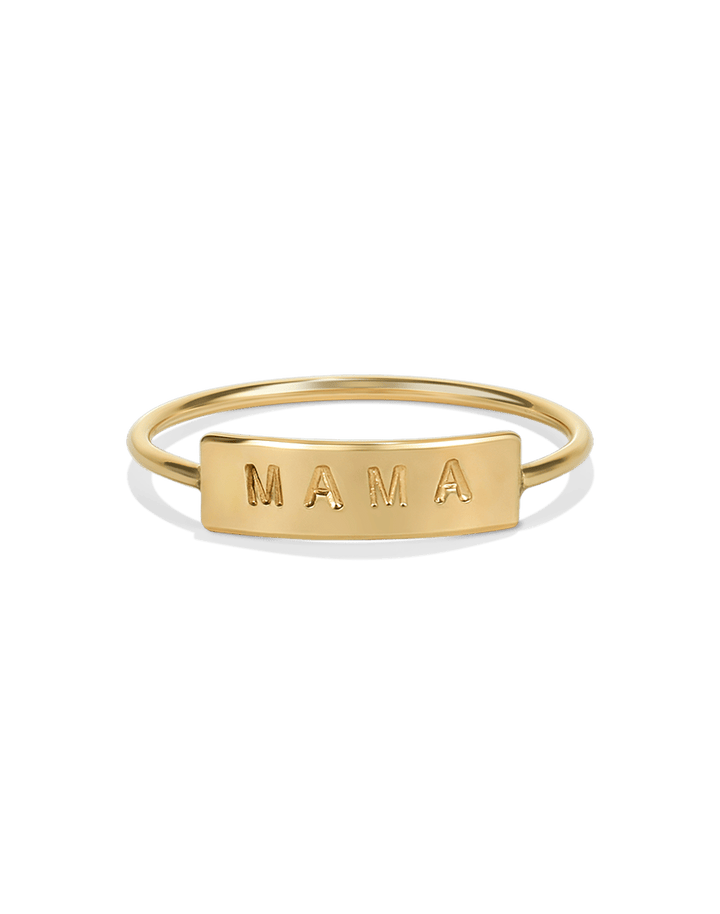 Celebrate motherhood with the James Michelle Mama Stacking Ring! Crafted from 14k gold fill or sterling silver, this chic piece features a 3/4' width ring face, perfect for stacking or wearing alone!