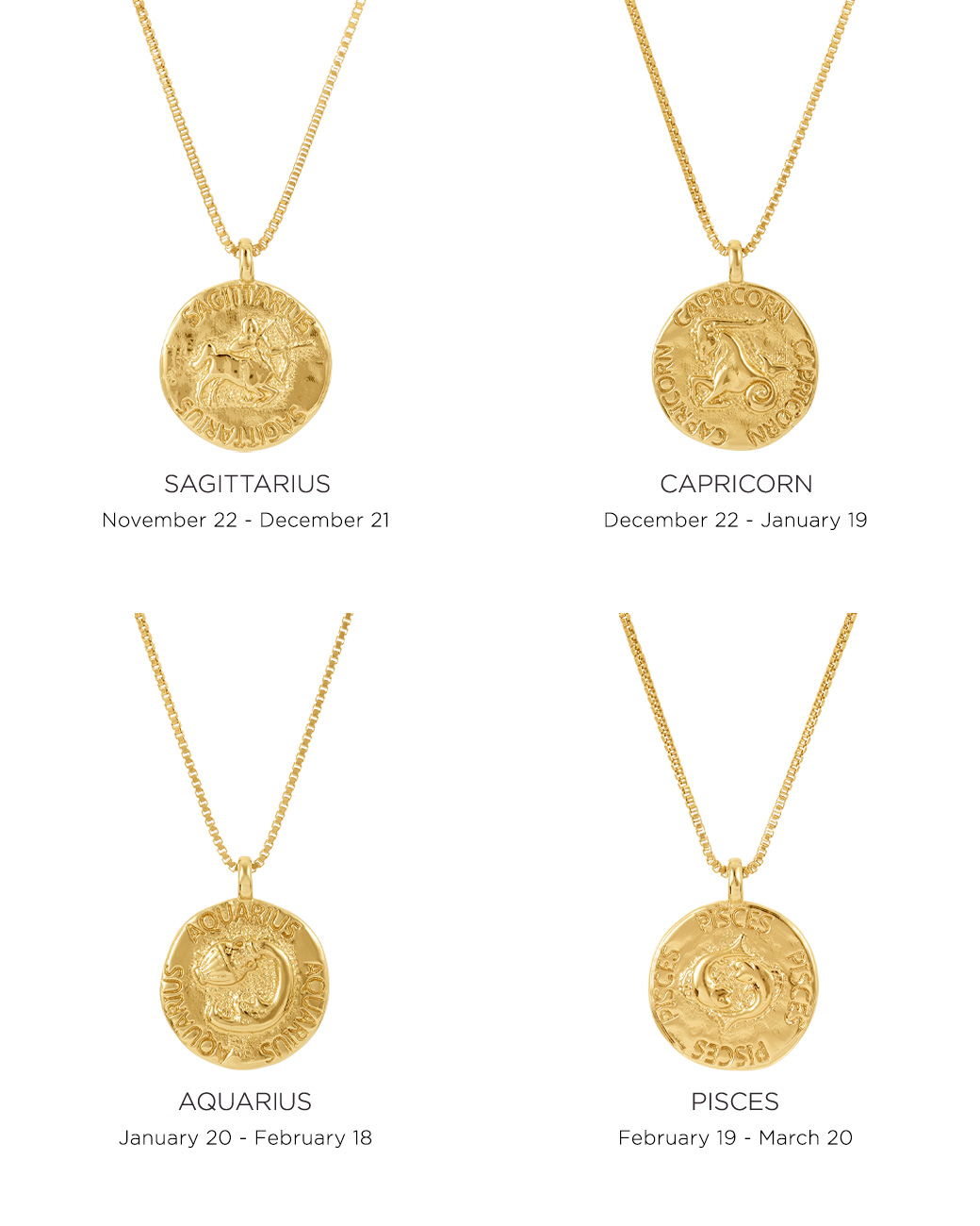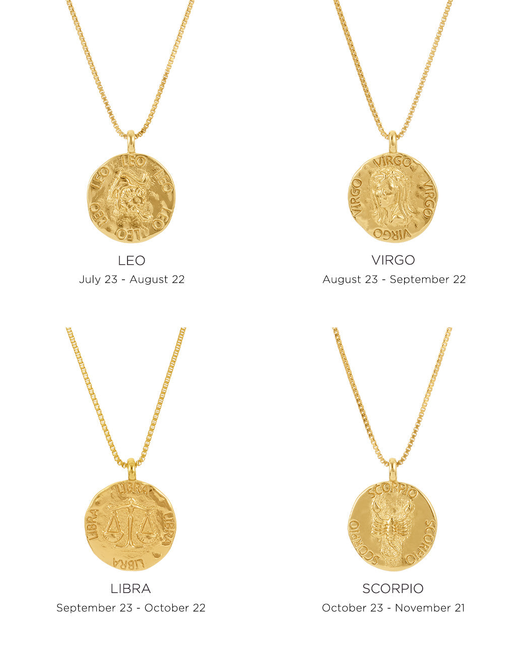 Discover your star sign with the James Michelle Horoscope Necklace! Crafted from 10k gold plated over brass, this trendy pendant measures 3/4' in diameter and hangs on an adjustable 16' - 18' 1mm box chain for a personalized touch!