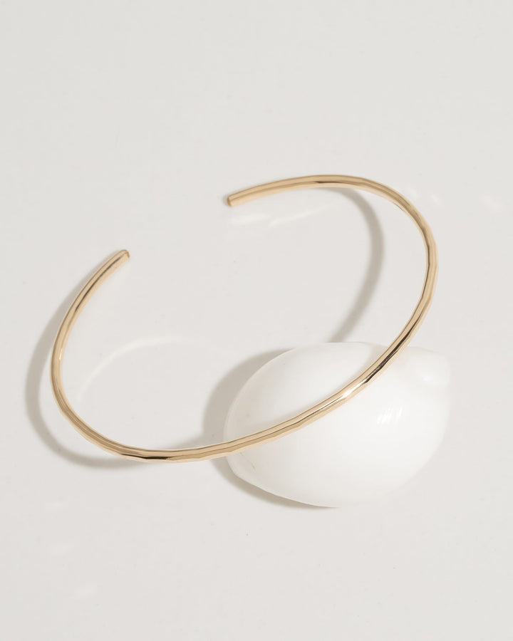Elevate your accessory game with the James Michelle Hammered Cuff! Made from 14k gold fill or sterling silver, this stylish cuff measures approximately 2 3/4' in diameter and is slightly adjustable to fit most wrists!