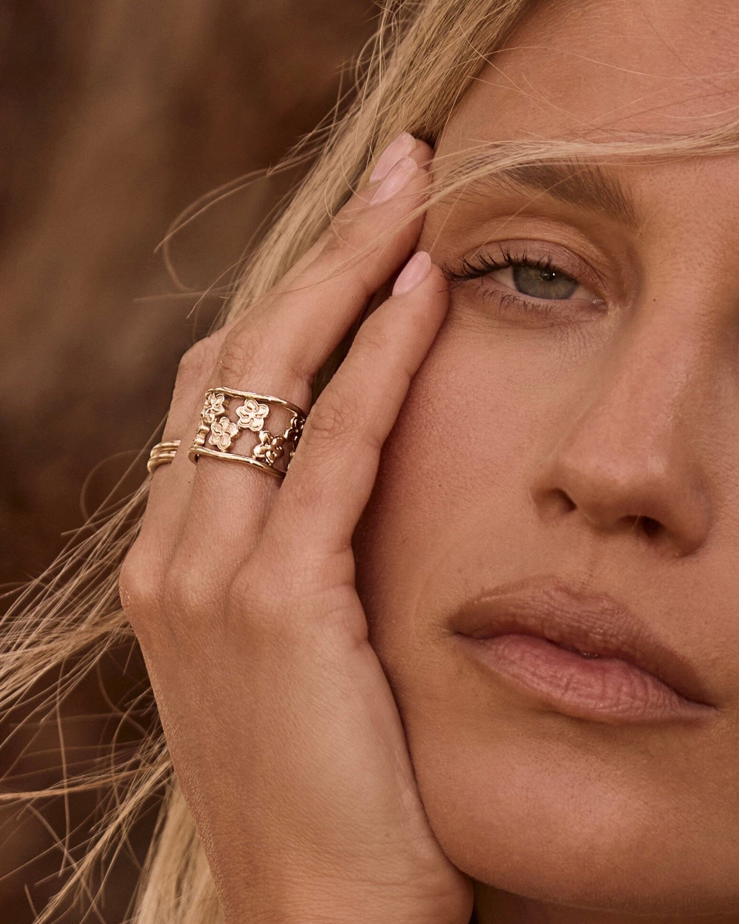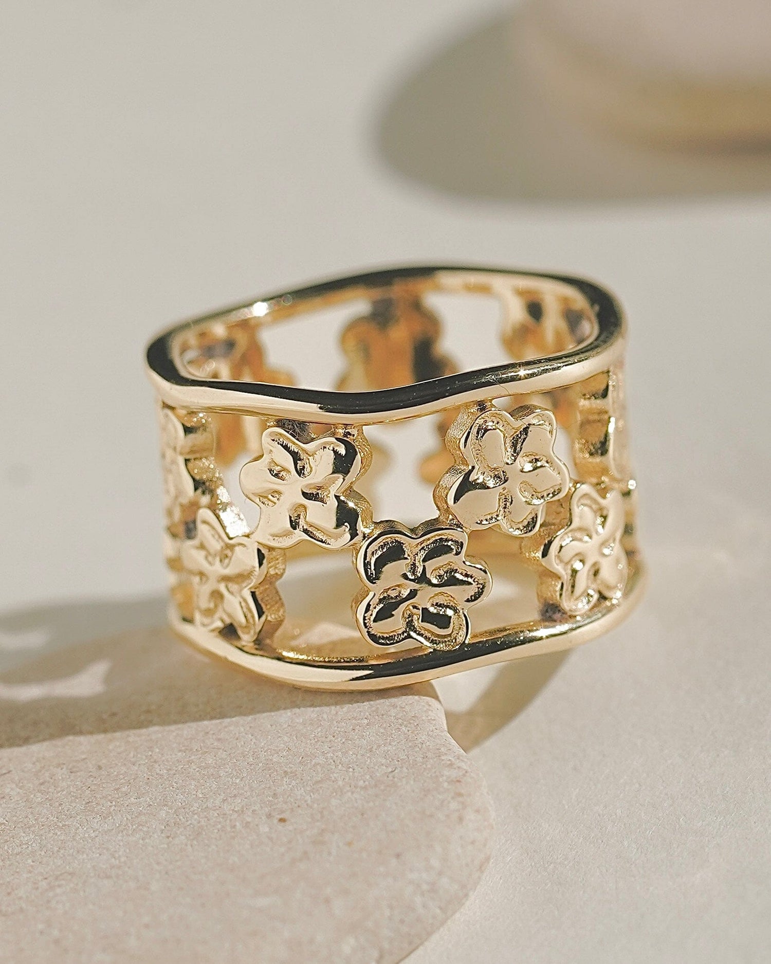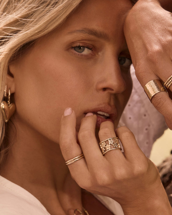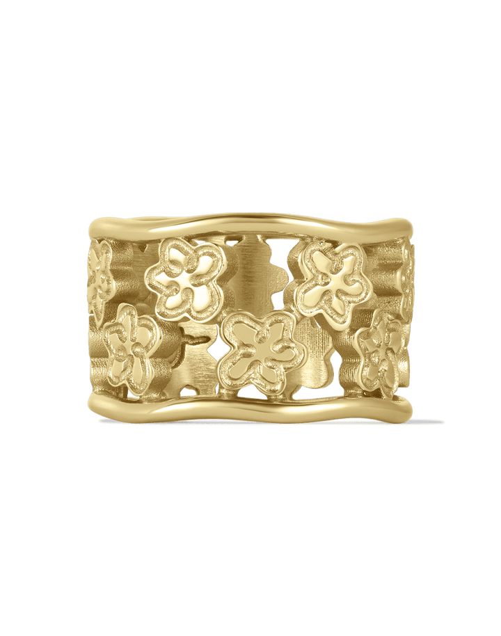 Celebrate nature with the James Michelle Garden Party Ring! Made from 10k gold plated over brass, this chic ring features a 1/2' width band and is perfect for adding a touch of whimsy to your jewelry collection!