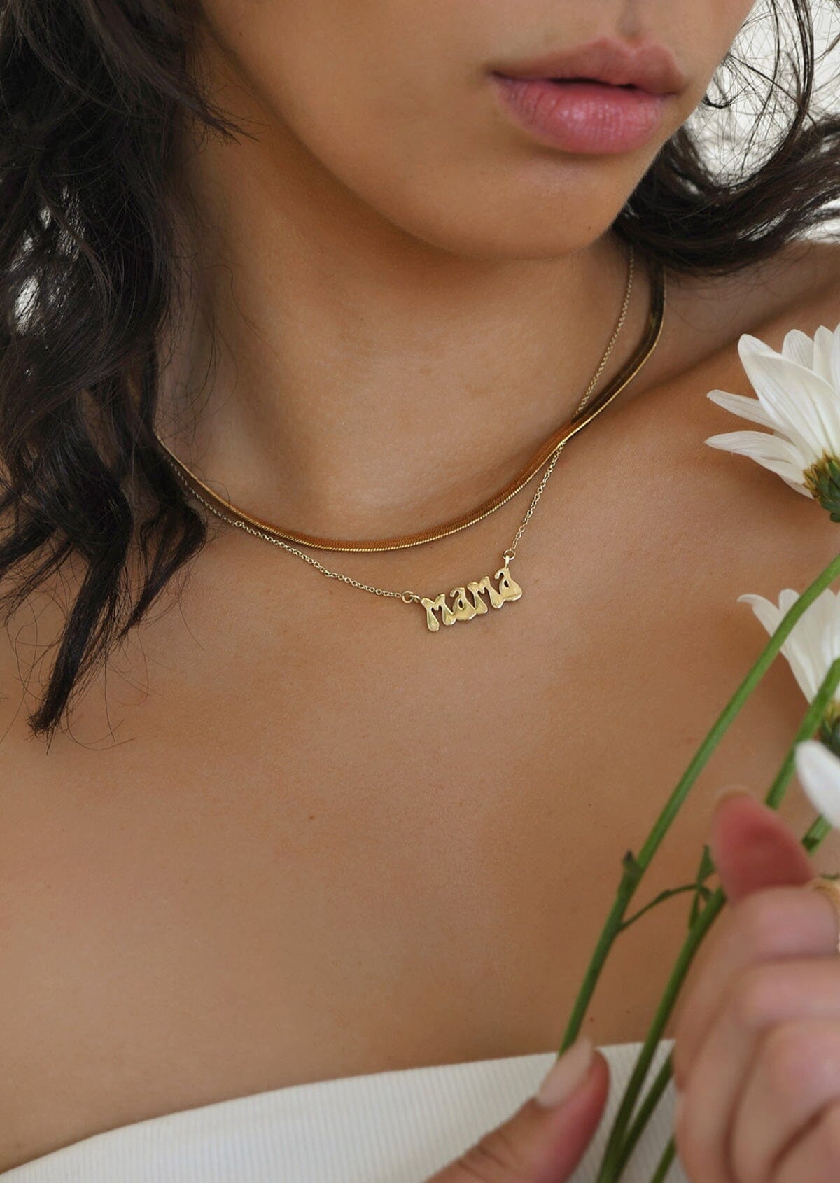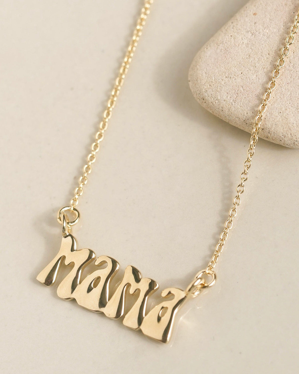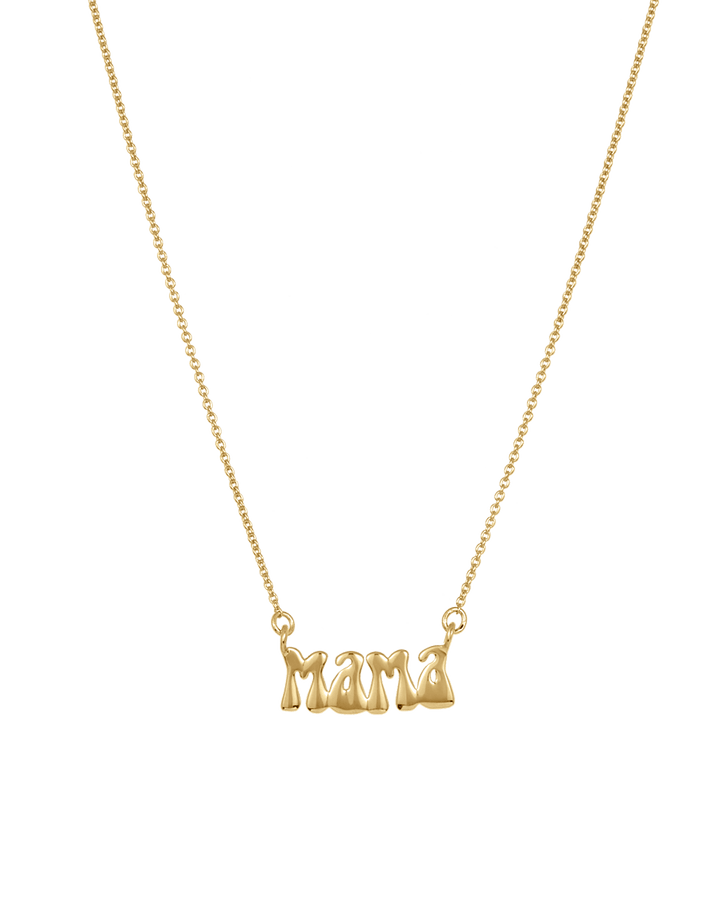 Celebrate your unique style with the James Michelle Groovy Mama Necklace! Crafted from 10k gold plated over brass or silver plated over brass, this pendant measures approximately 1/3' x 3/4' and hangs on an adjustable chain for versatility!