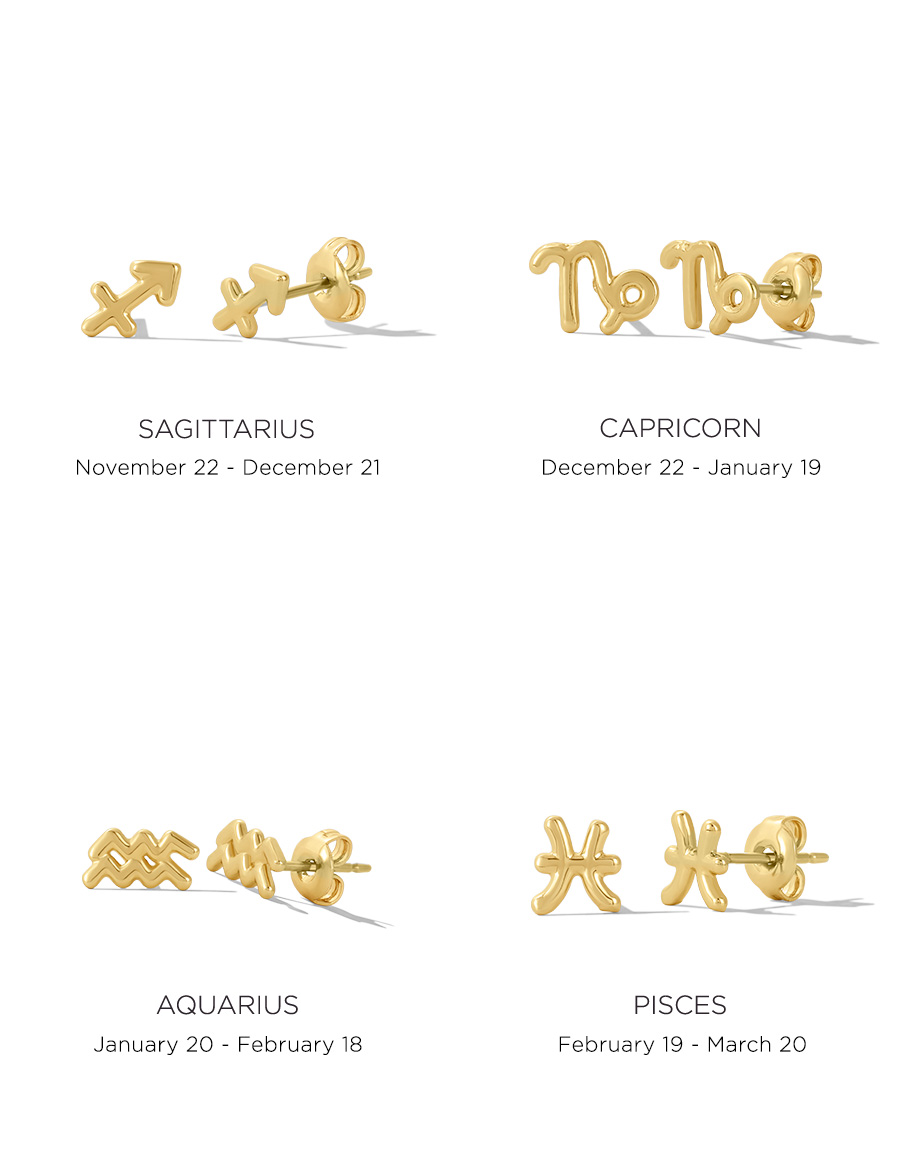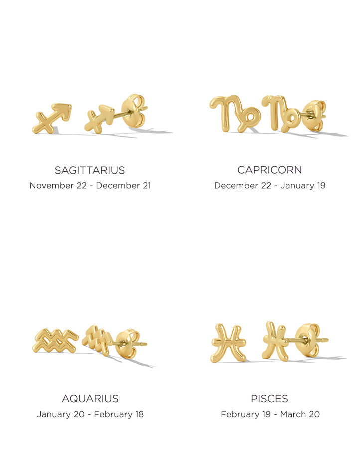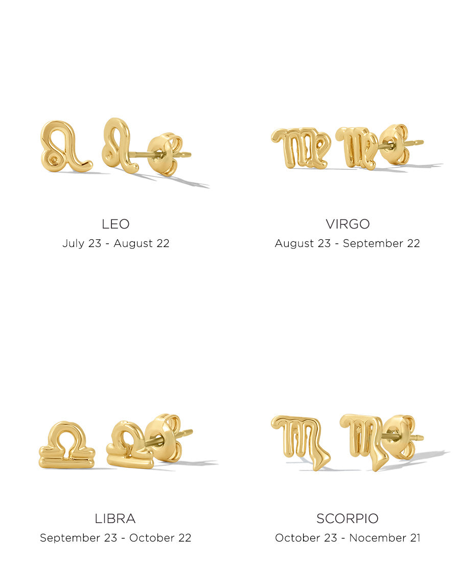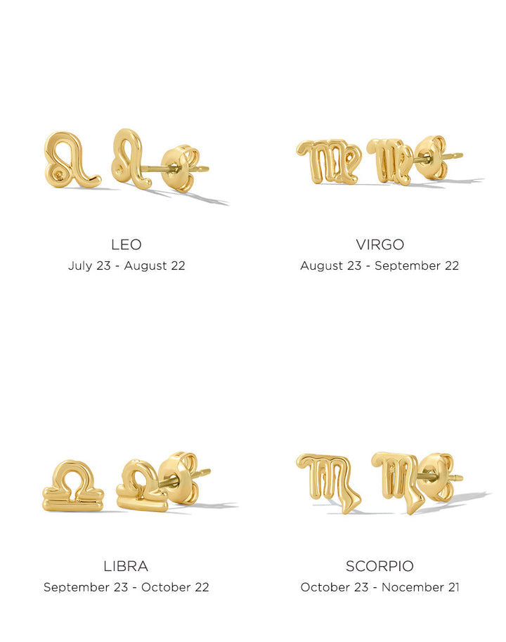 Show off your star sign with the James Michelle Zodiac Studs! Crafted from 10k gold plated over brass with stainless steel posts, these stylish earrings measure 6mm - 10mm and are sold as a pair for a cosmic touch!