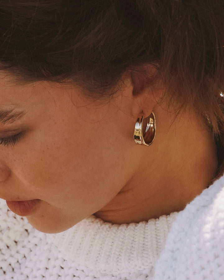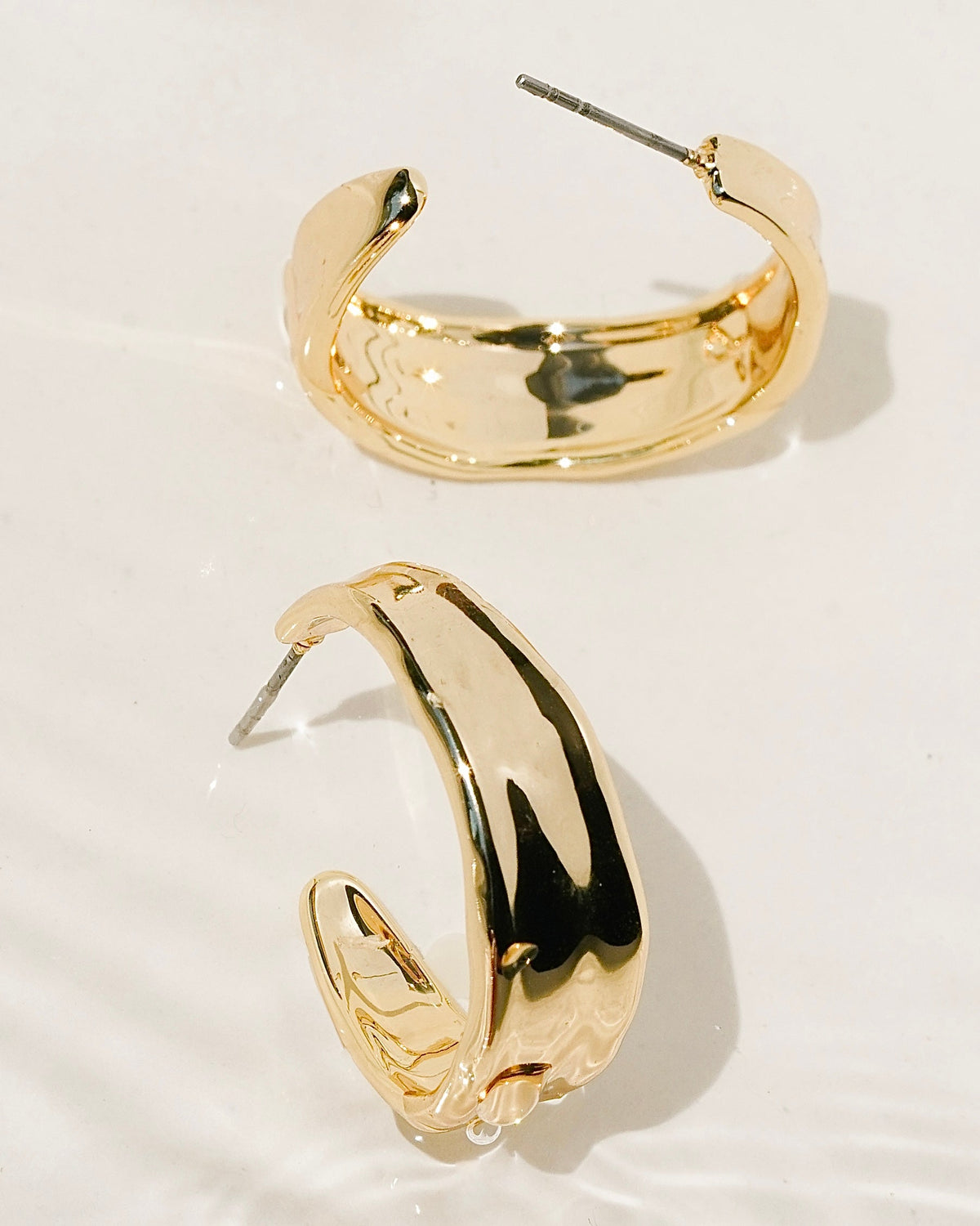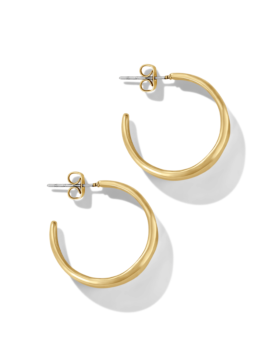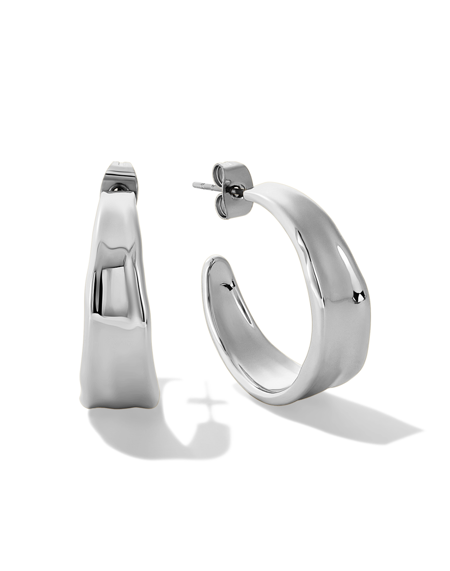 Shine bright with the James Michelle Liquid Hoops! Crafted from 10k gold plated over brass or silver plated over brass with stainless steel posts, these chic hoops measure 1' in diameter and 9mm in width!
