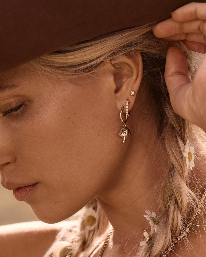 Dazzle with the James Michelle Opal Huggie Hoops! Crafted from 10k gold plated over brass with stainless steel posts, these stunning hoops feature opalescent crystals and measure 15mm in diameter for a trendy finish!