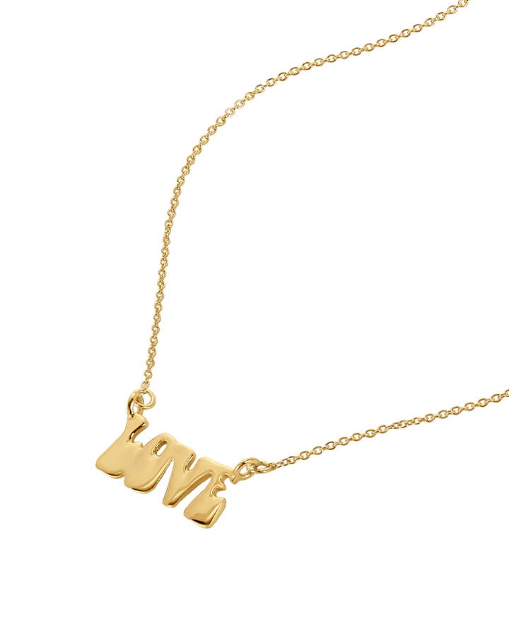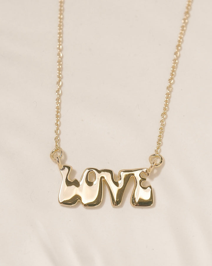 Embrace a playful vibe with the James Michelle Groovy Love Necklace! Crafted from 10k gold plated over brass or silver plated over brass, this pendant measures approximately 1/3' x 3/4' and comes with an adjustable chain length of 16'' - 18'' or 20'' - 22''!