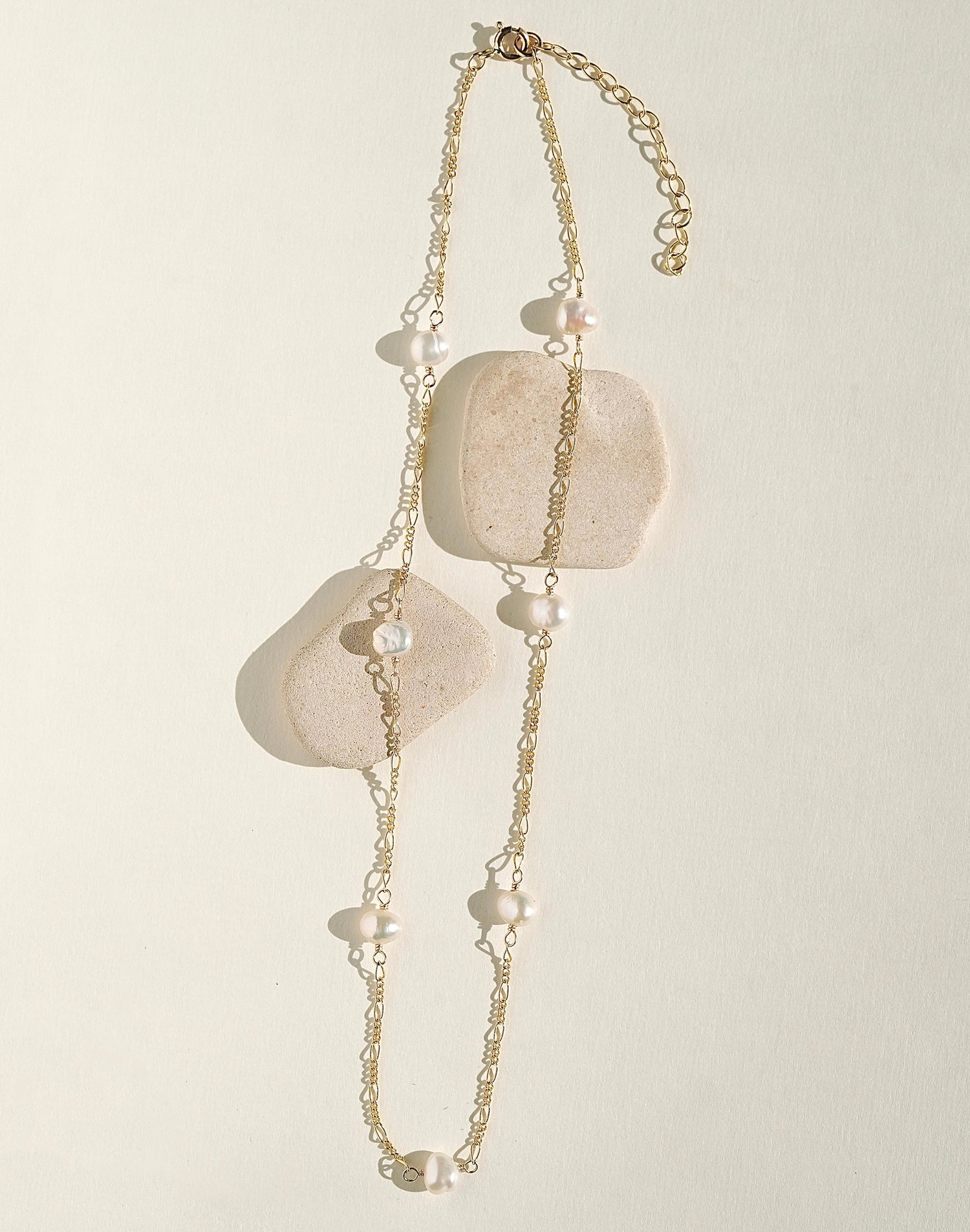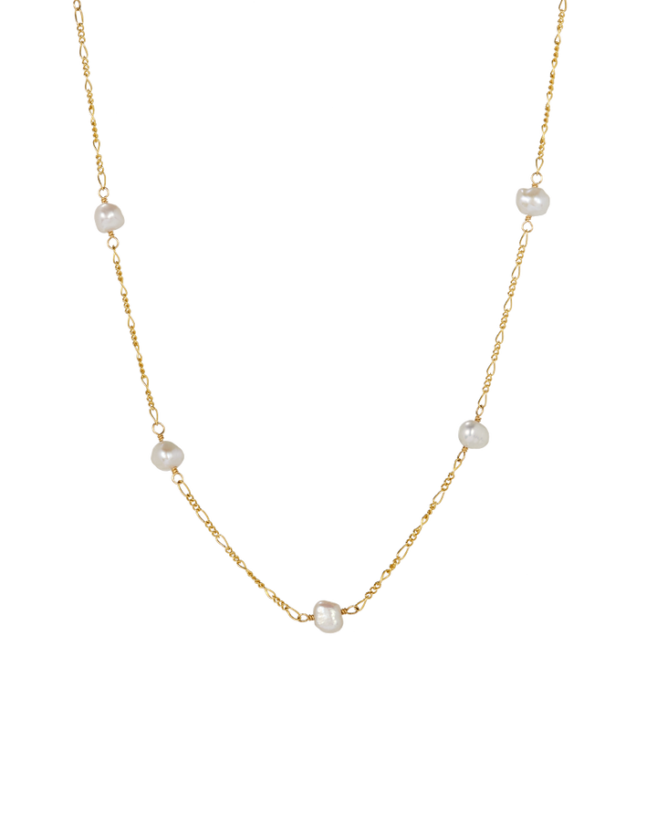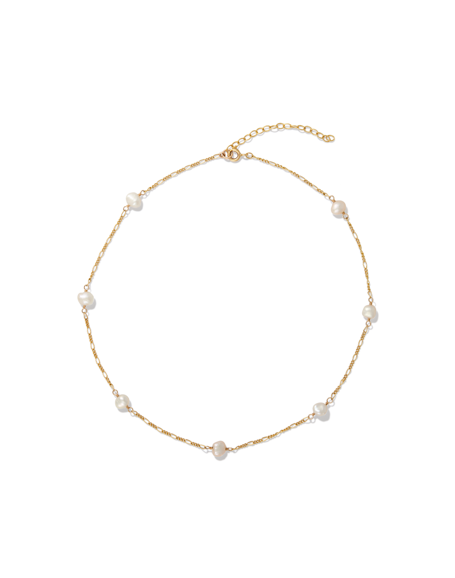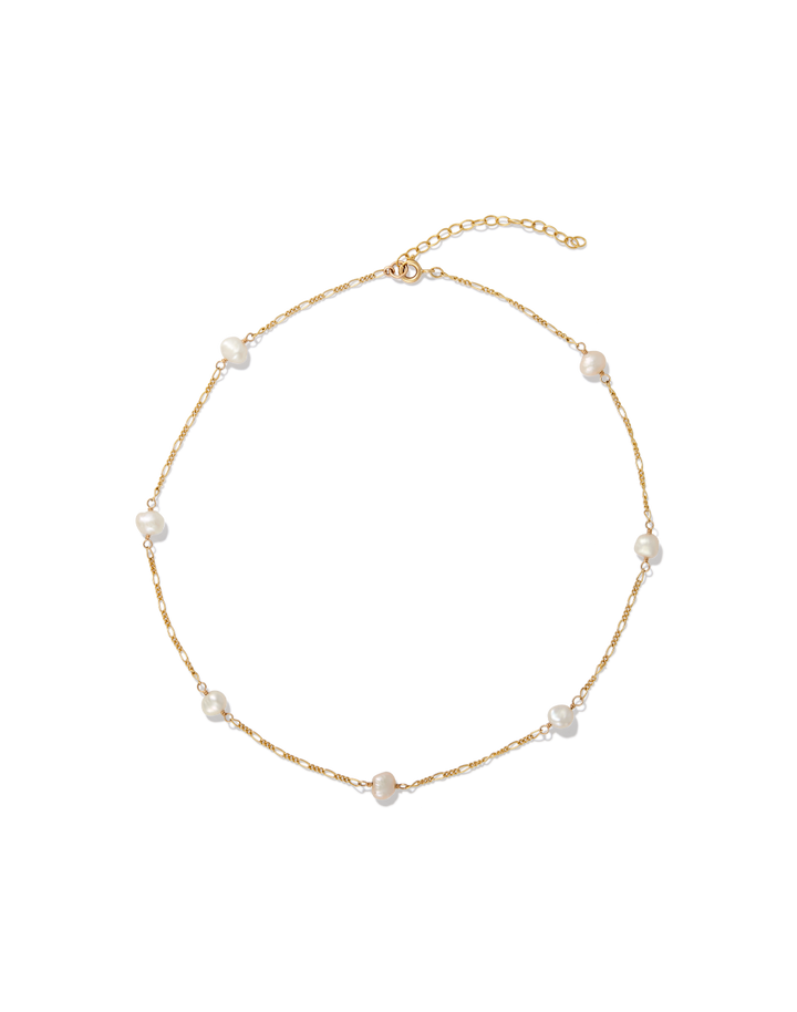 Add a touch of elegance with the James Michelle Oasis Choker! Featuring 14k gold fill and 5mm freshwater pearls, this stunning choker has a 1.3mm figaro chain and is adjustable from 15'' - 17''!