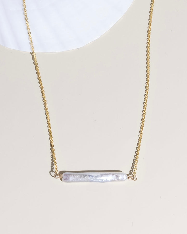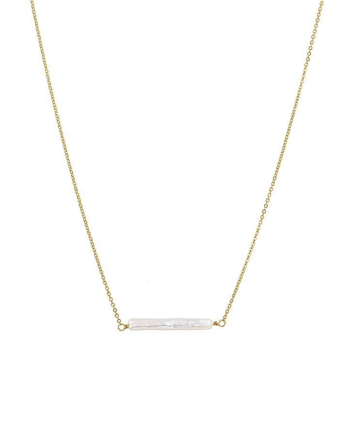 Add a touch of sophistication with the James Michelle Pearl Bar Necklace! Crafted from 14k gold fill, this necklace features a 25mm freshwater pearl pendant on a 1.1mm cable chain, adjustable from 14.5' - 16.5'!