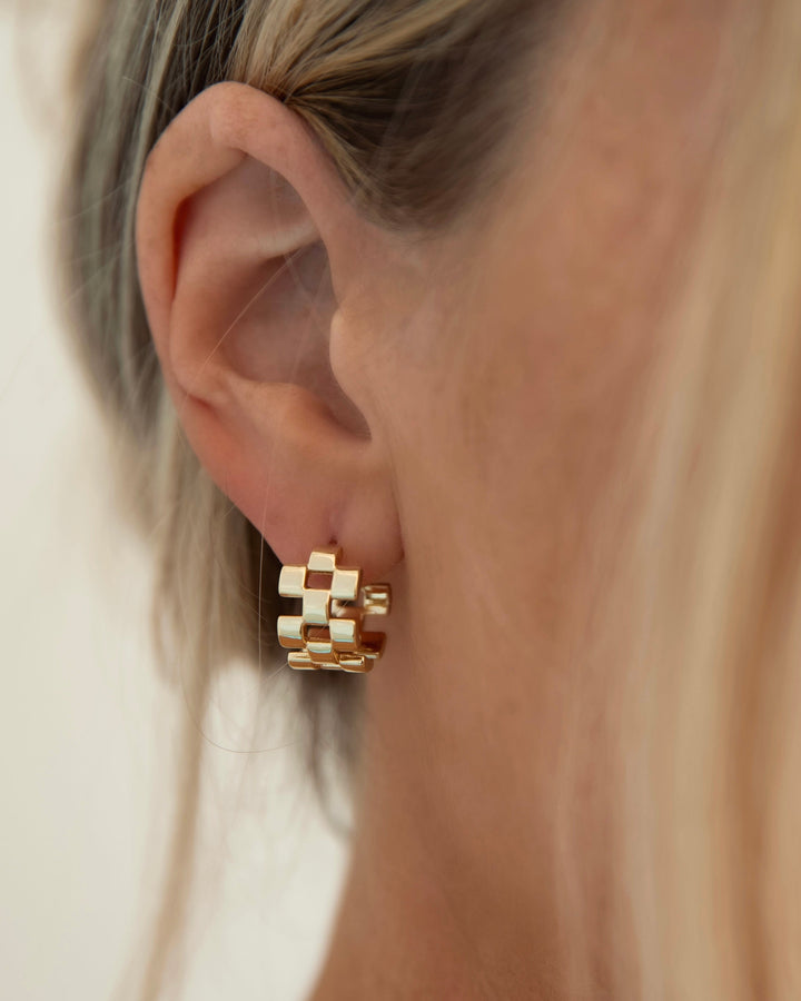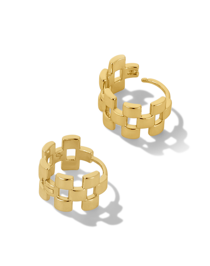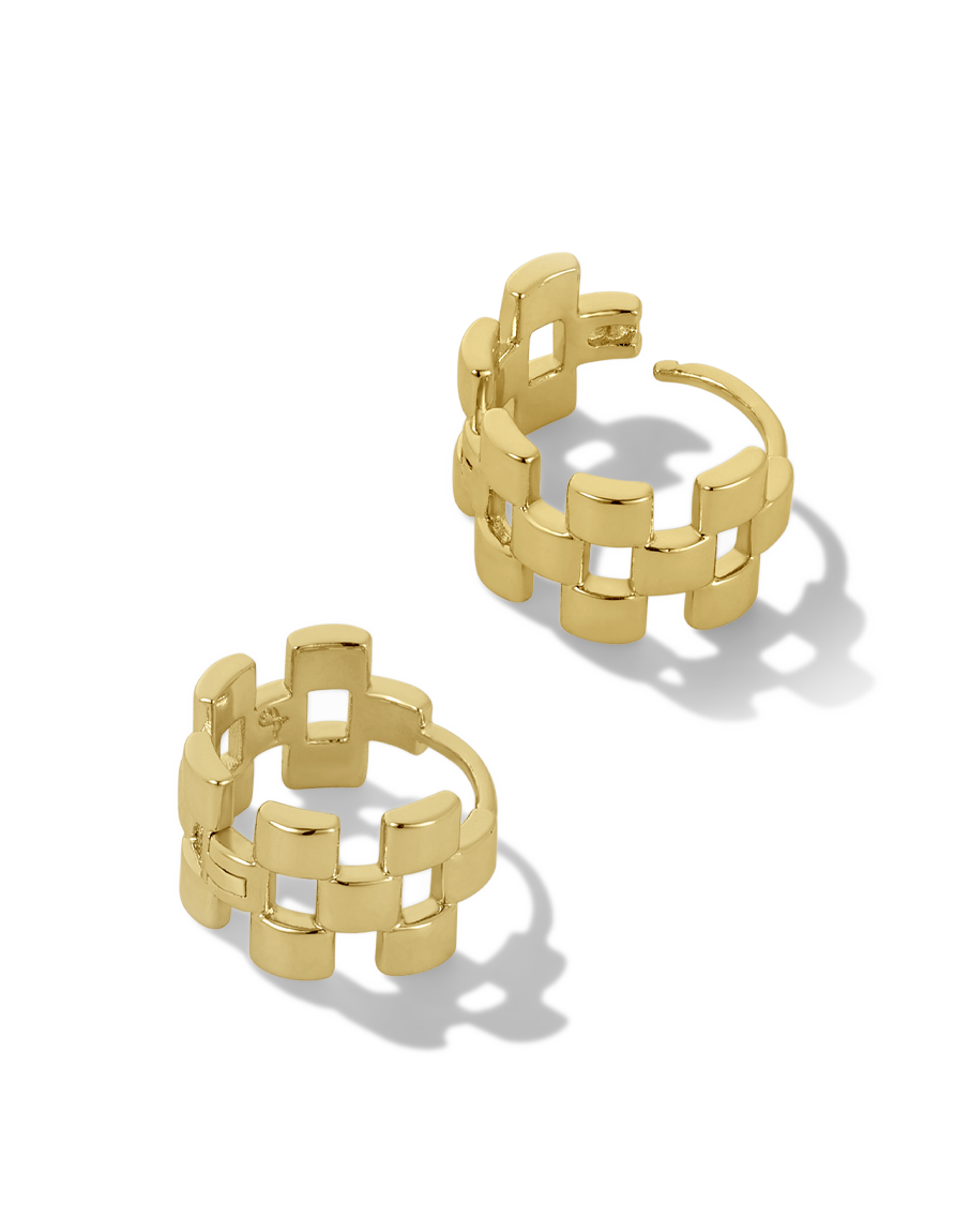 Elevate your accessory game with the James Michelle Montauk Huggies! Crafted from brass with a durable 10k gold PVD coating, these huggies feature a width of 10mm and a diameter of 5/8', perfect for any occasion!