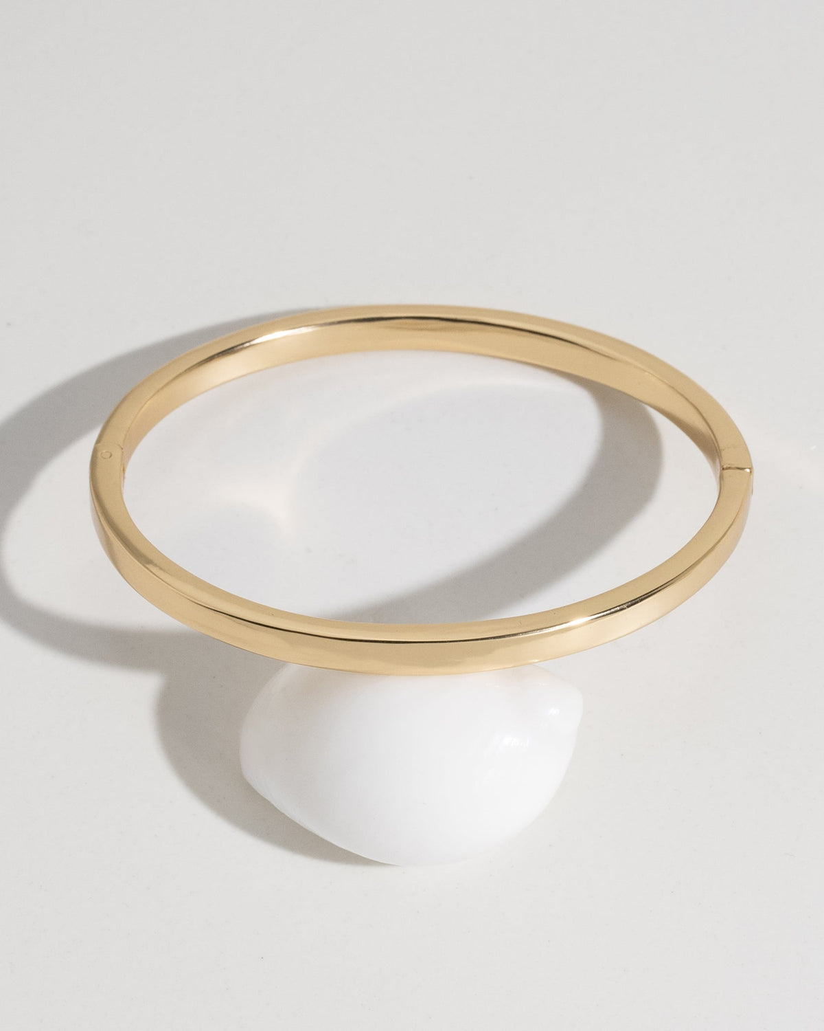 Add timeless elegance with the James Michelle Classic Bracelet! Made from waterproof, tarnish proof, and hypoallergenic stainless steel with a 10k gold PVD coating, this bracelet features a circumference of approximately 7' and a 6mm width!