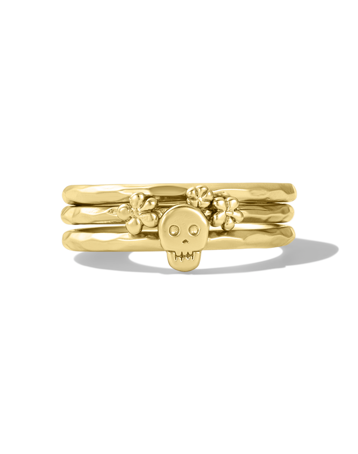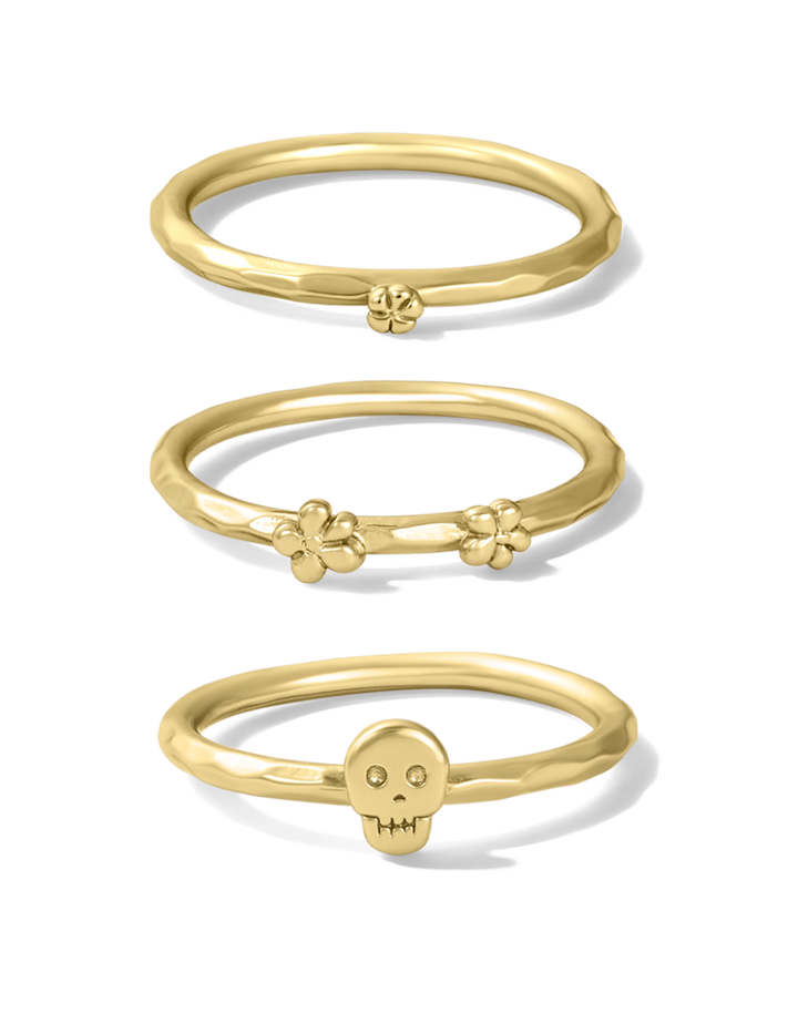 Showcase your style with the James Michelle Heart Bones Ring Set! Made from 12k gold plated over brass, this set includes three 2.5mm bands sold together for a trendy layered look!