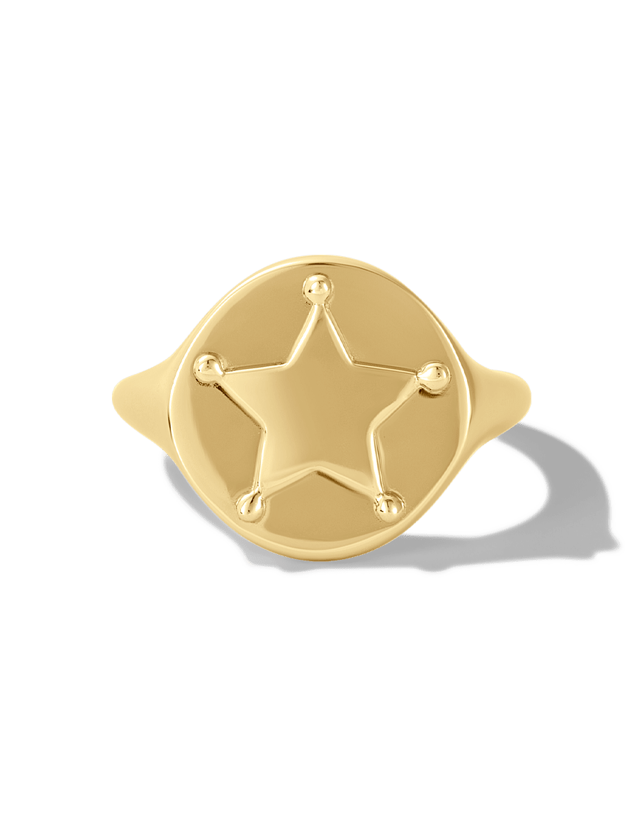 Make a statement with the James Michelle Le Sherif Ring! Made from 10k gold plated over brass, this stylish ring features a 13mm diameter at the ring face, adding a touch of glamour to any outfit!