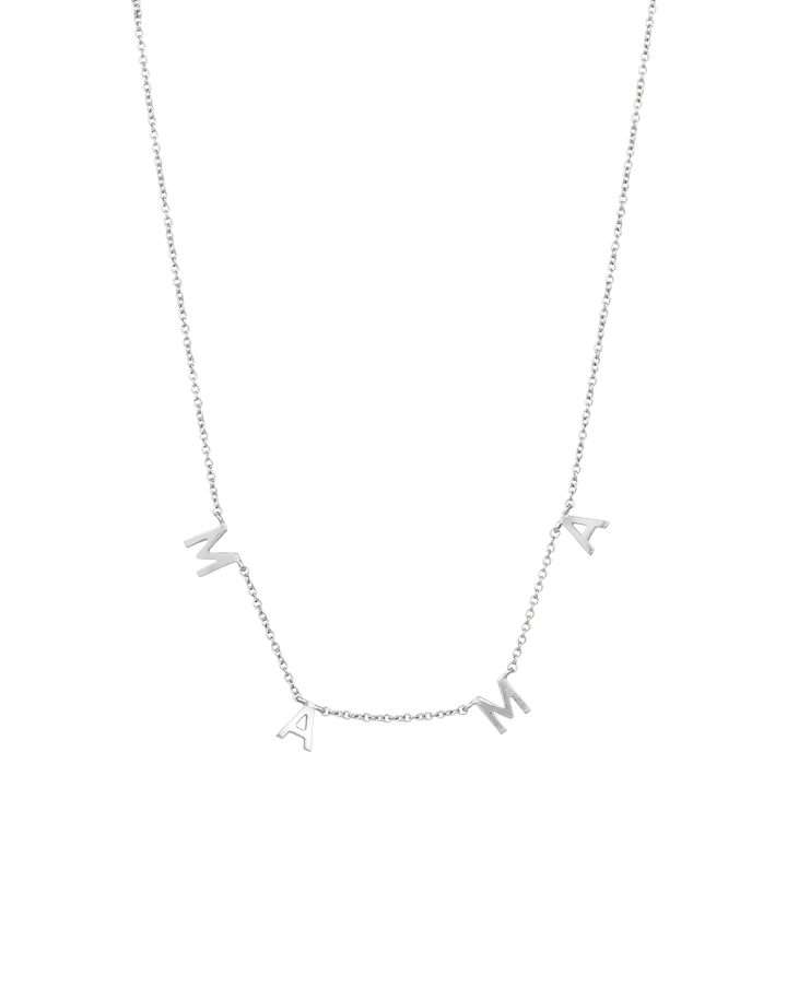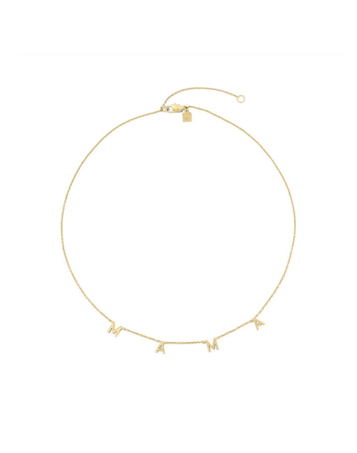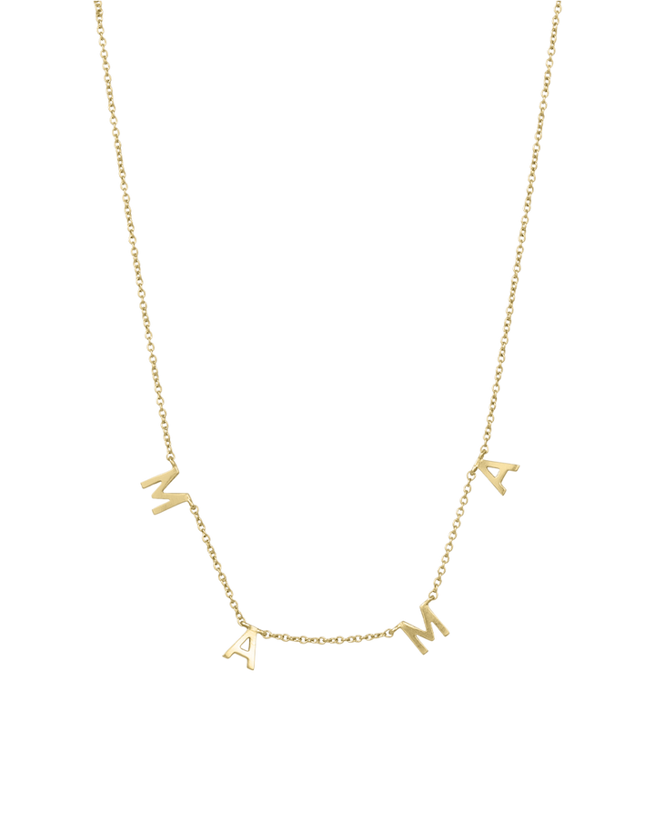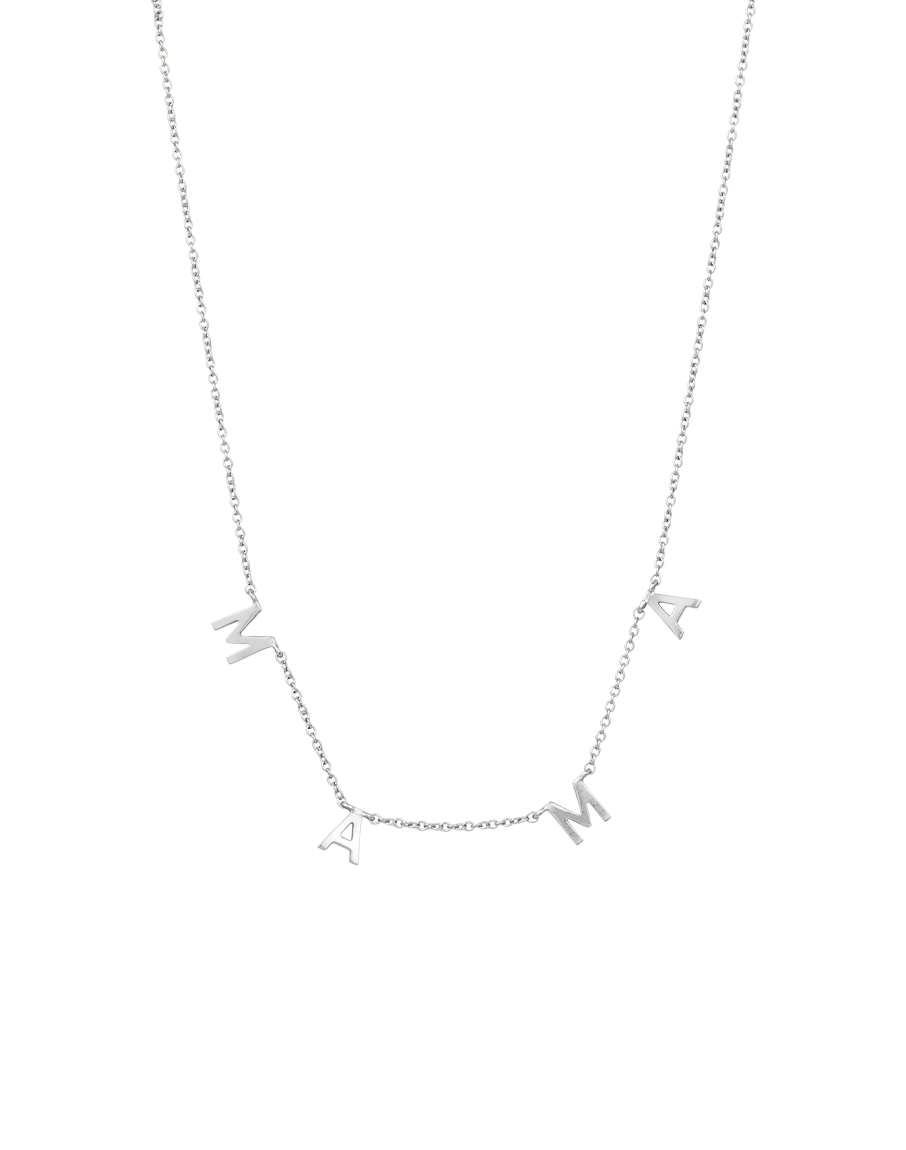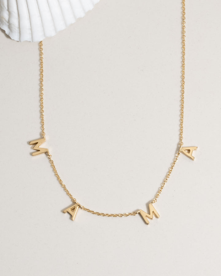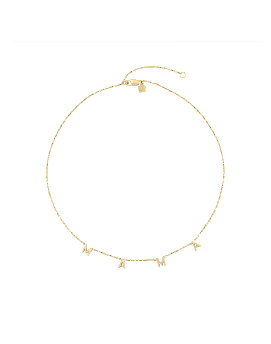 Celebrate motherhood with the James Michelle Mama Letter Necklace! Made from 12k gold plated over brass or silver plated over brass, this necklace features adjustable lengths of 16' - 18' or 18' - 20' with letters measuring 5mm x 8mm!