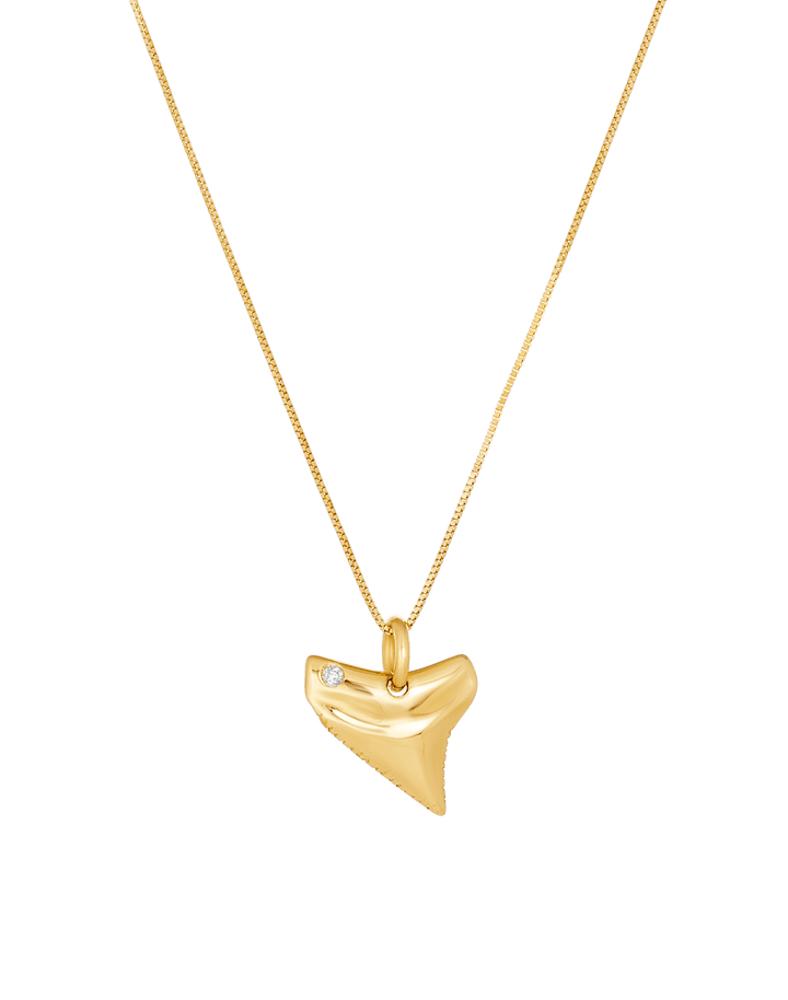 Shine bright with the James Michelle Diamond Jaws Necklace! Made from 14k solid yellow gold, this pendant features a diamond (1.1mm–1.4mm diameter) and measures .5' x .5', perfect for any occasion!
