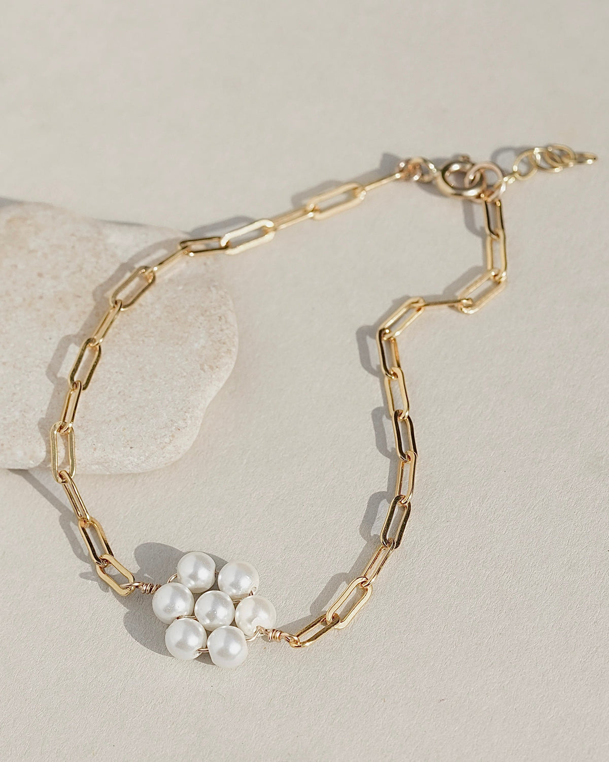 Add a floral touch with the James Michelle Pearl Daisy Bracelet! Made from 14k gold fill and freshwater pearls, this adjustable bracelet features lengths of 6.5' - 7' or 7' - 7.5', with a 5/8' diameter daisy charm for a charming finish!