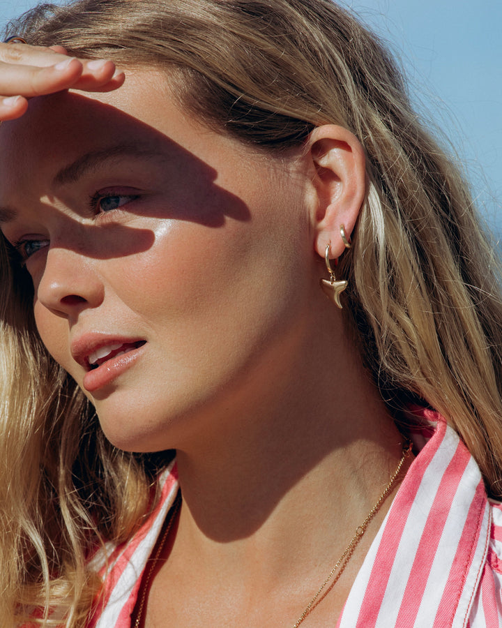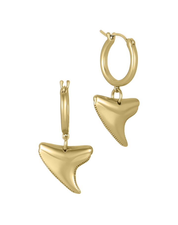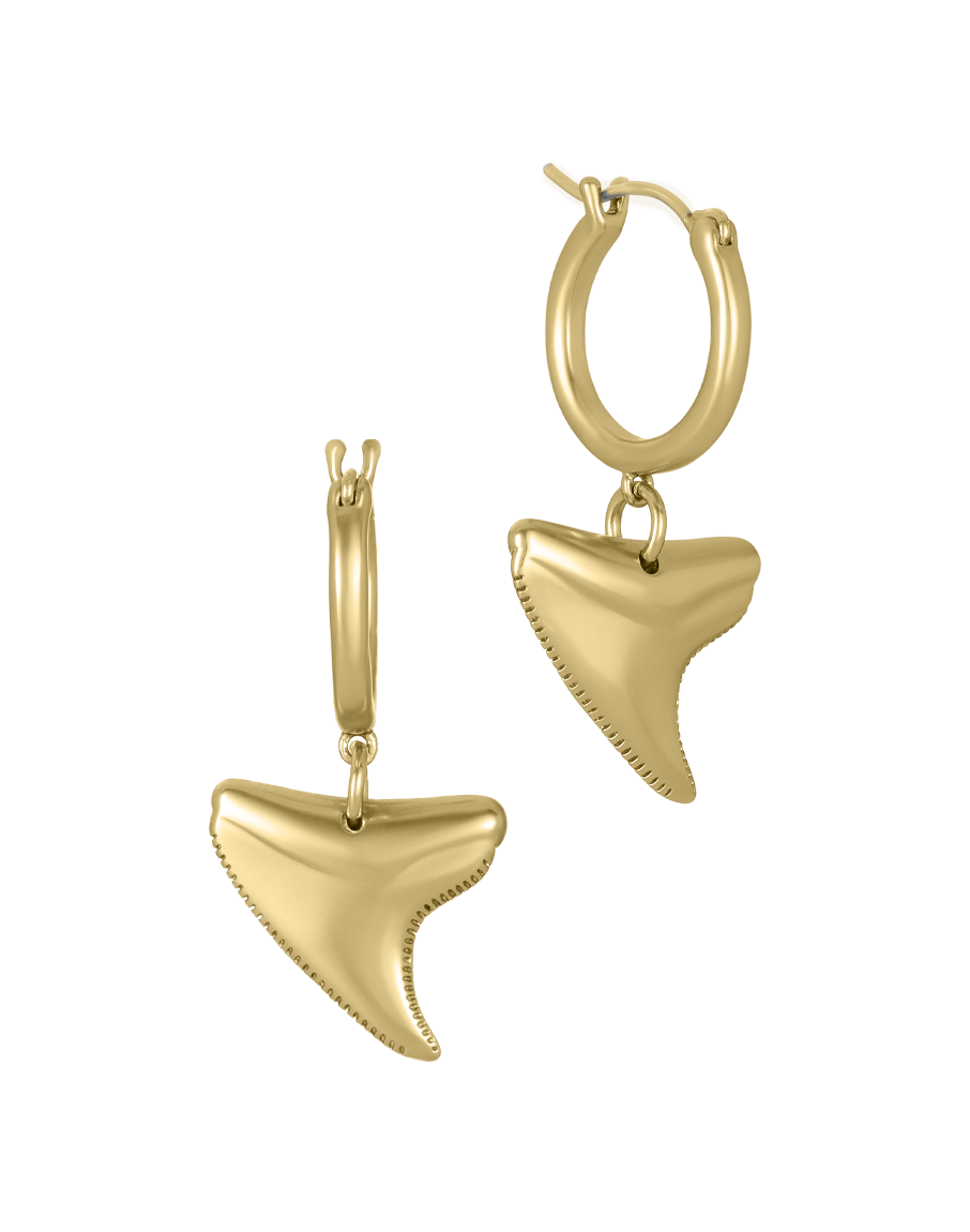 Make a bold statement with the James Michelle Jaws Earrings! Crafted from 12k gold plated over brass or silver plated over brass, these huggies feature a 15mm pendant, a 15mm hoop diameter, and a total drop length of 1.25' for an eye-catching accessory!