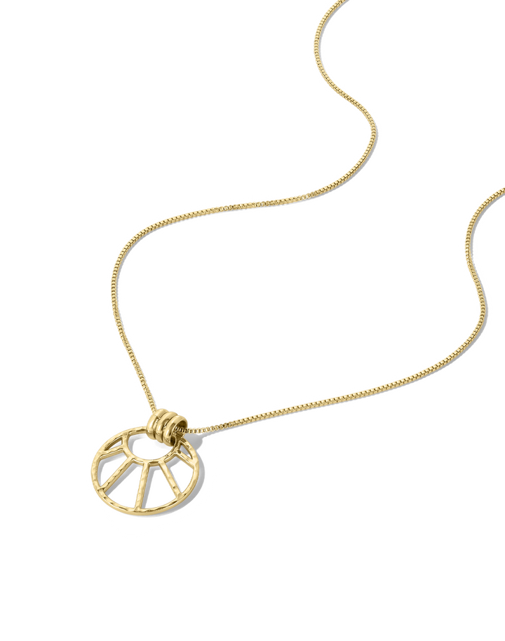 Shine bright with the James Michelle Sunny Day Necklace! Crafted from 12k gold plated over brass, this stunning pendant measures 1' in diameter and features a 1mm box chain with an adjustable length of 20' - 22' for a versatile addition to any outfit!