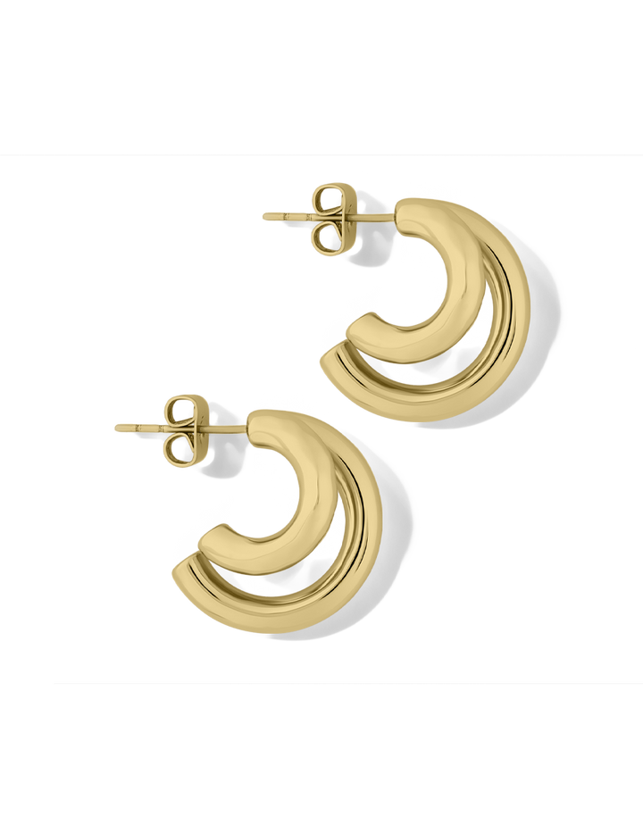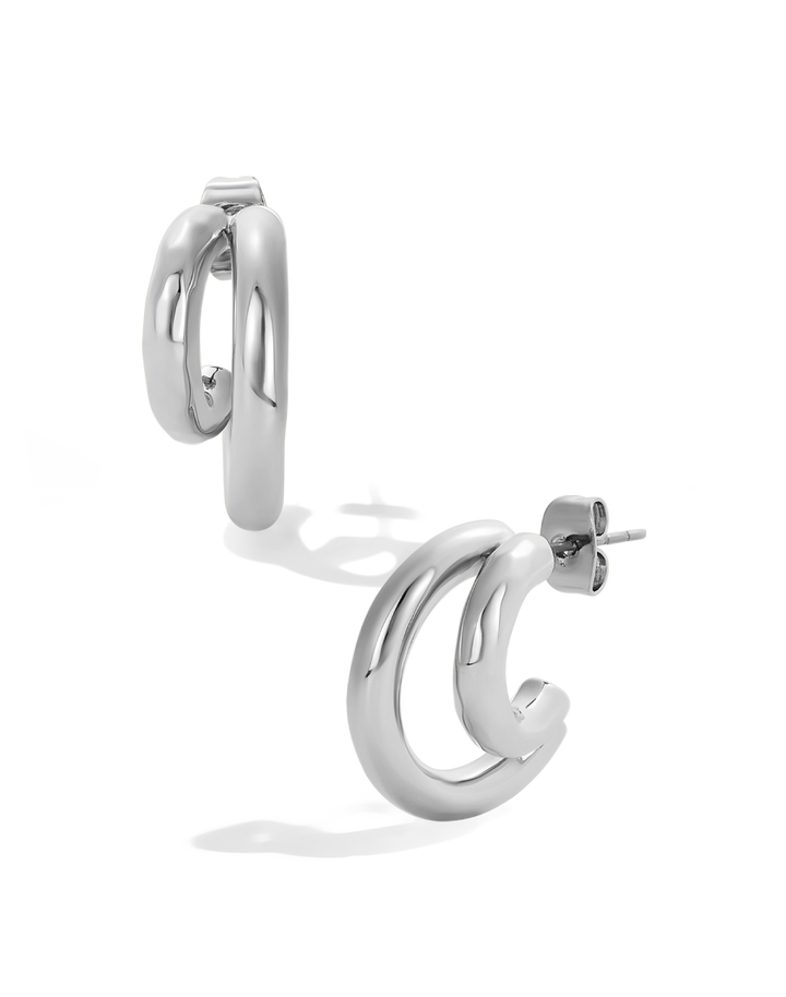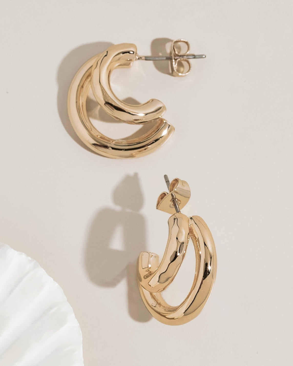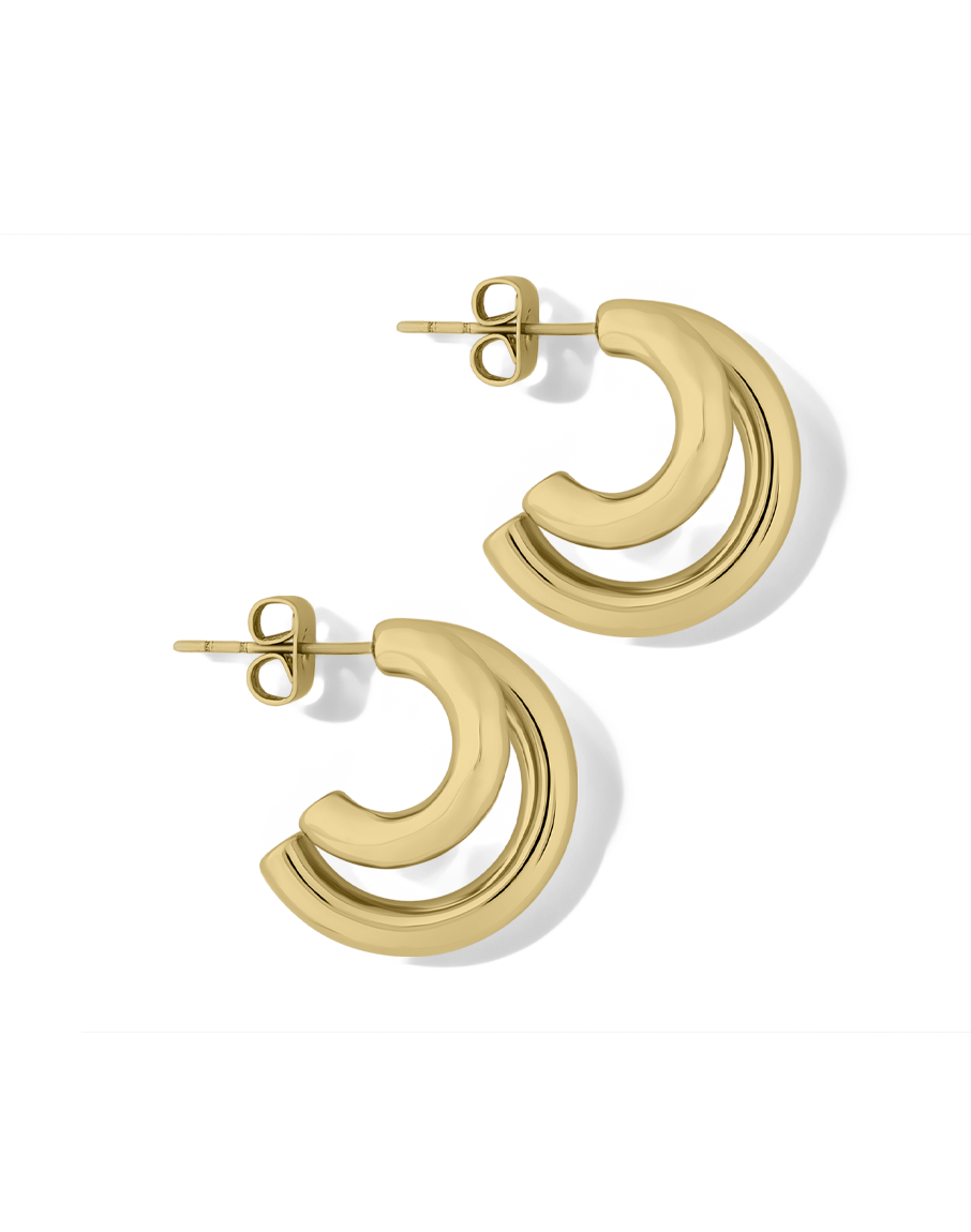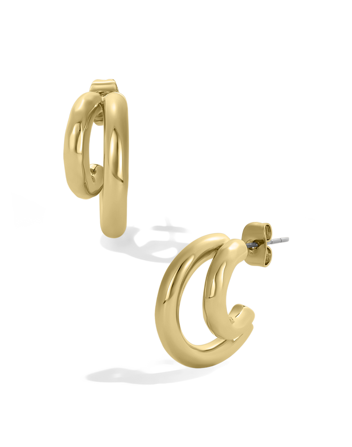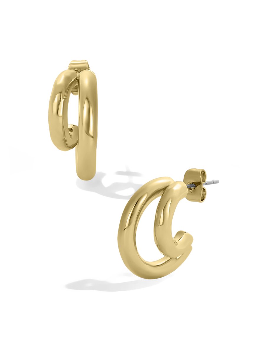 Enhance your accessory collection with the James Michelle Double Hoops! Crafted from 12k gold plated over brass or silver plated brass with stainless steel posts, these stylish hoops feature dimensions of 10mm width and 20mm diameter for a chic look!