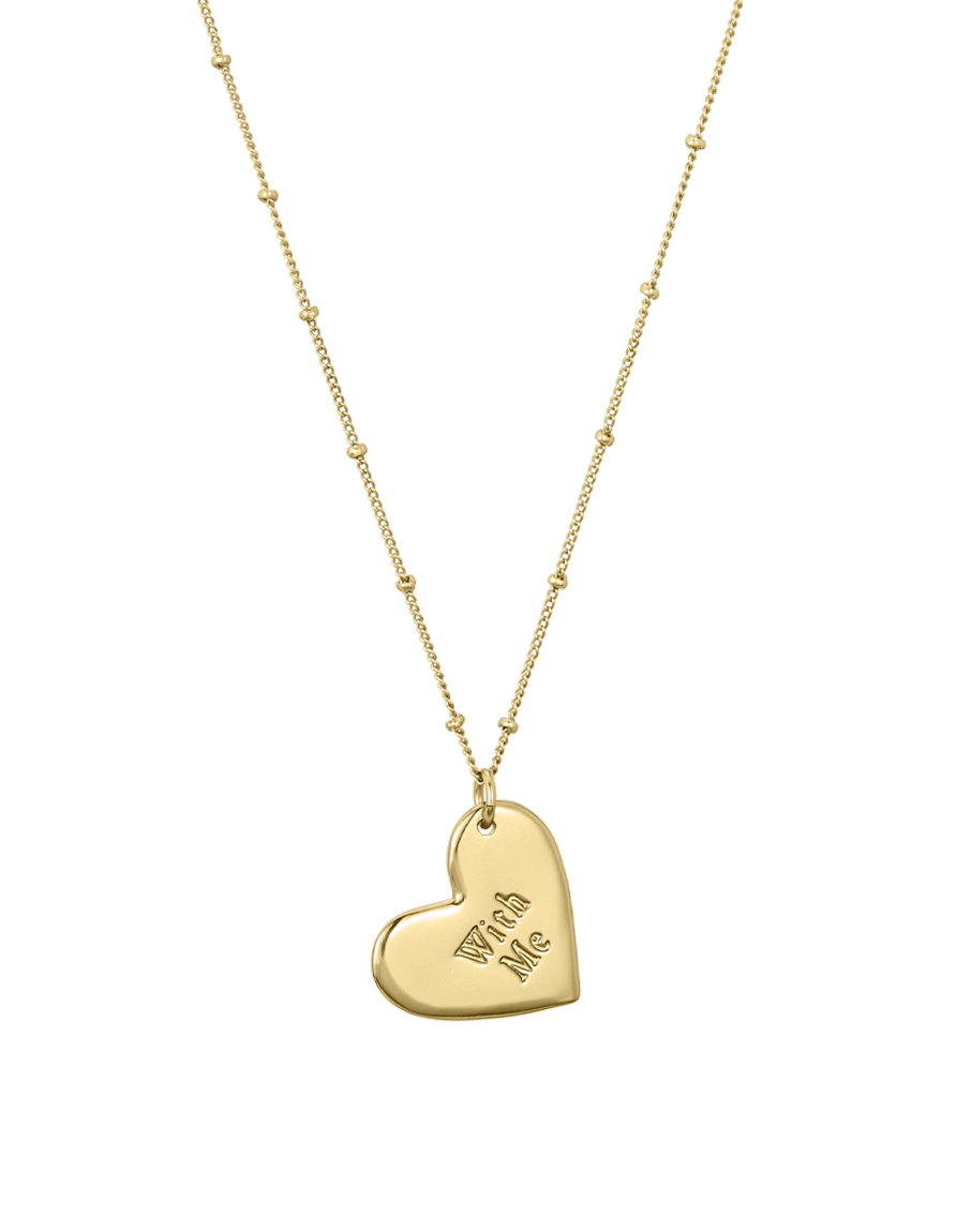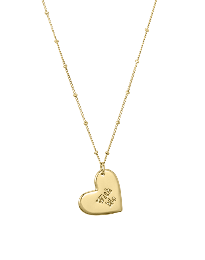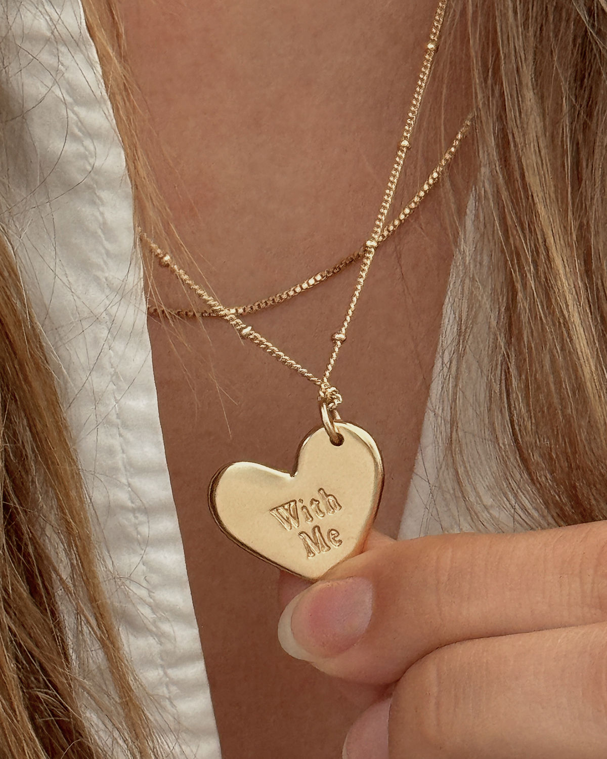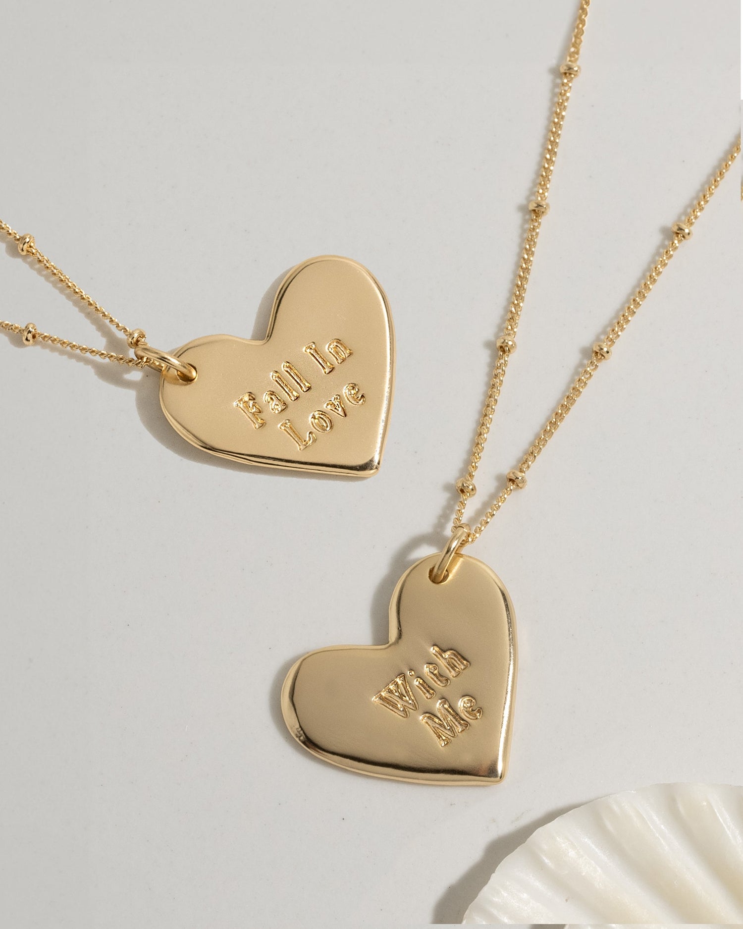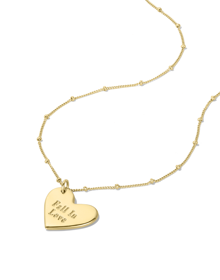 Share your love with the James Michelle Fall In Love Necklace! Crafted from 12k gold plated over brass, this pendant measures 23mm and features a 1mm satellite chain with an adjustable length of 18' - 20' or 22' - 24'.
