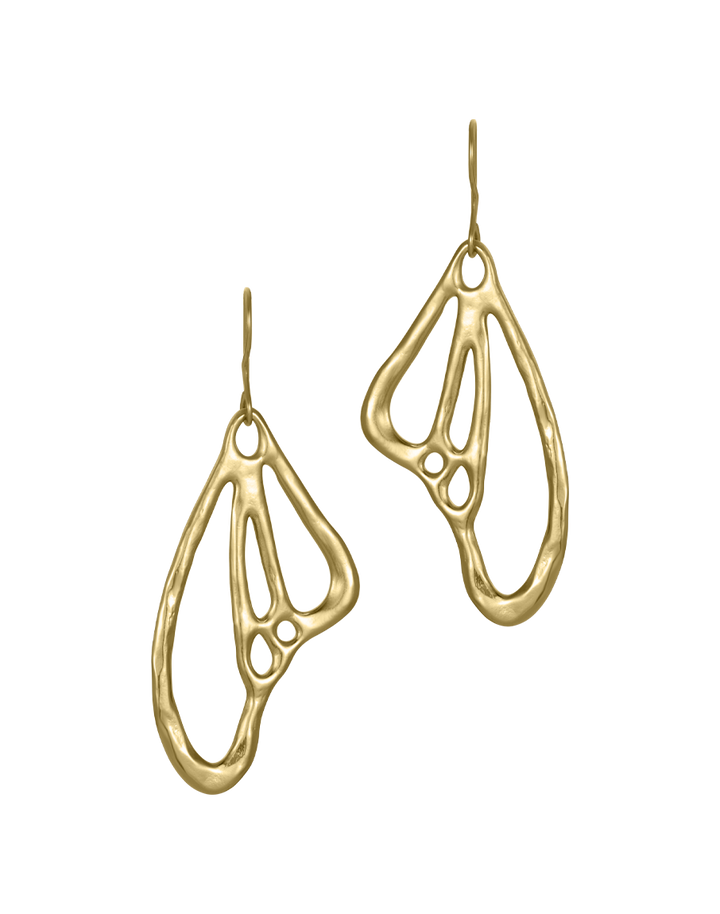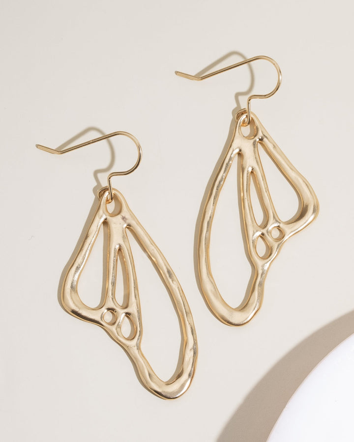 Add a whimsical touch to your outfit with the James Michelle Butterfly Wing Earrings! Made from 12k gold plated over brass or silver plated over brass, these earrings feature a total drop length of 2.25' and a width of 1.25'.