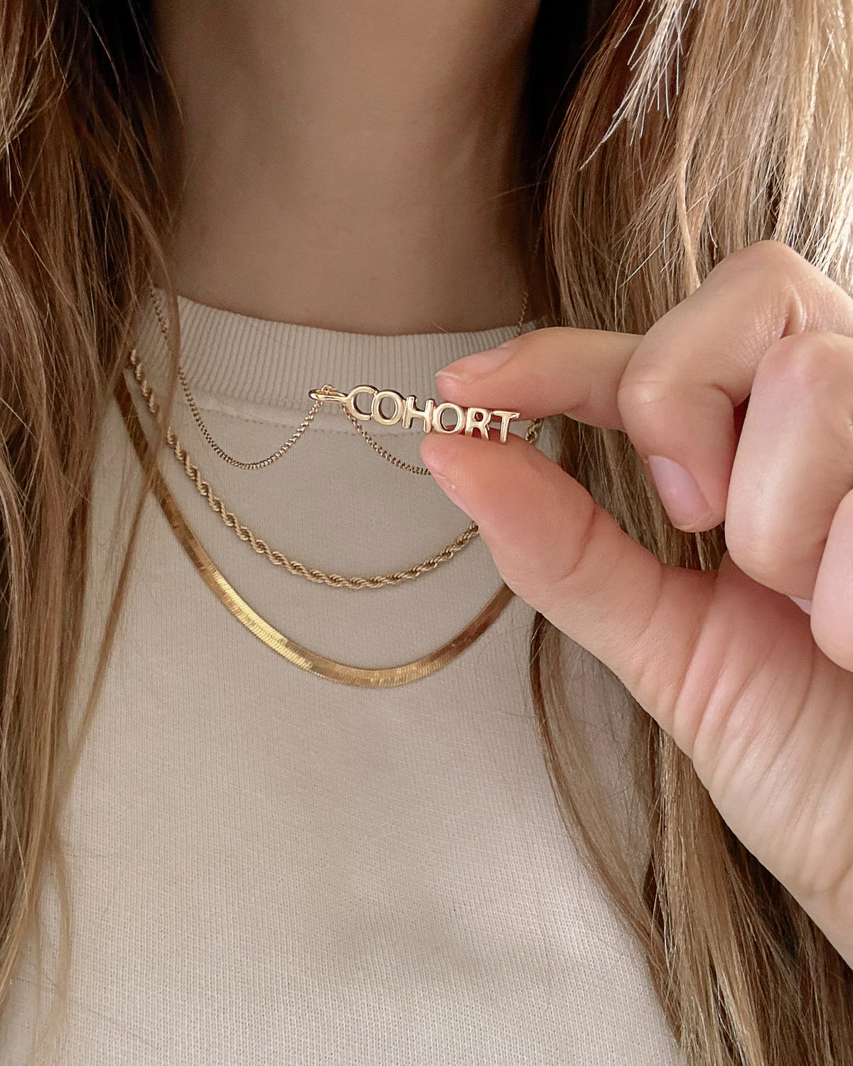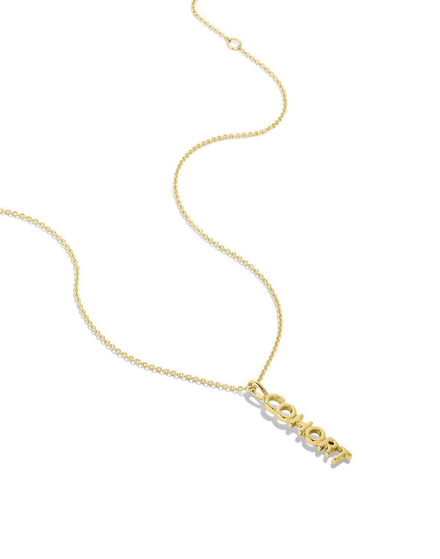 Elevate your style with the James Michelle Cohort Necklace! Crafted from 12k gold plated over brass, this chic pendant measures 6mm x 28mm and hangs gracefully from a 1.1mm cable chain with an adjustable length of 18'' - 20'' or 22'' - 24''.