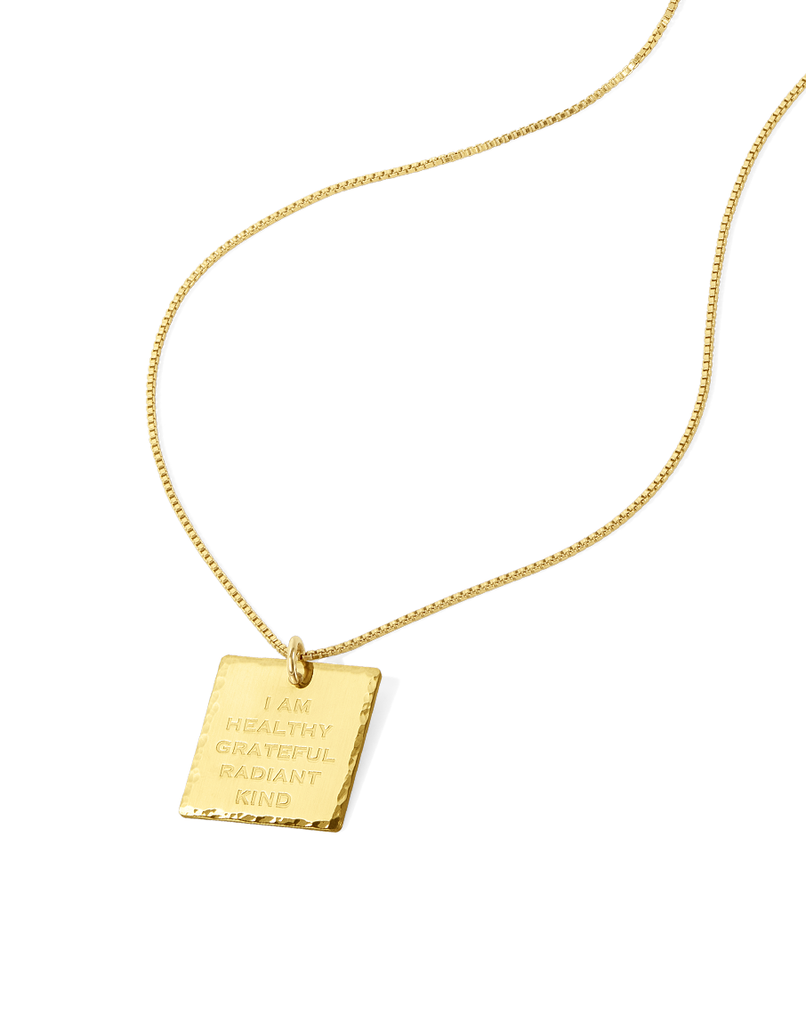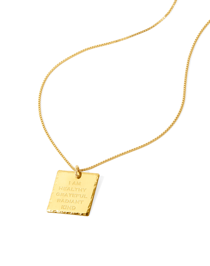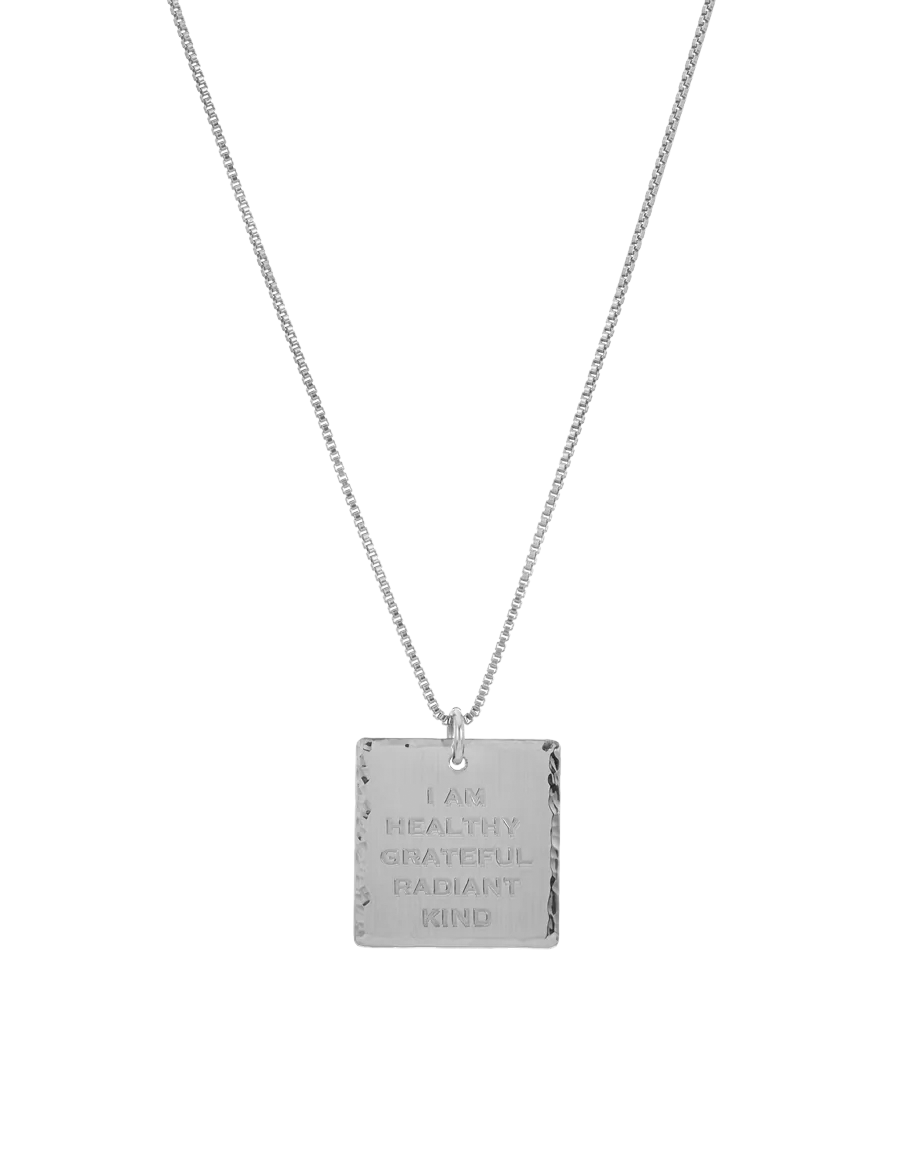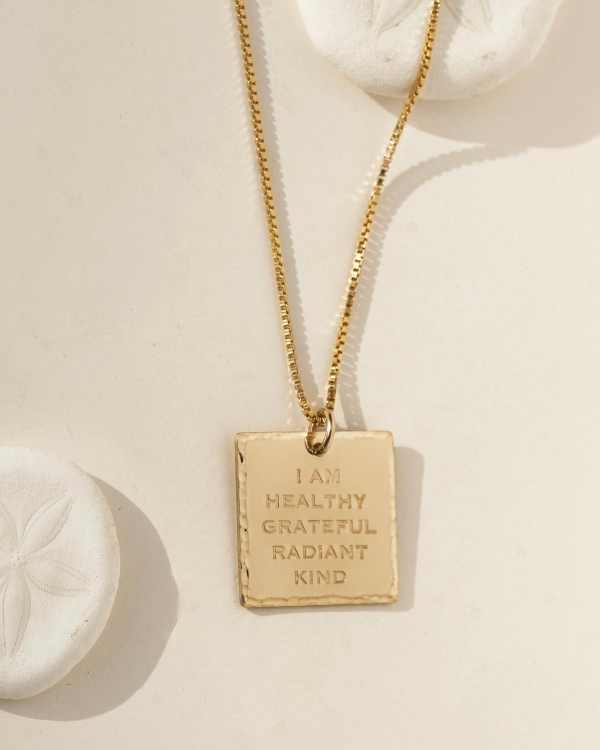 Make a statement with the James Michelle I Am... Necklace! This beautiful pendant, made from 14k gold fill or sterling silver, features a 3/4'' square design and hangs from a 1mm box chain with an adjustable length of 18'' - 20''. Stamp it as shown!