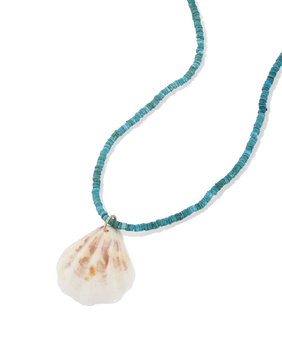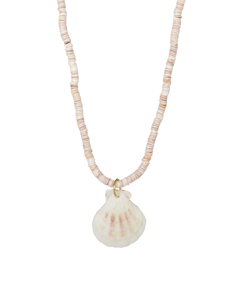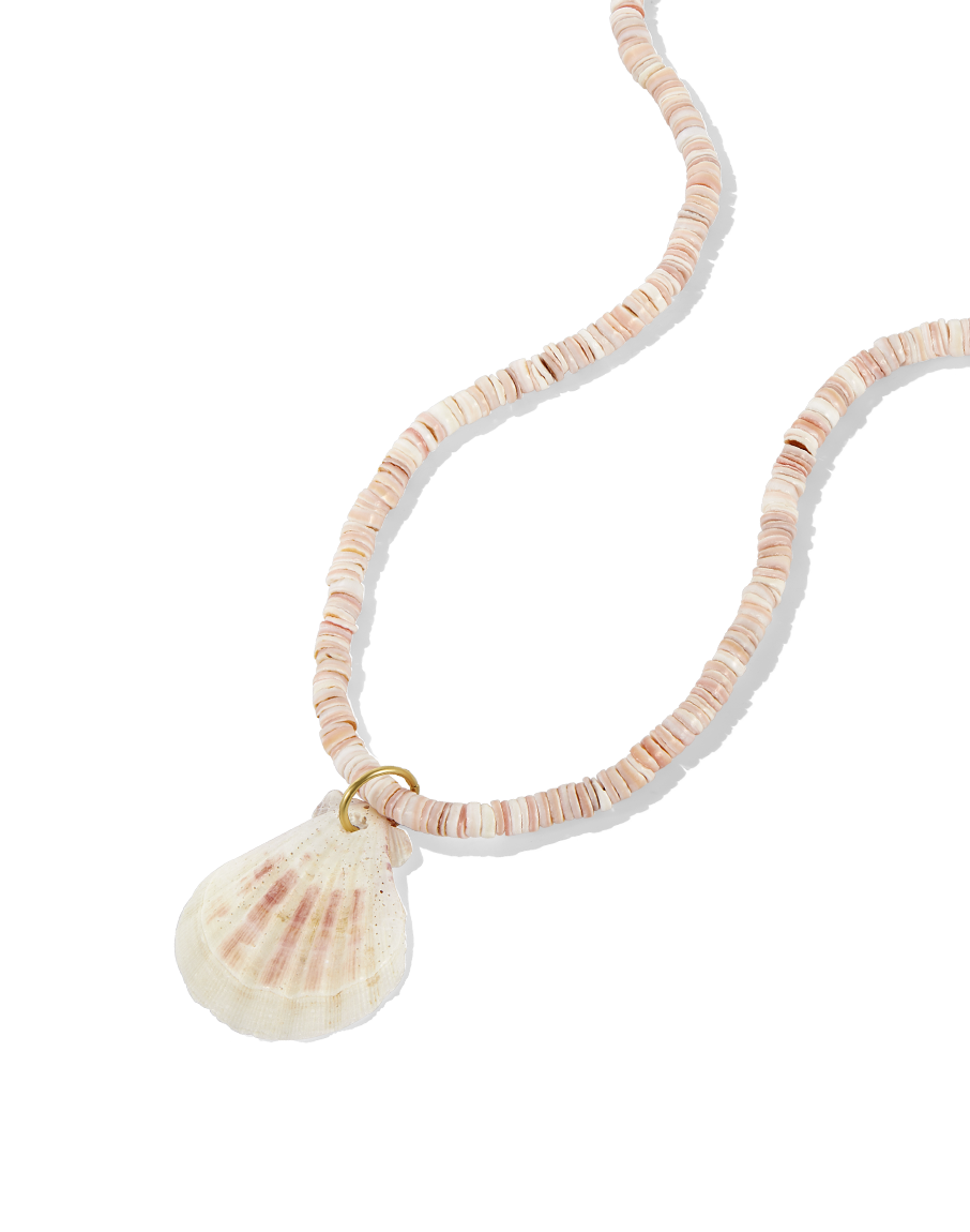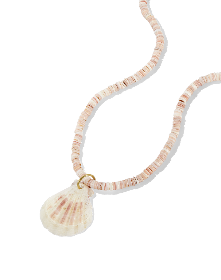 Embrace your inner mermaid with the James Michelle Cora Clamshell Necklace! This beautiful piece features a natural shell pendant approximately 15mm tall, crafted from 14k gold fill and 5mm heshi shell beads, with an adjustable length of 16.5'' - 18.5''.