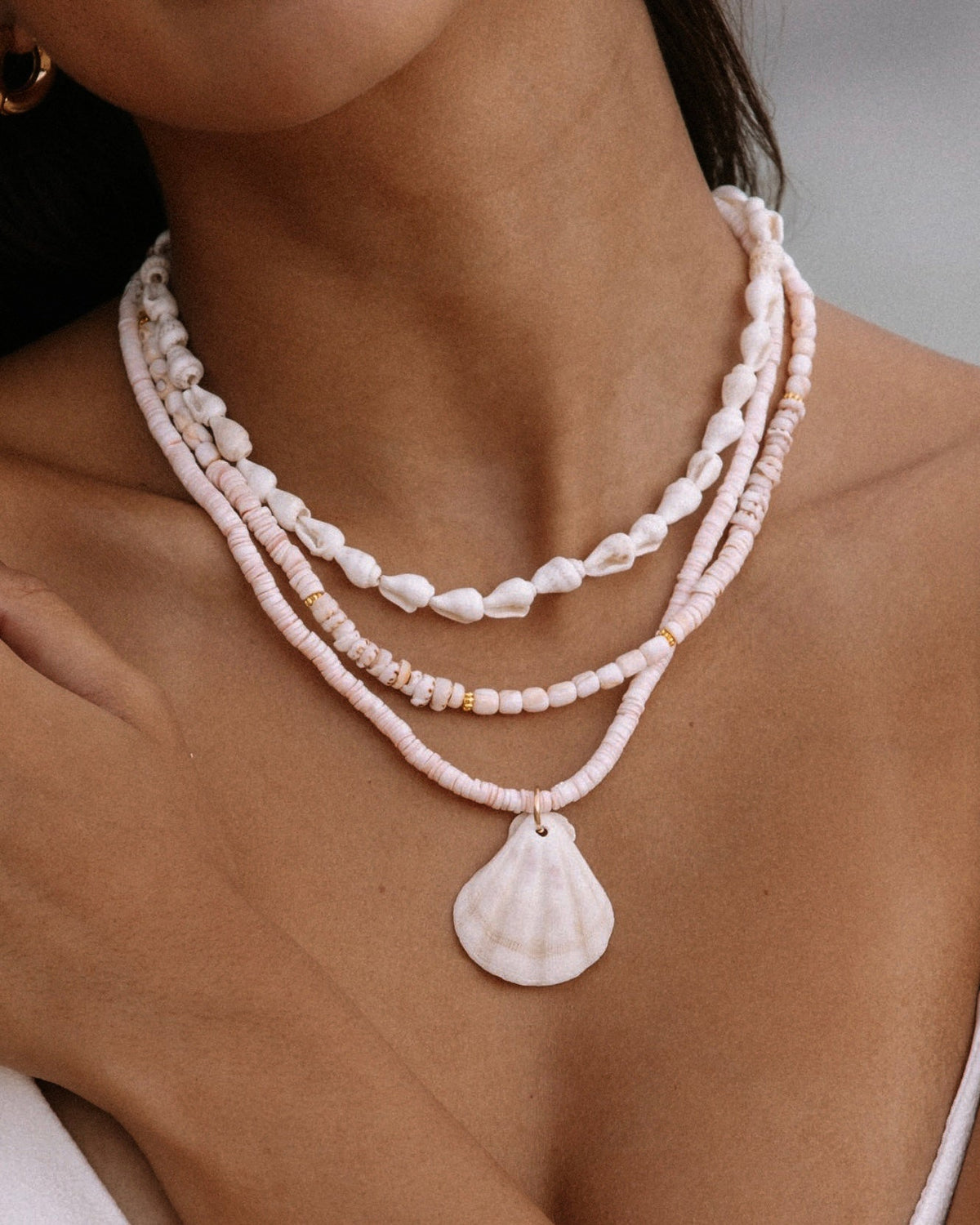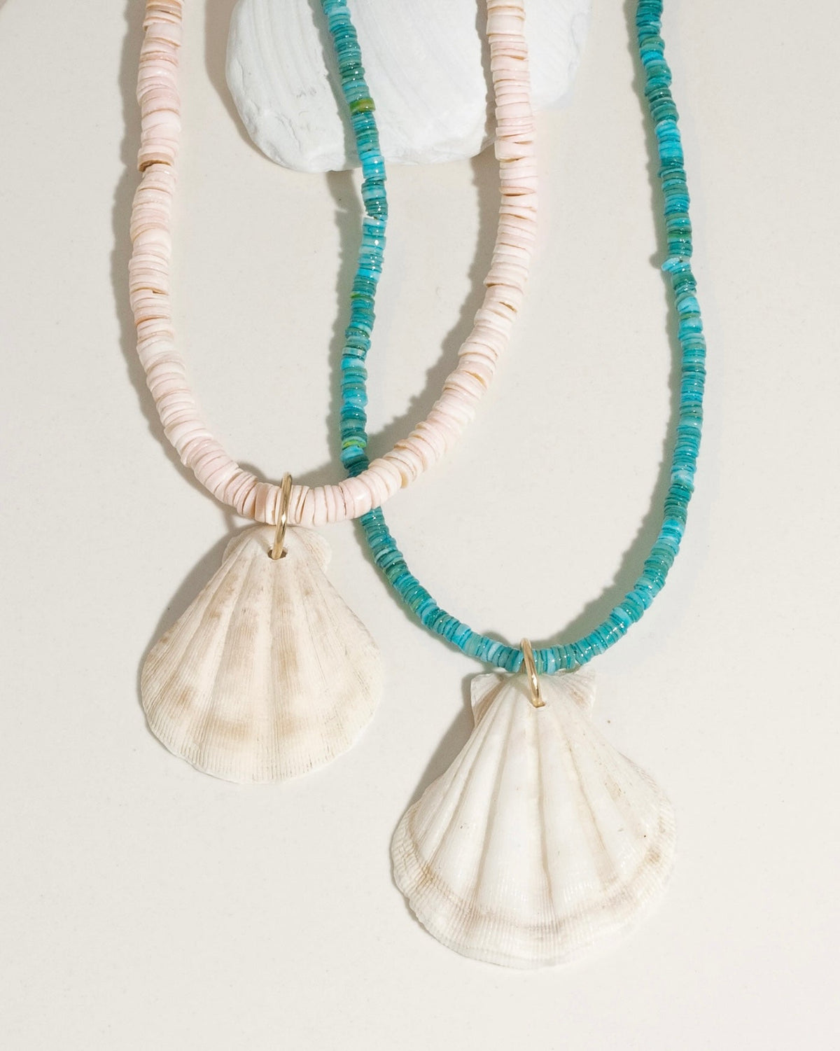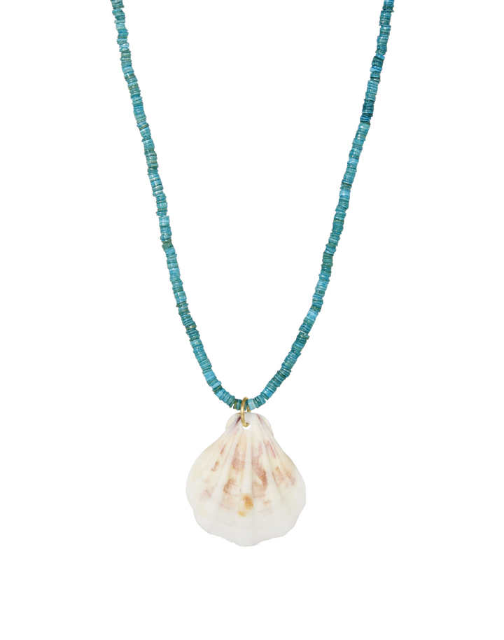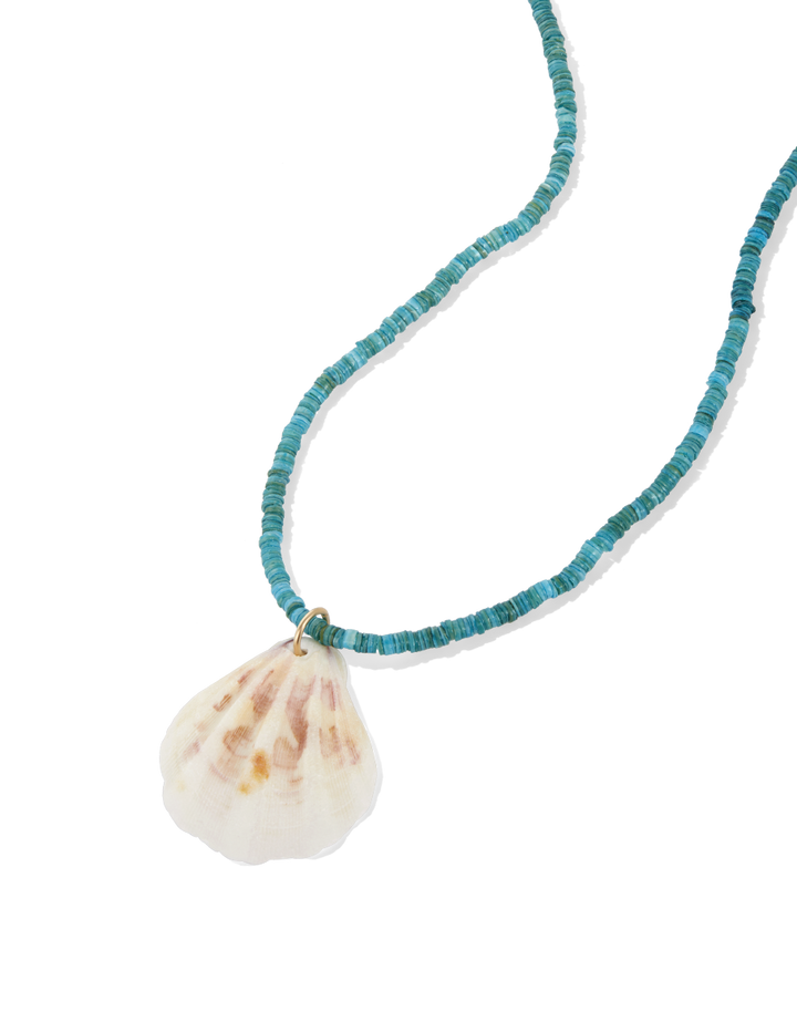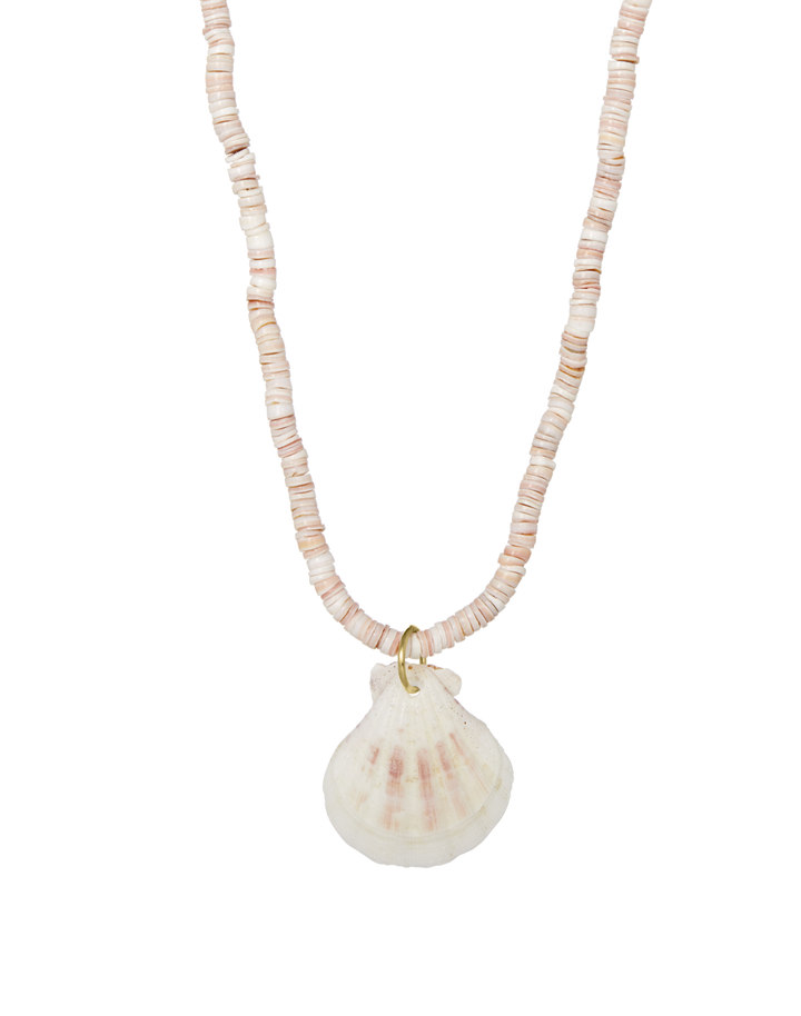 Embrace your inner mermaid with the James Michelle Cora Clamshell Necklace! This beautiful piece features a natural shell pendant approximately 15mm tall, crafted from 14k gold fill and 5mm heshi shell beads, with an adjustable length of 16.5'' - 18.5''.