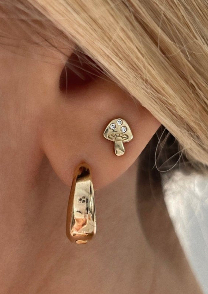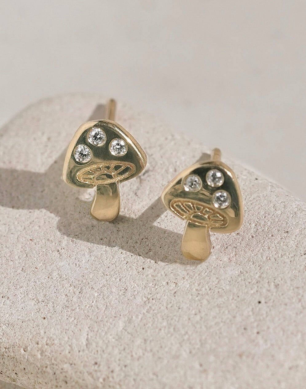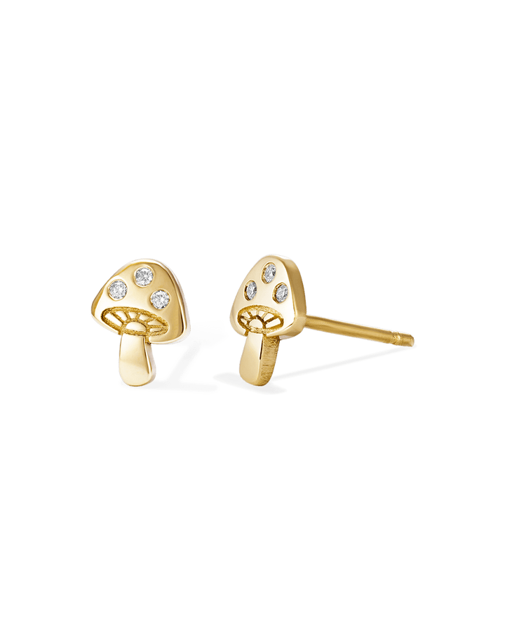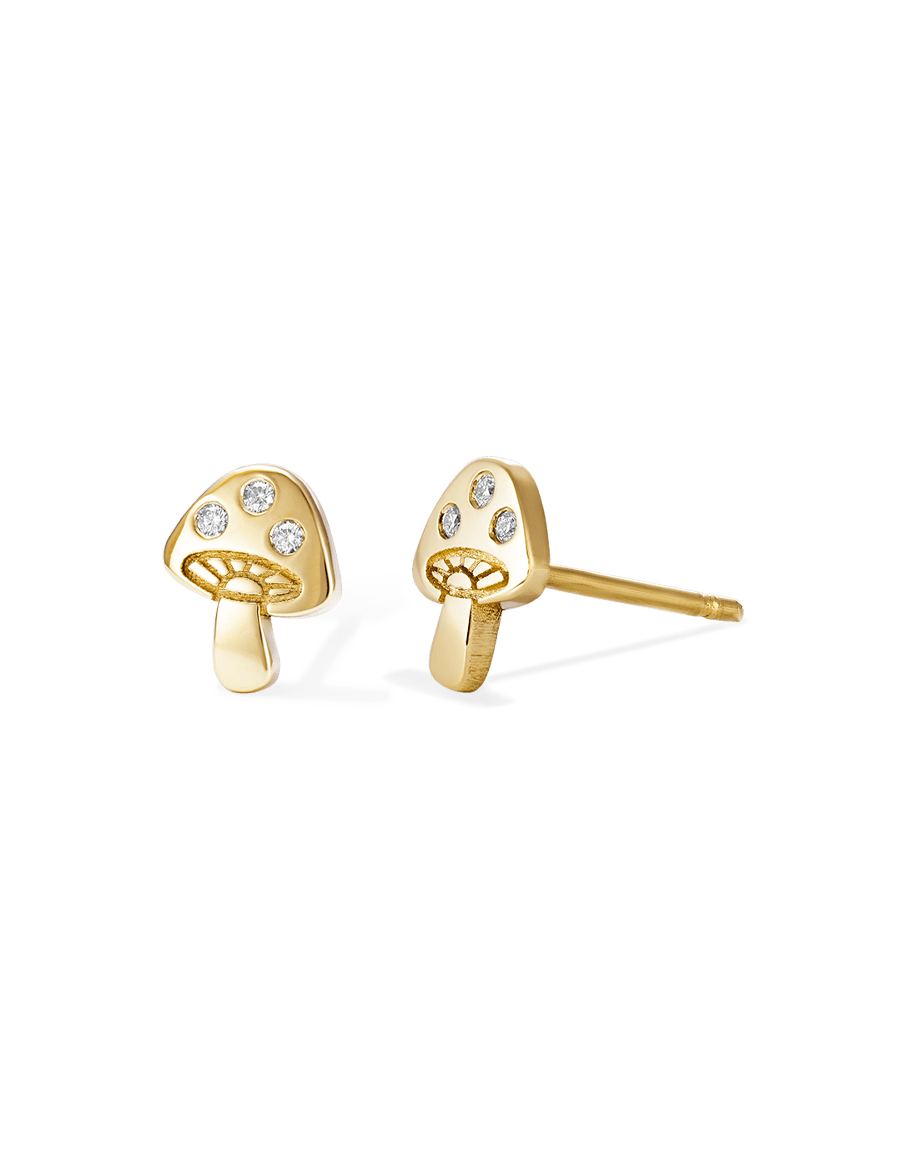 Elevate your style with the James Michelle Mushroom Stud Earrings! Crafted from 14k solid yellow or white gold, these charming earrings feature a diamond totaling .04 carat weight and measure 7mm x 6mm, perfect for adding a playful touch to any outfit.