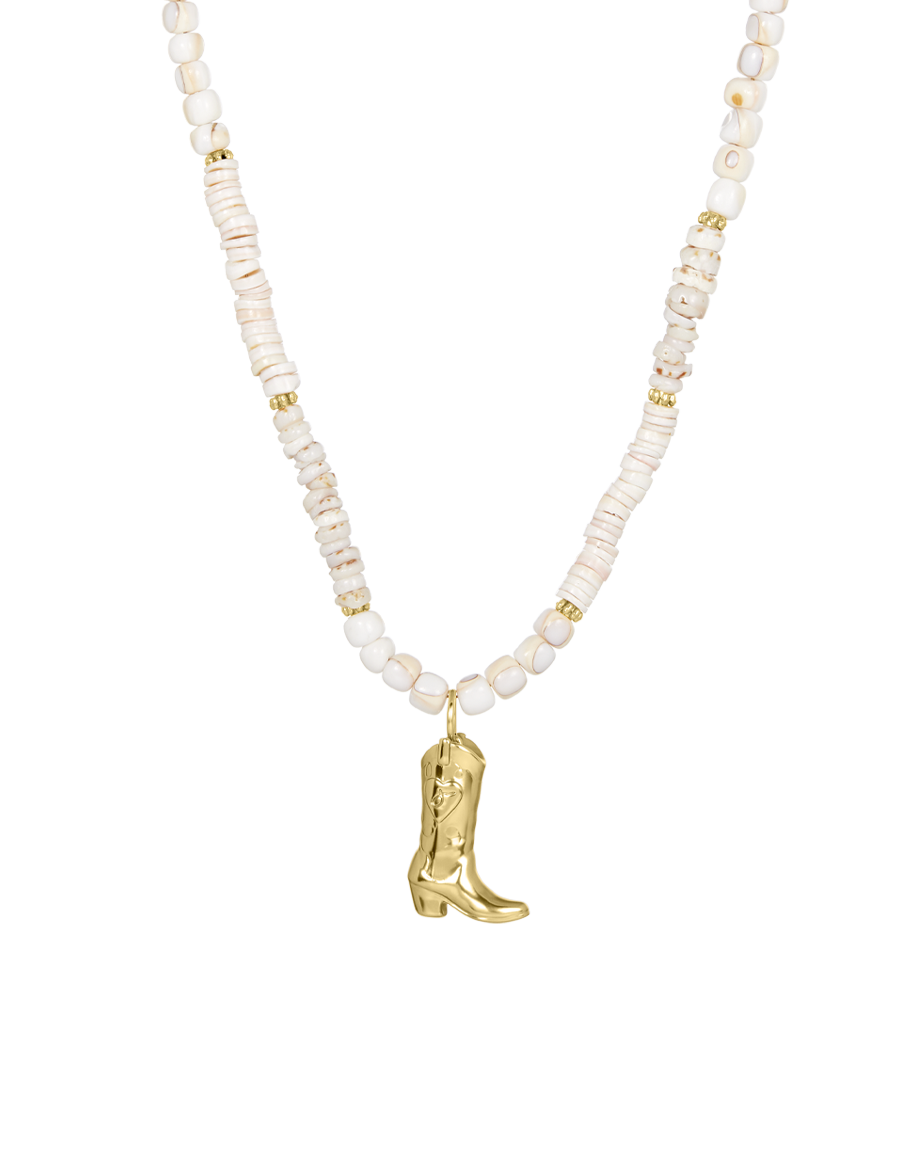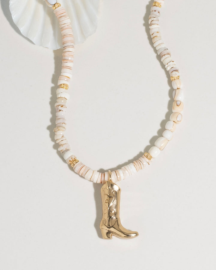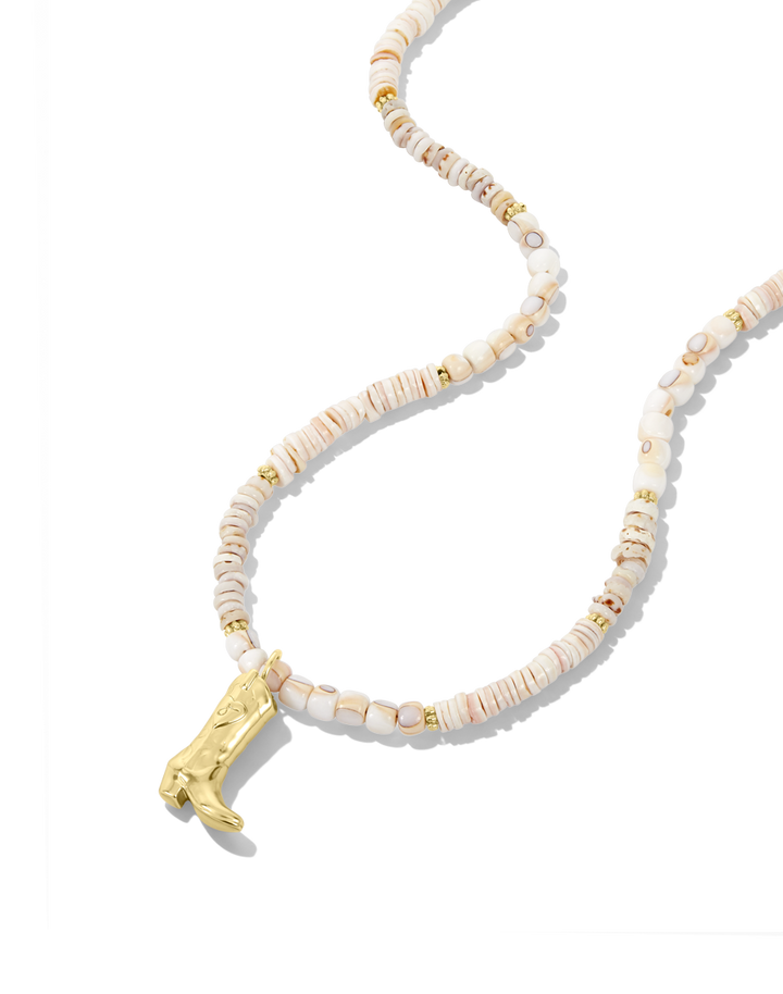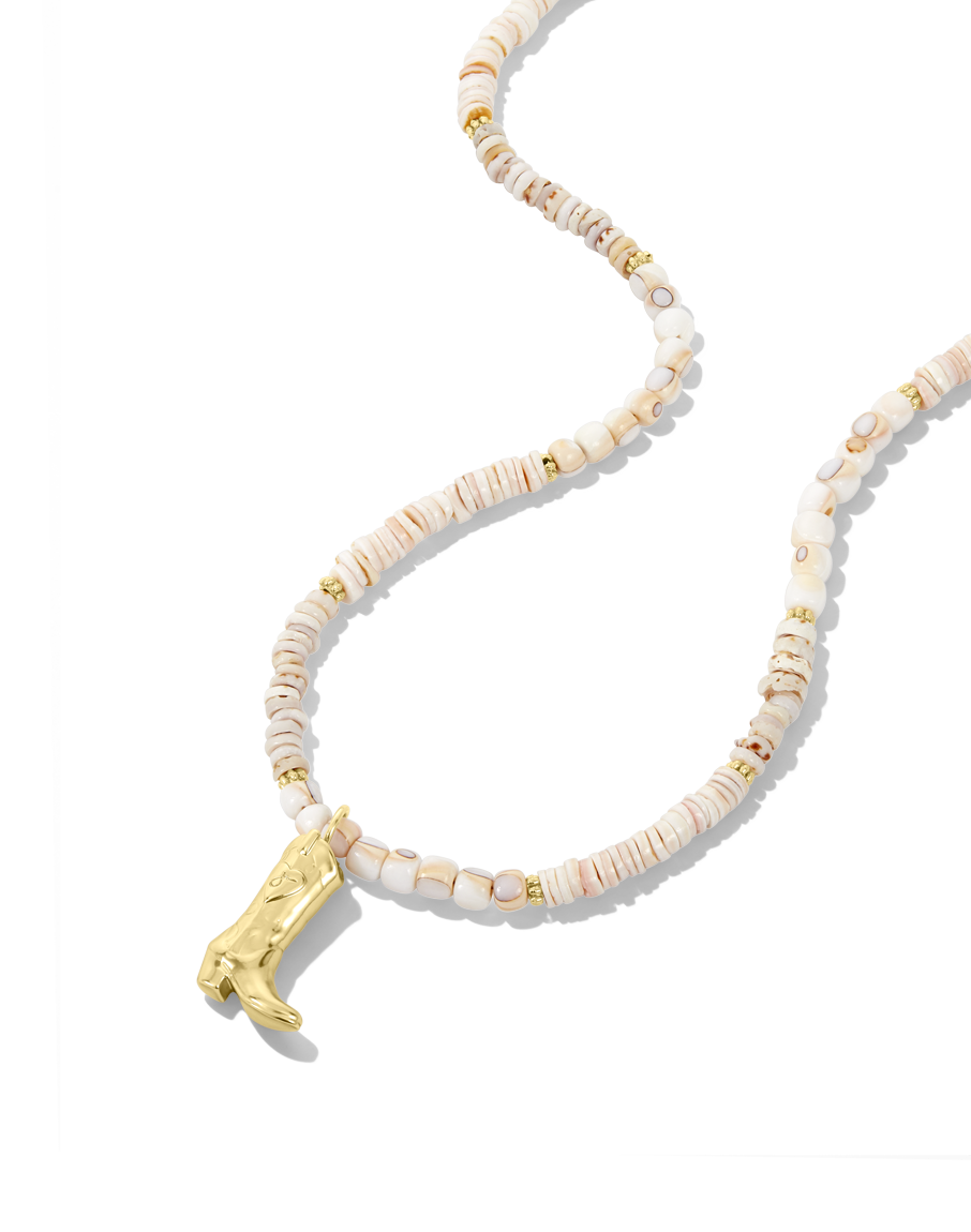 Embrace your adventurous spirit with the James Michelle Coastal Cowgirl Necklace! Made from 12k gold plated and mixed pink and white natural shells, this charming necklace is available with or without a gold boot charm, measuring 1.25' tall, and features an adjustable length of 16.25'' - 18.25''.