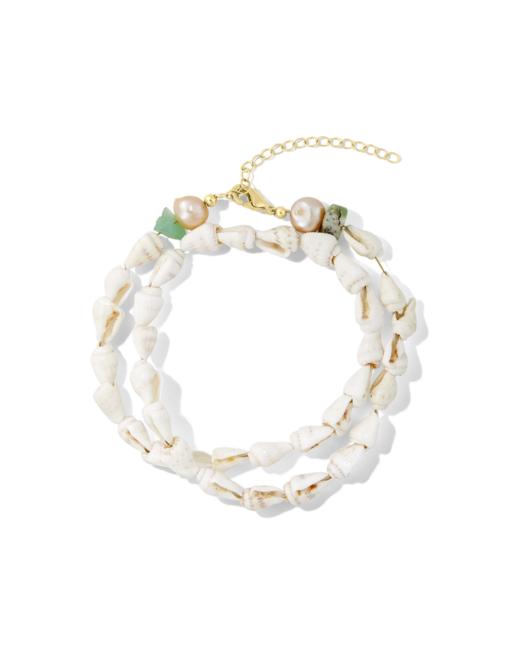 Enjoy versatility with the James Michelle Coco Wrap Necklace! Made from 14k gold fill and adorned with mixed natural shells, stones, and freshwater pearls (8mm - 9mm), this adjustable necklace can also be worn as a wrap bracelet, measuring 15.25'' - 17.25''.
