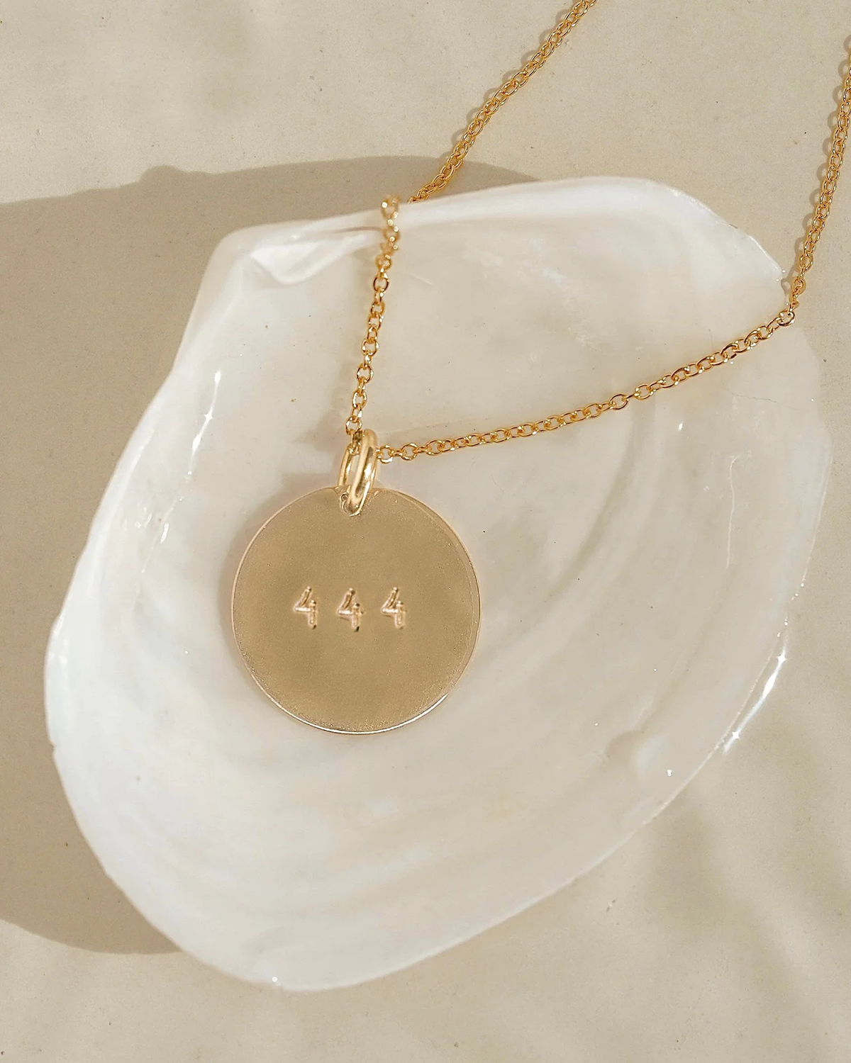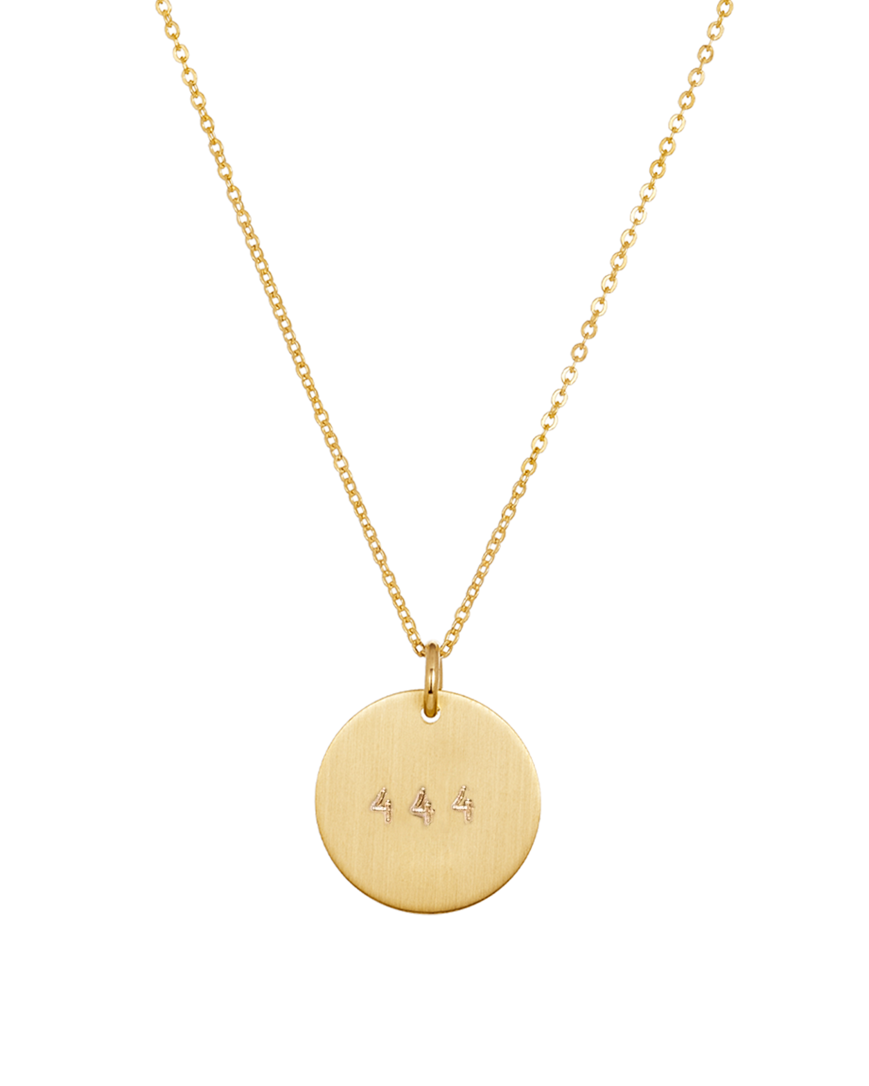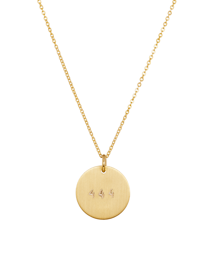 Celebrate your journey with the James Michelle Angel Number Disc Necklace! Crafted from 14k gold fill, this pendant measures 5/8'' and hangs from a 1mm cable chain. Personalize it with your favorite angel number, embodying intentions and meanings that resonate with you.